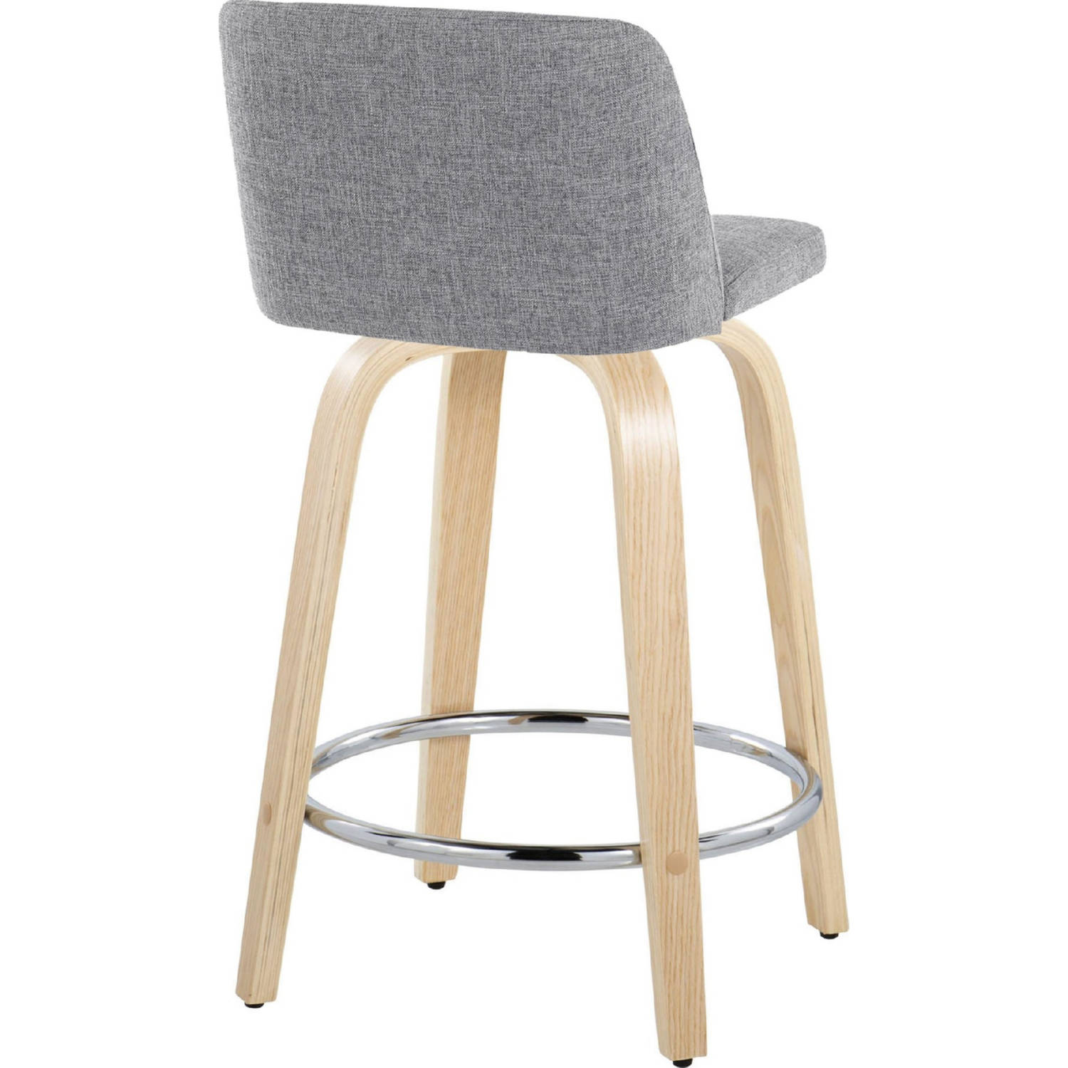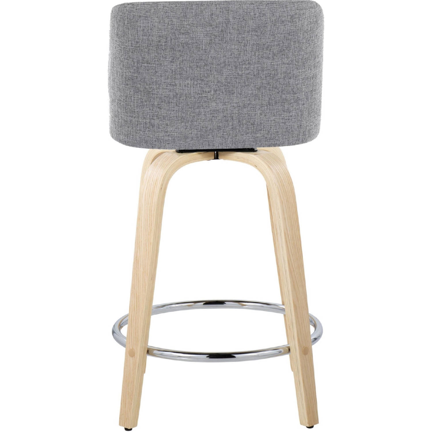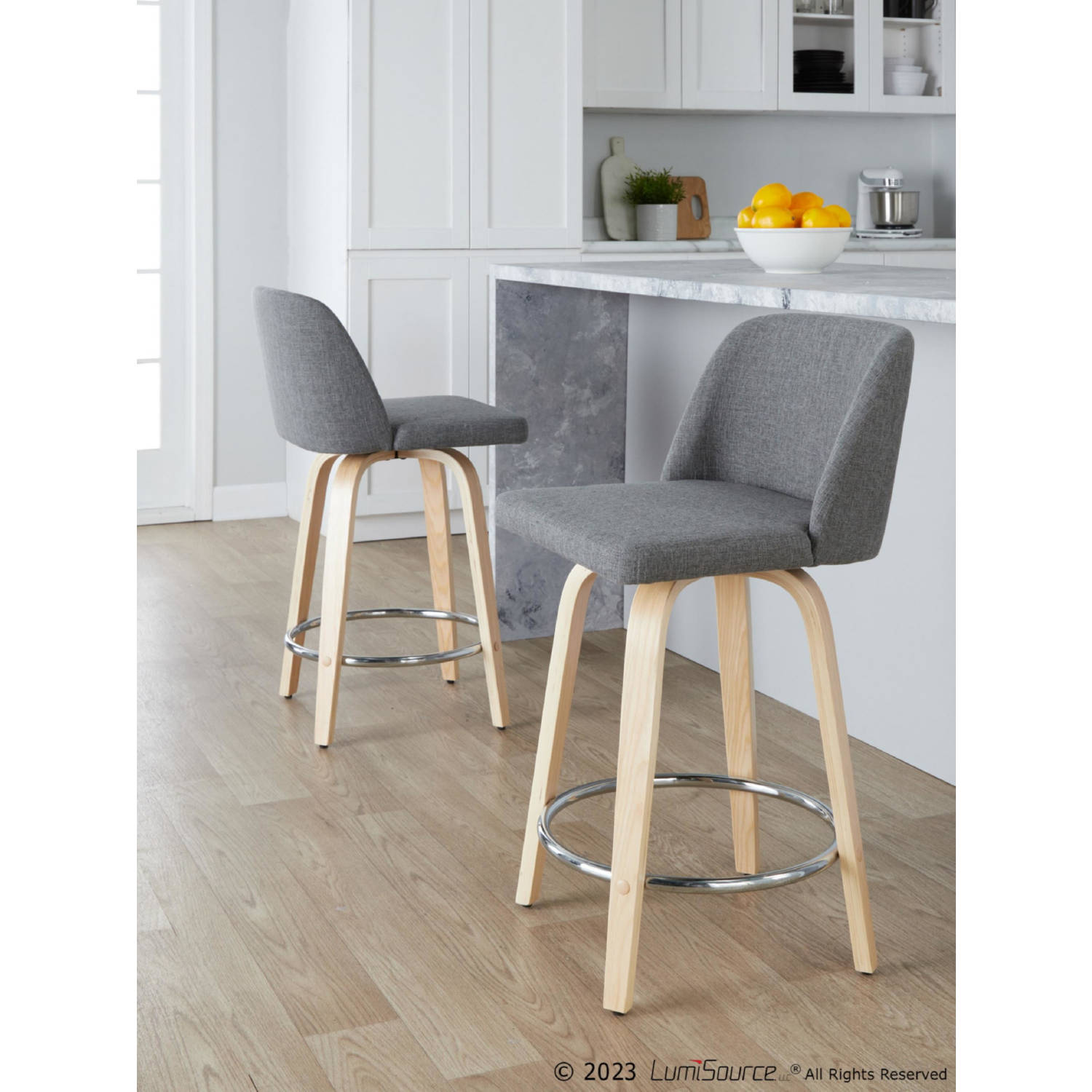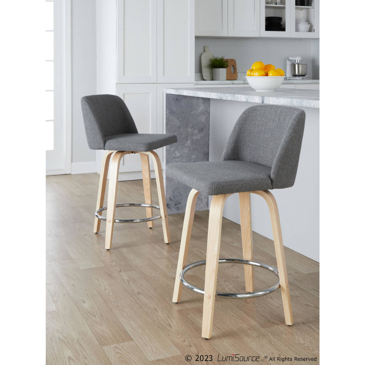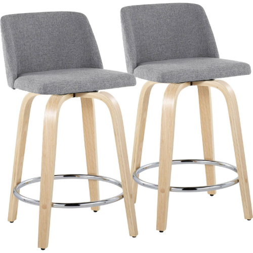 Lumisource B24-TRNOFB-GRTZR2 NAGY2 Toriano 24" Swivel Counter Stool Natural Wood Grey Fabric Chrome Footrest (Set of 2)