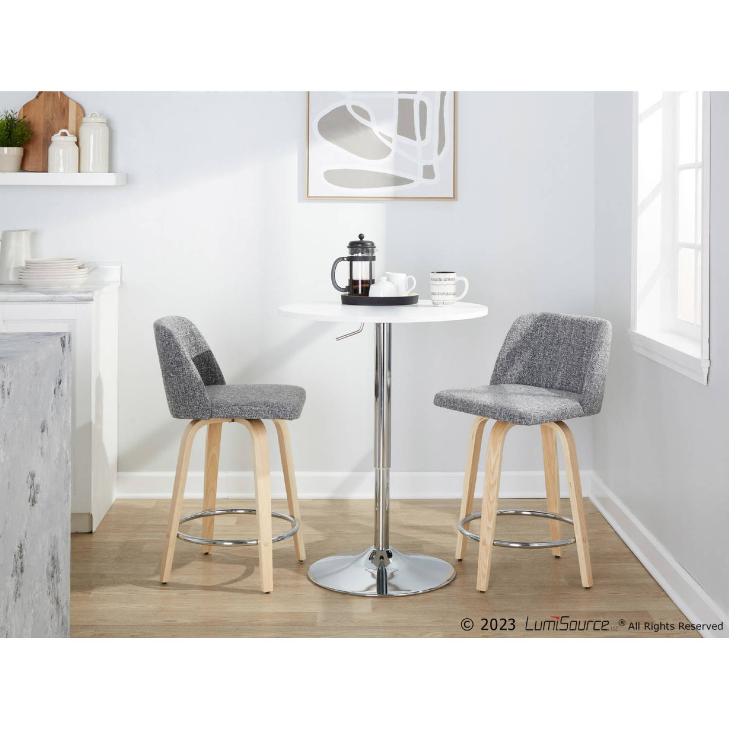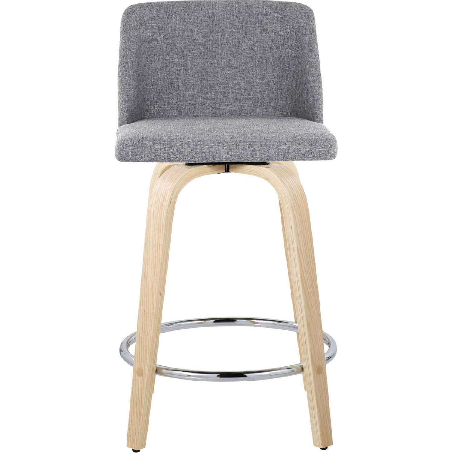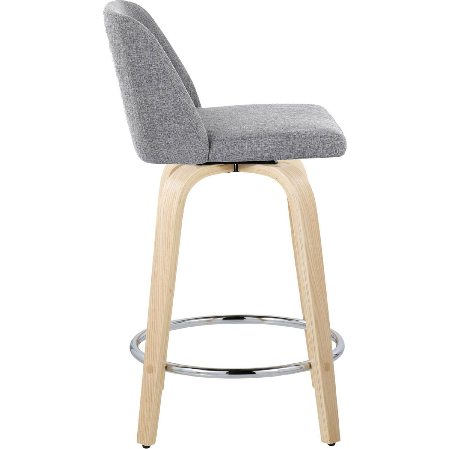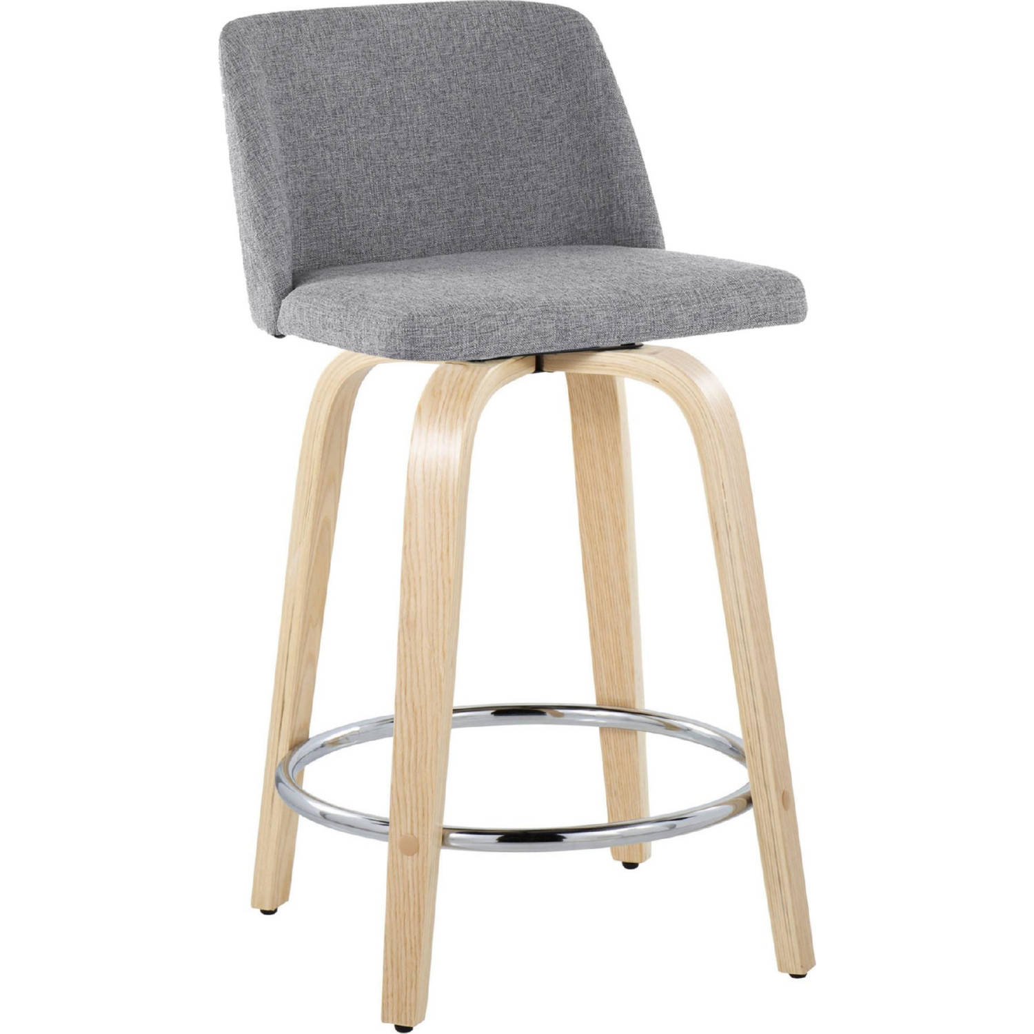 Lumisource B24-TRNOFB-GRTZR2 NAGY2 Toriano 24" Swivel Counter Stool Natural Wood Grey Fabric Chrome Footrest (Set of 2)