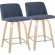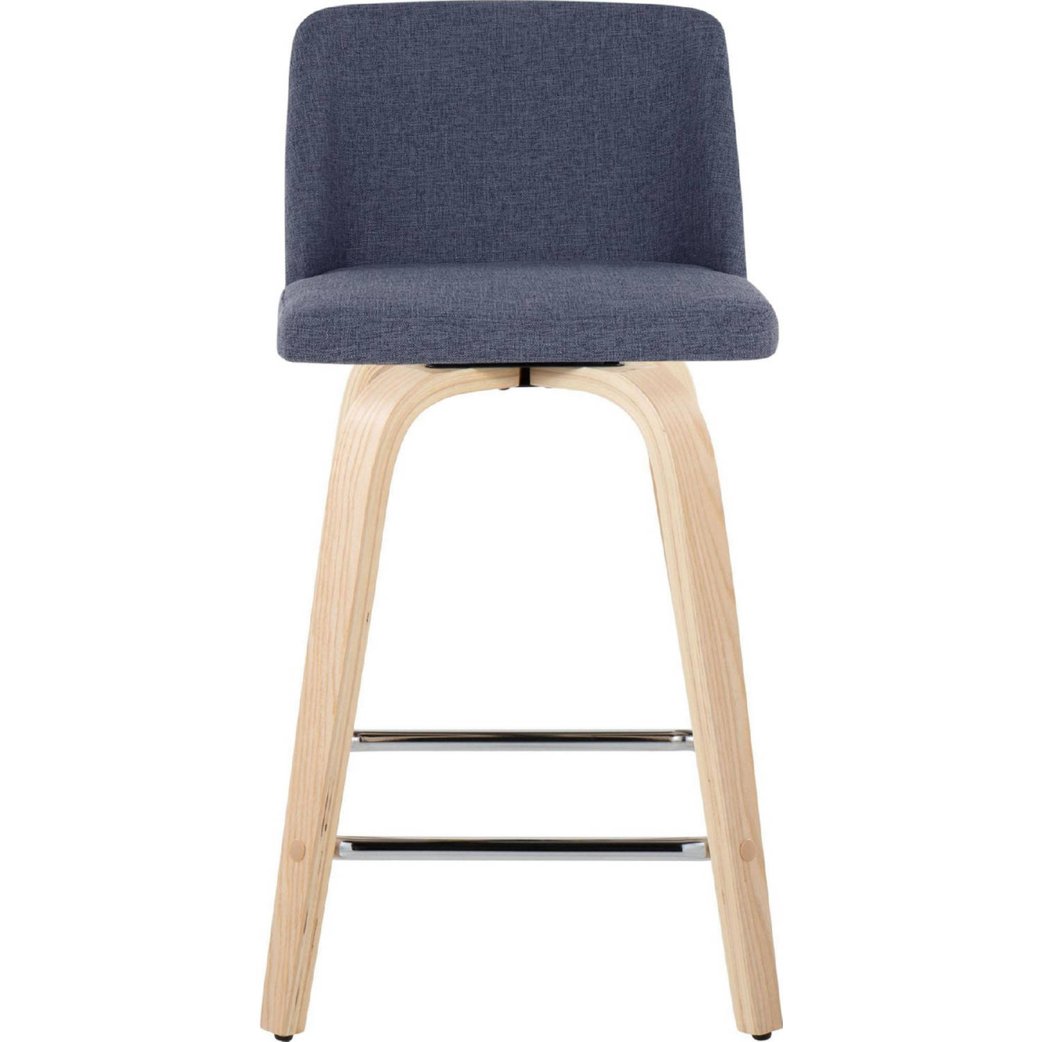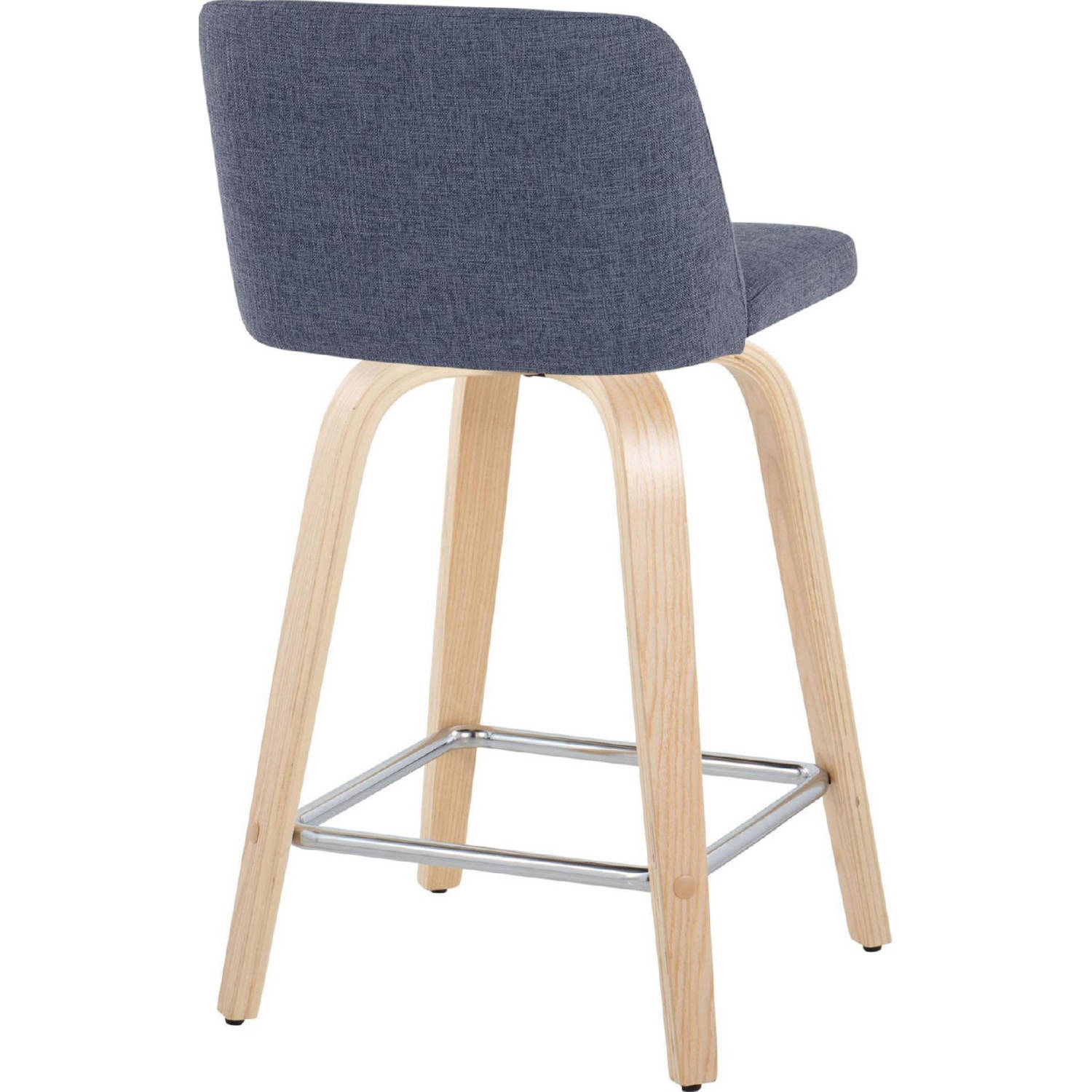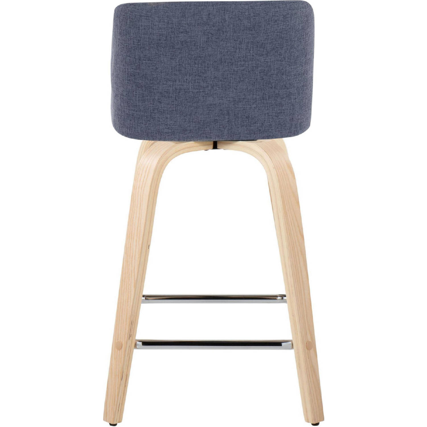 Lumisource B24-TRNOFB-GRTZS2 NABU2 Toriano 24" Swivel Counter Stool Natural Wood Blue Fabric Chrome Footrest (Set of 2)