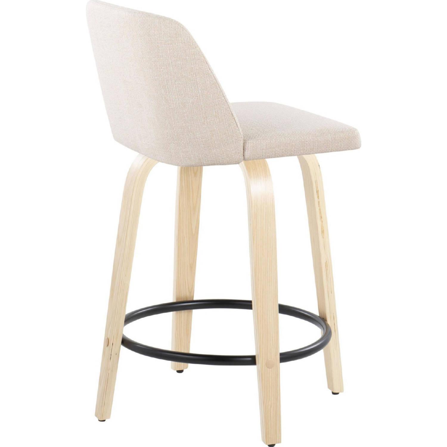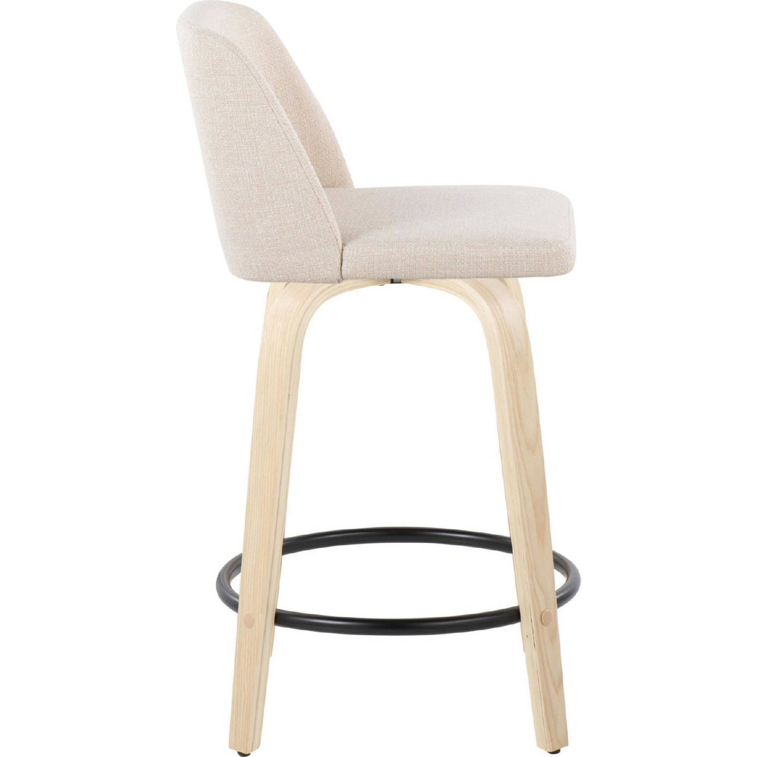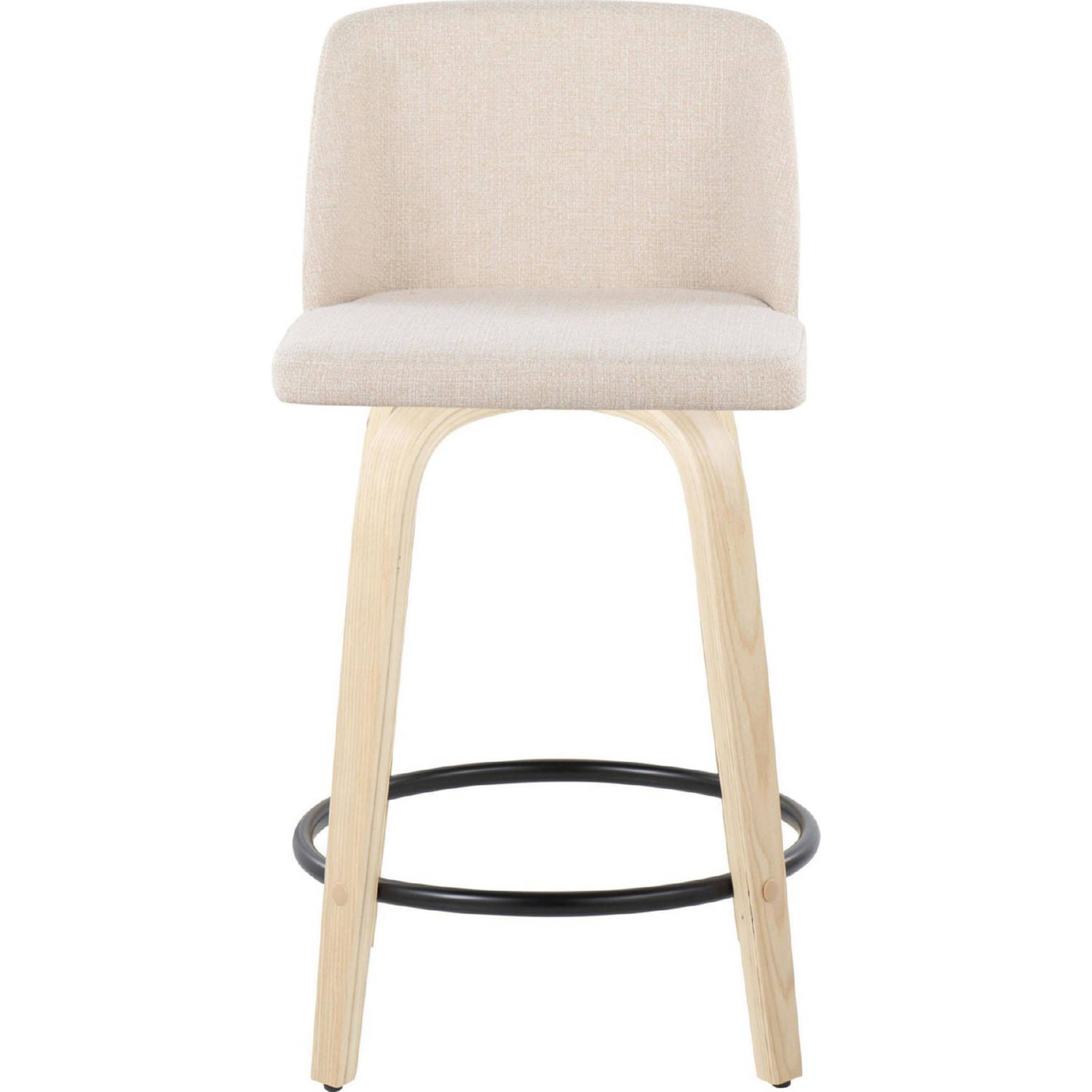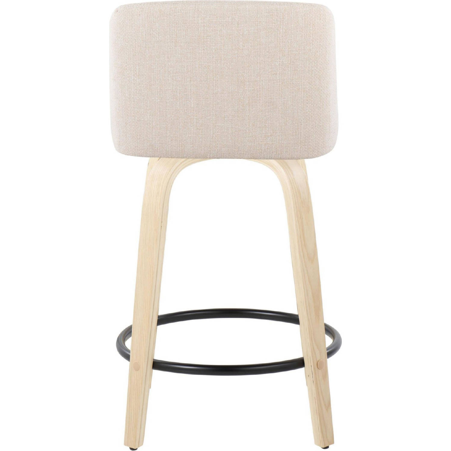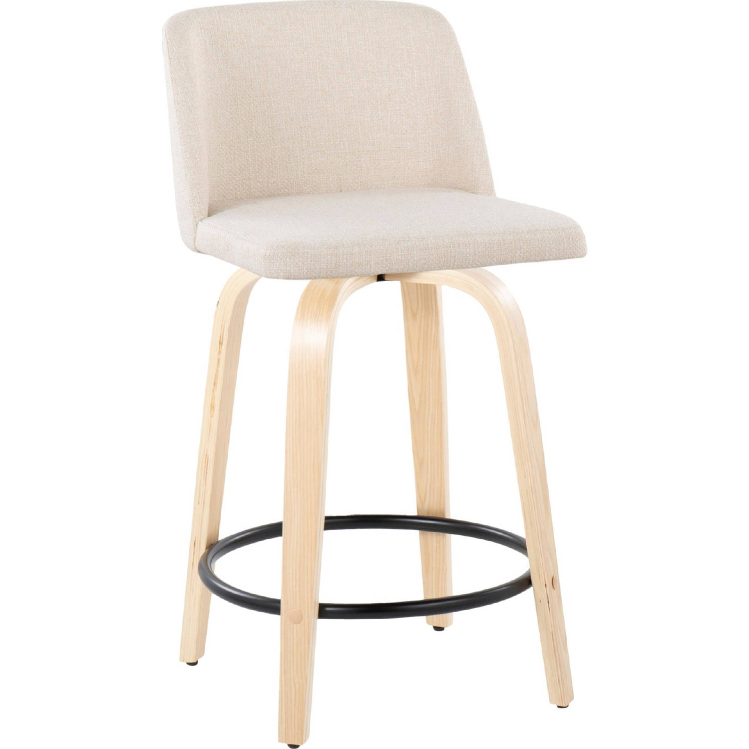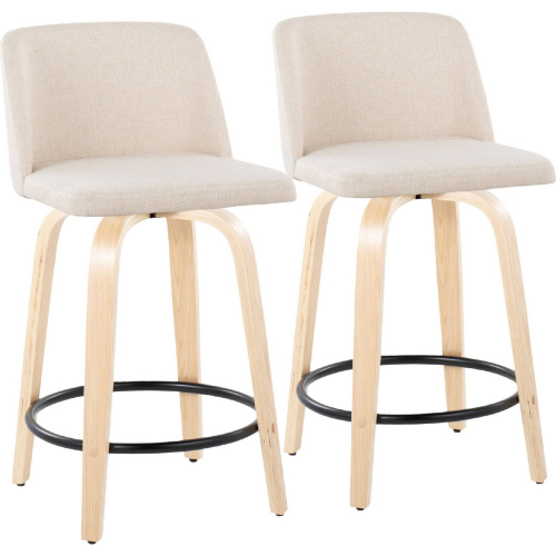 Lumisource Toriano 24" Swivel Counter Stool in Natural Wood & Cream Noise Fabric with Black Footrest (Set of 2)