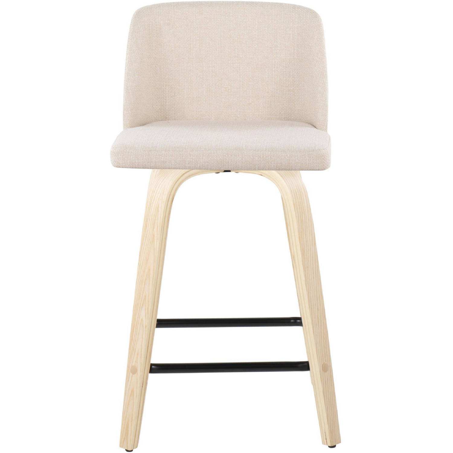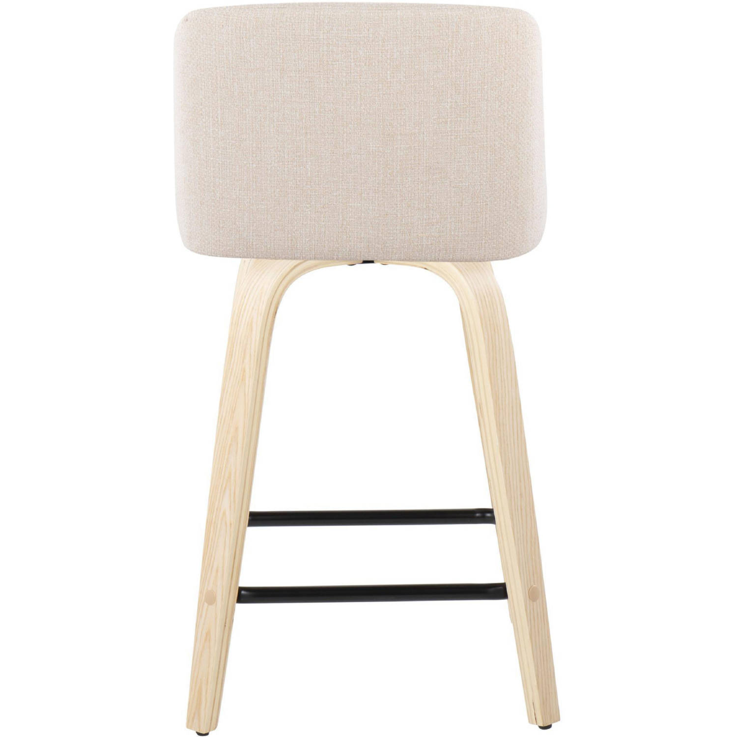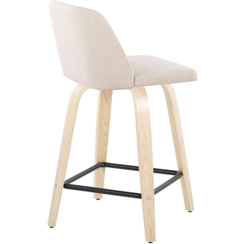 Lumisource Toriano 24" Swivel Counter Stool in Natural Wood & Cream Noise Fabric with Black Footrest (Set of 2)