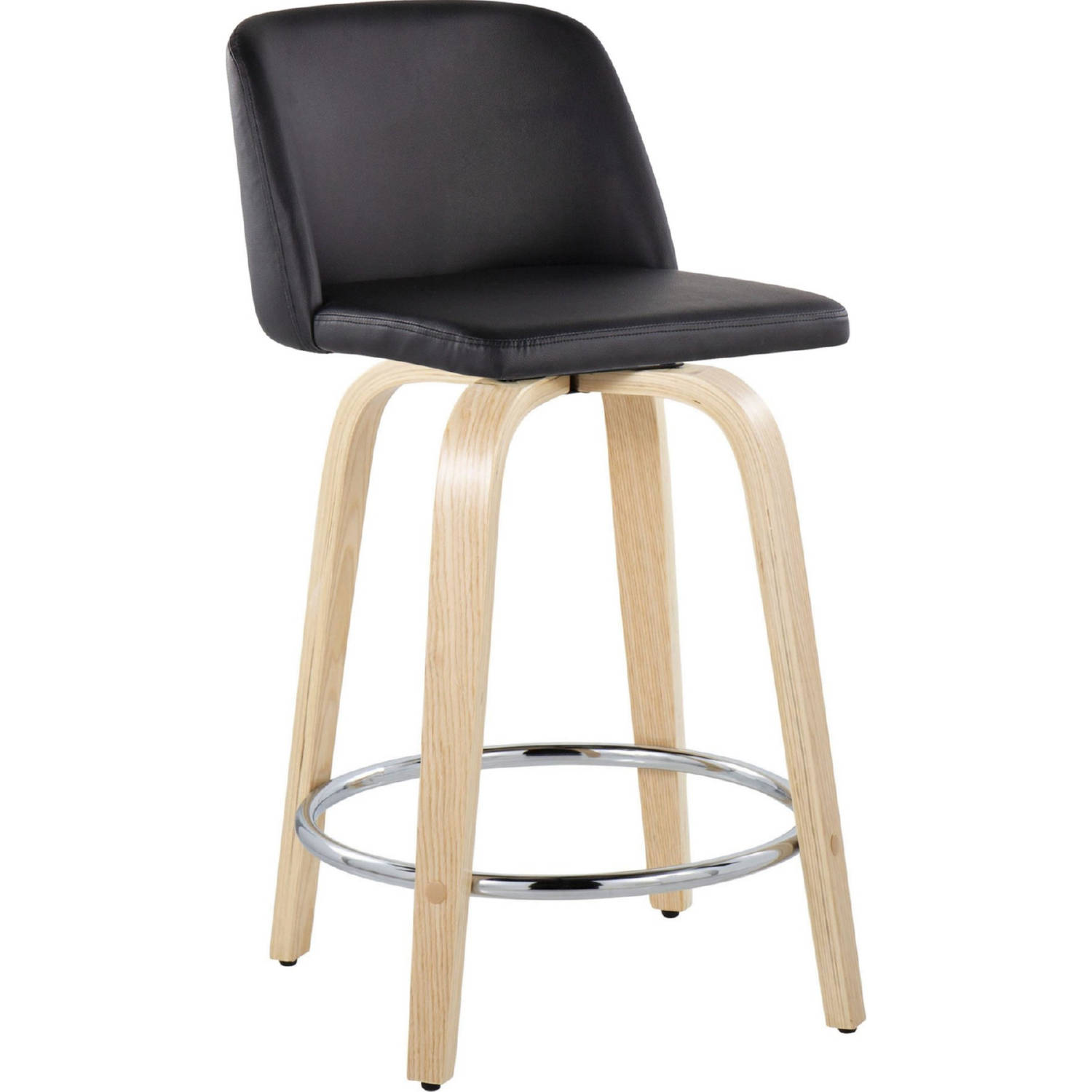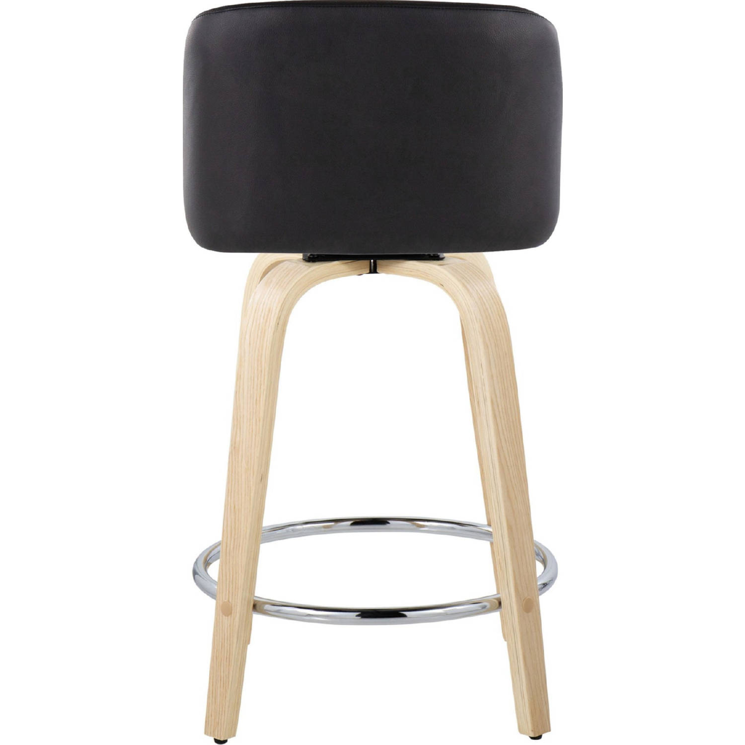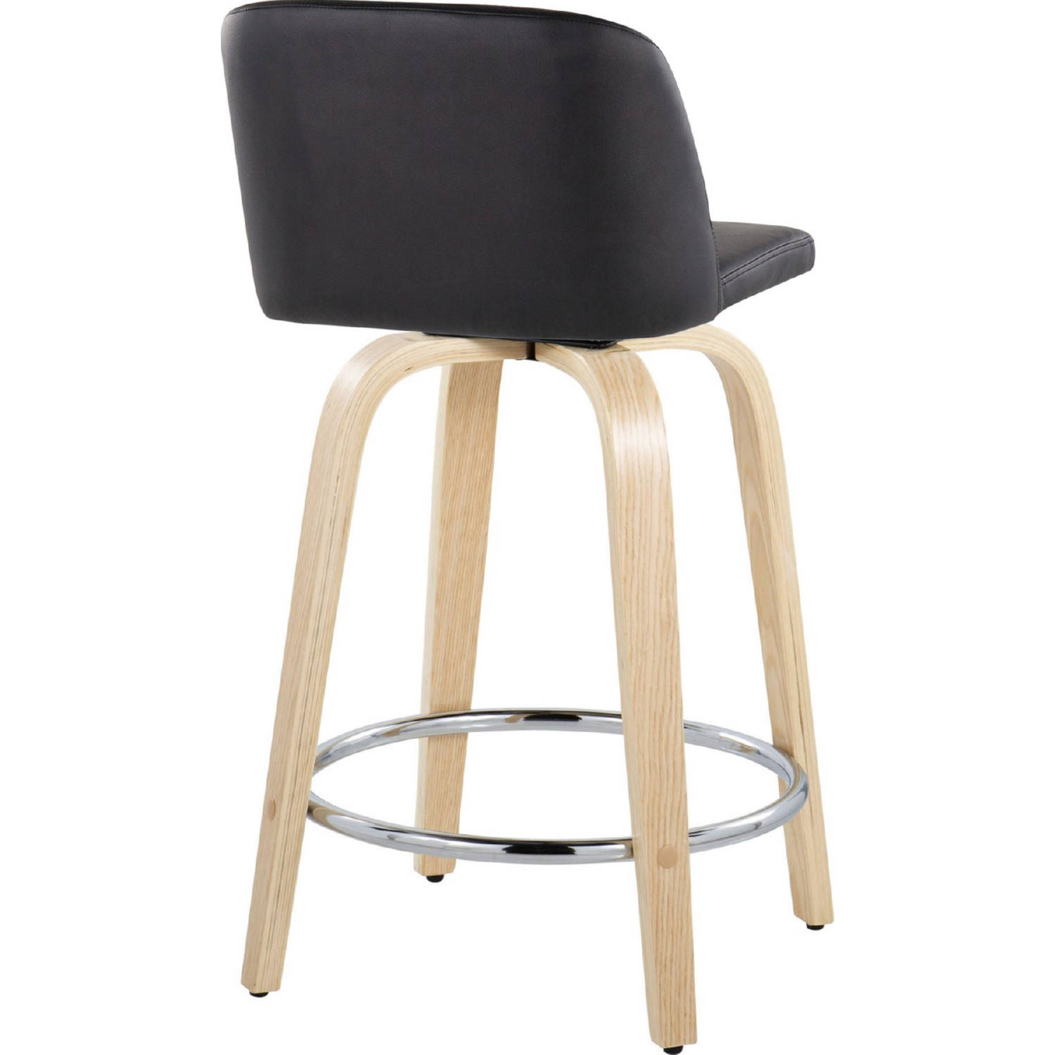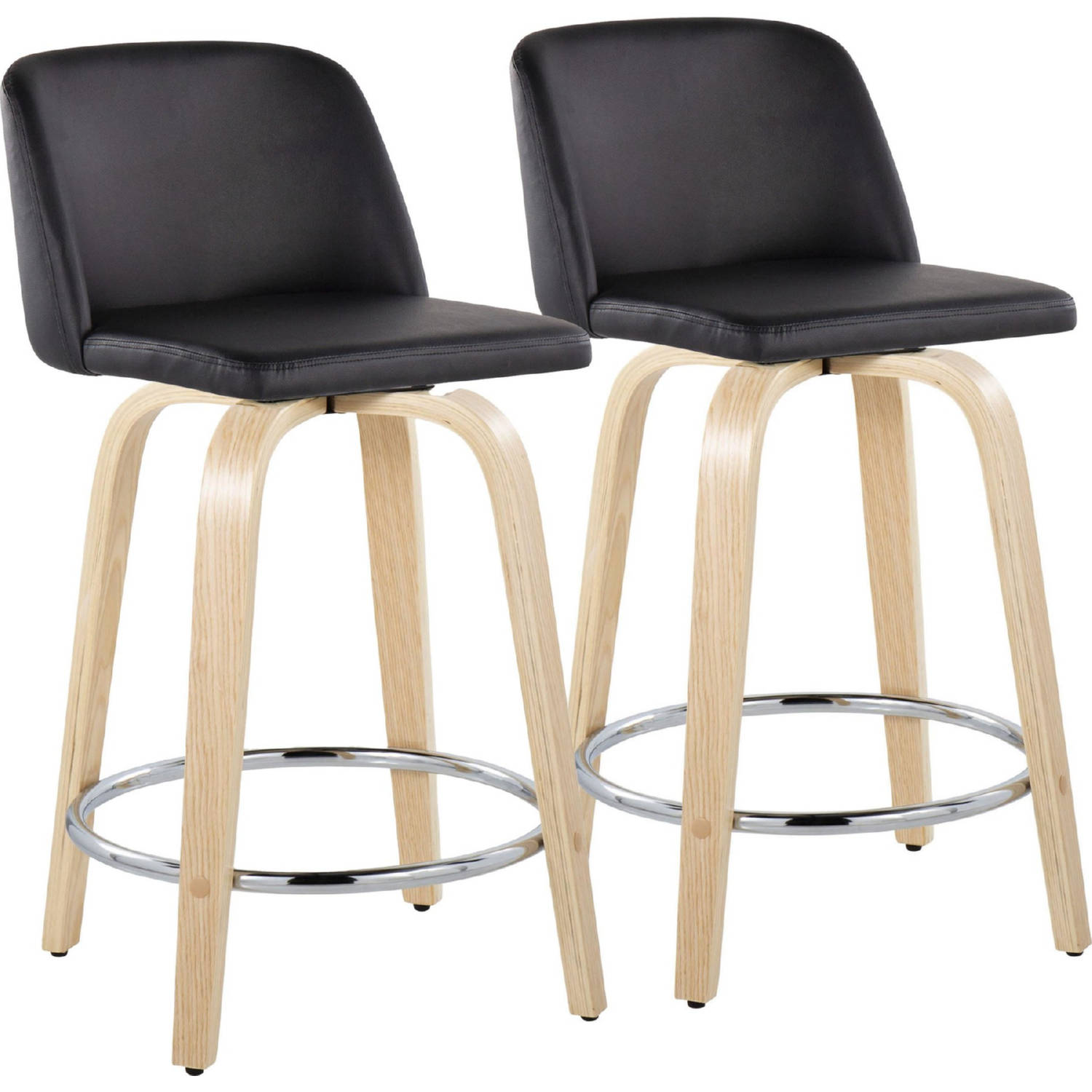 Lumisource B24-TRNOPU-GRTZR2 NABK2 Toriano 24" Swivel Counter Stool Natural Wood Black Leatherette Chrome Footrest (Set of 2)