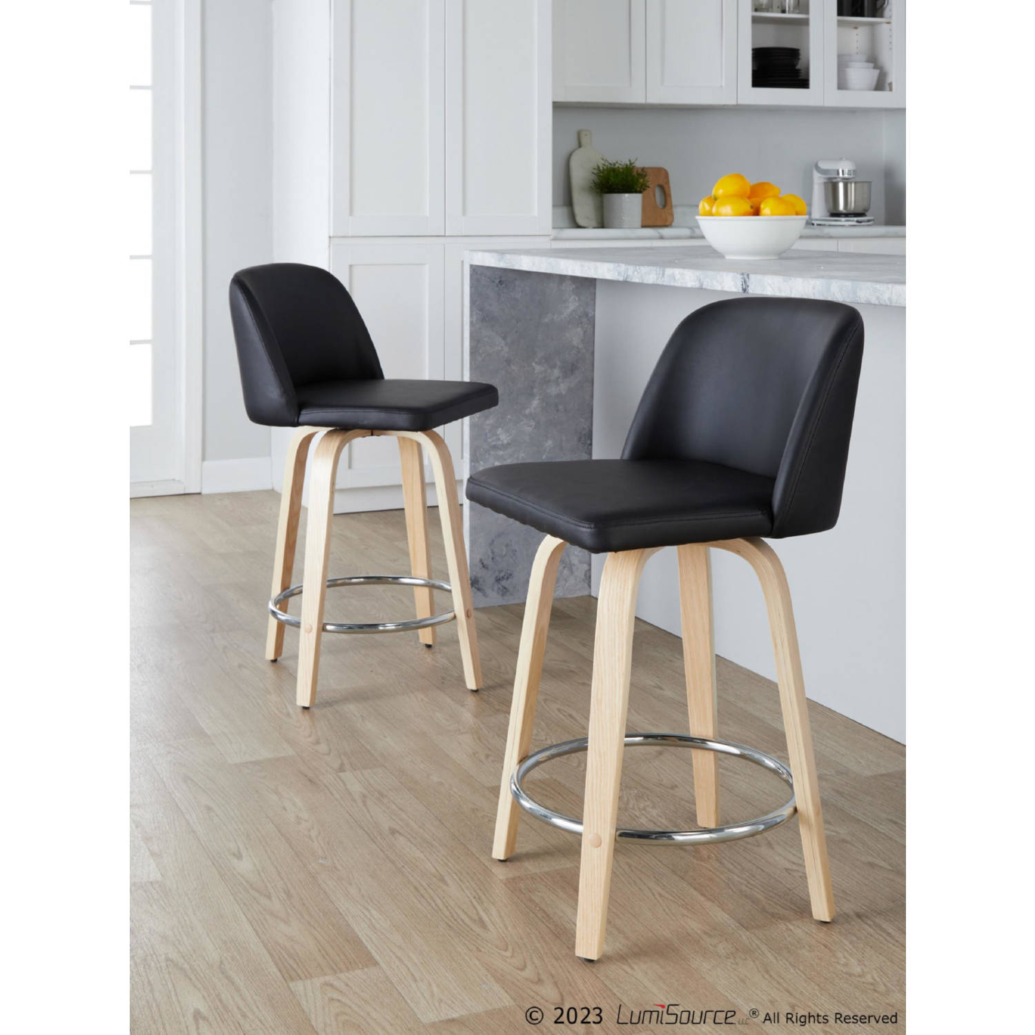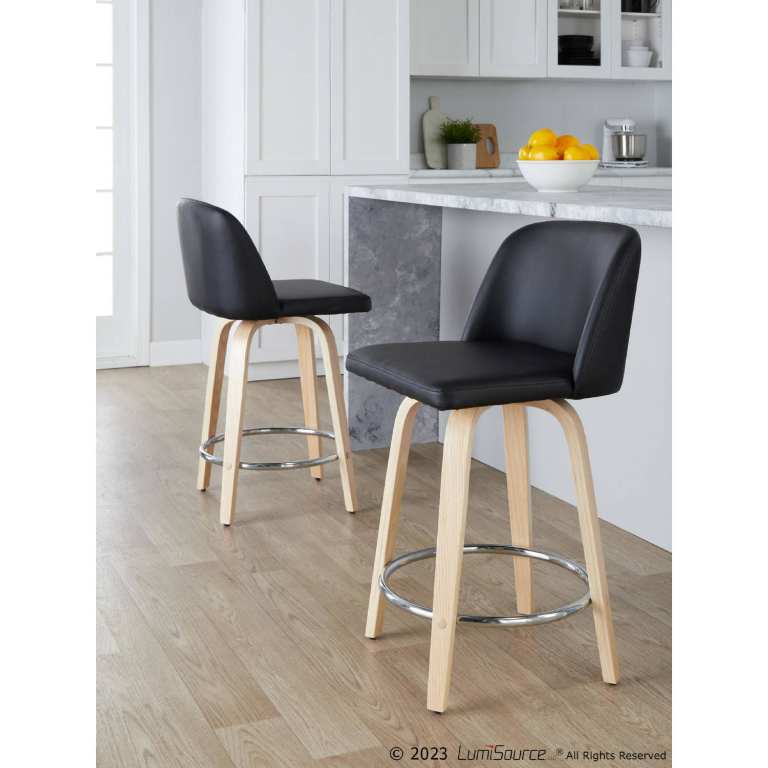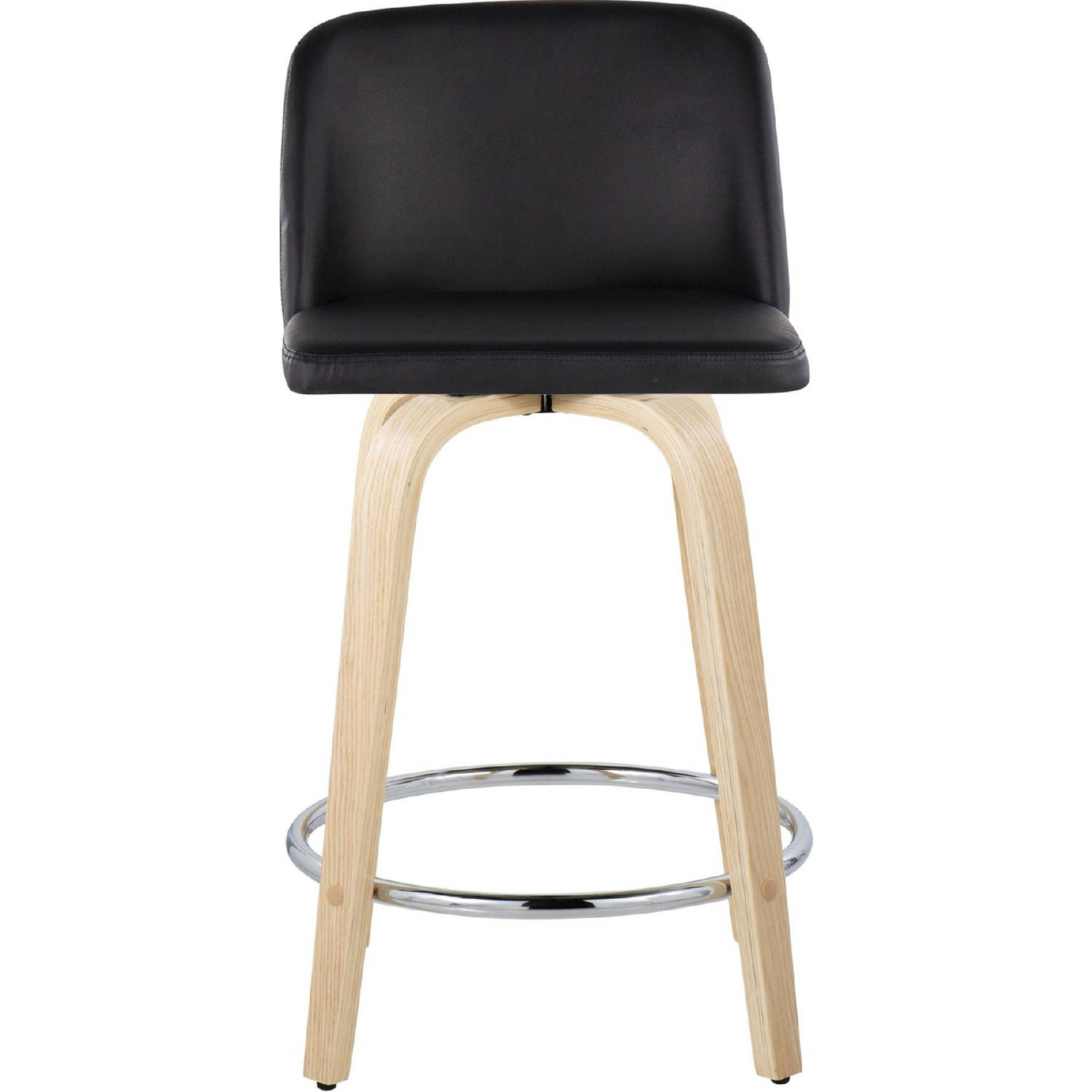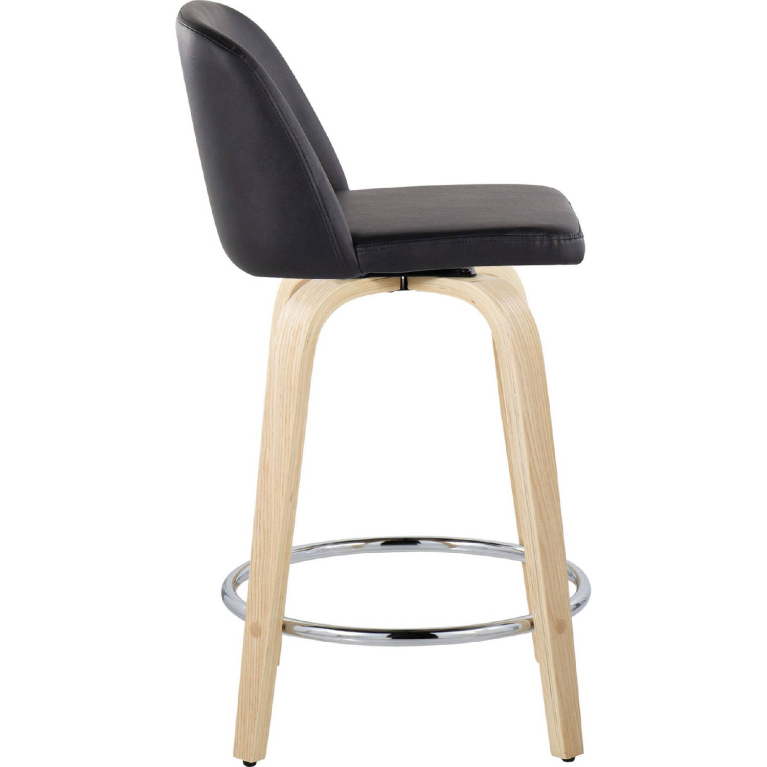 Lumisource B24-TRNOPU-GRTZR2 NABK2 Toriano 24" Swivel Counter Stool Natural Wood Black Leatherette Chrome Footrest (Set of 2)