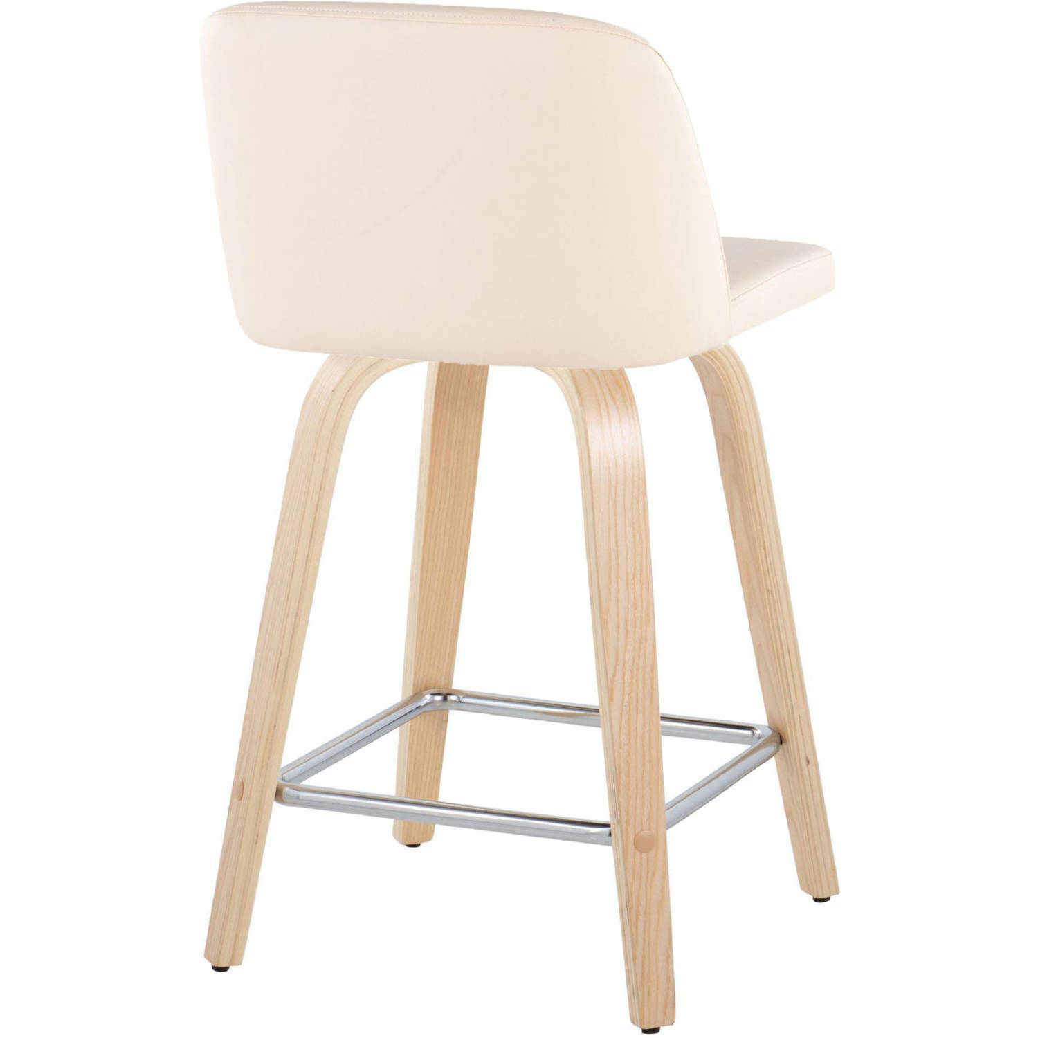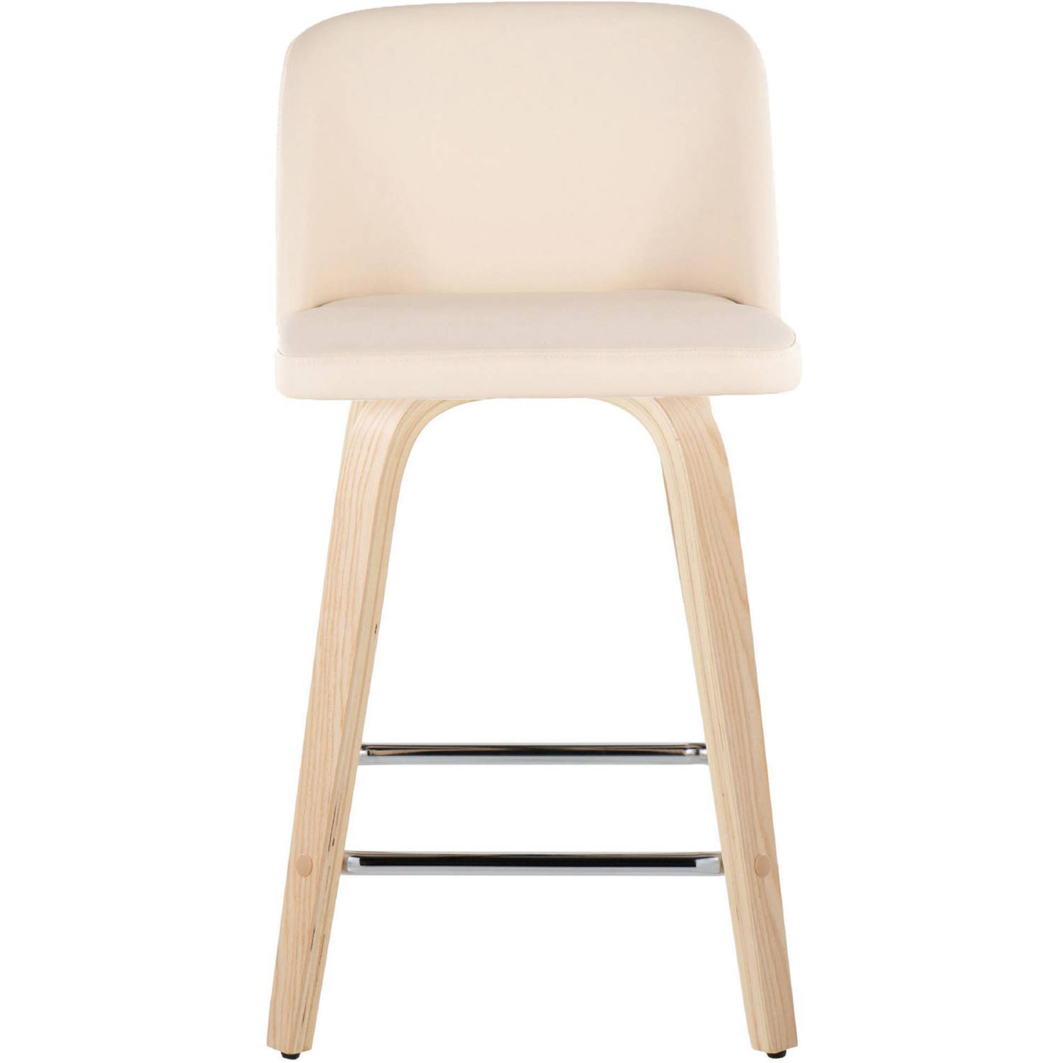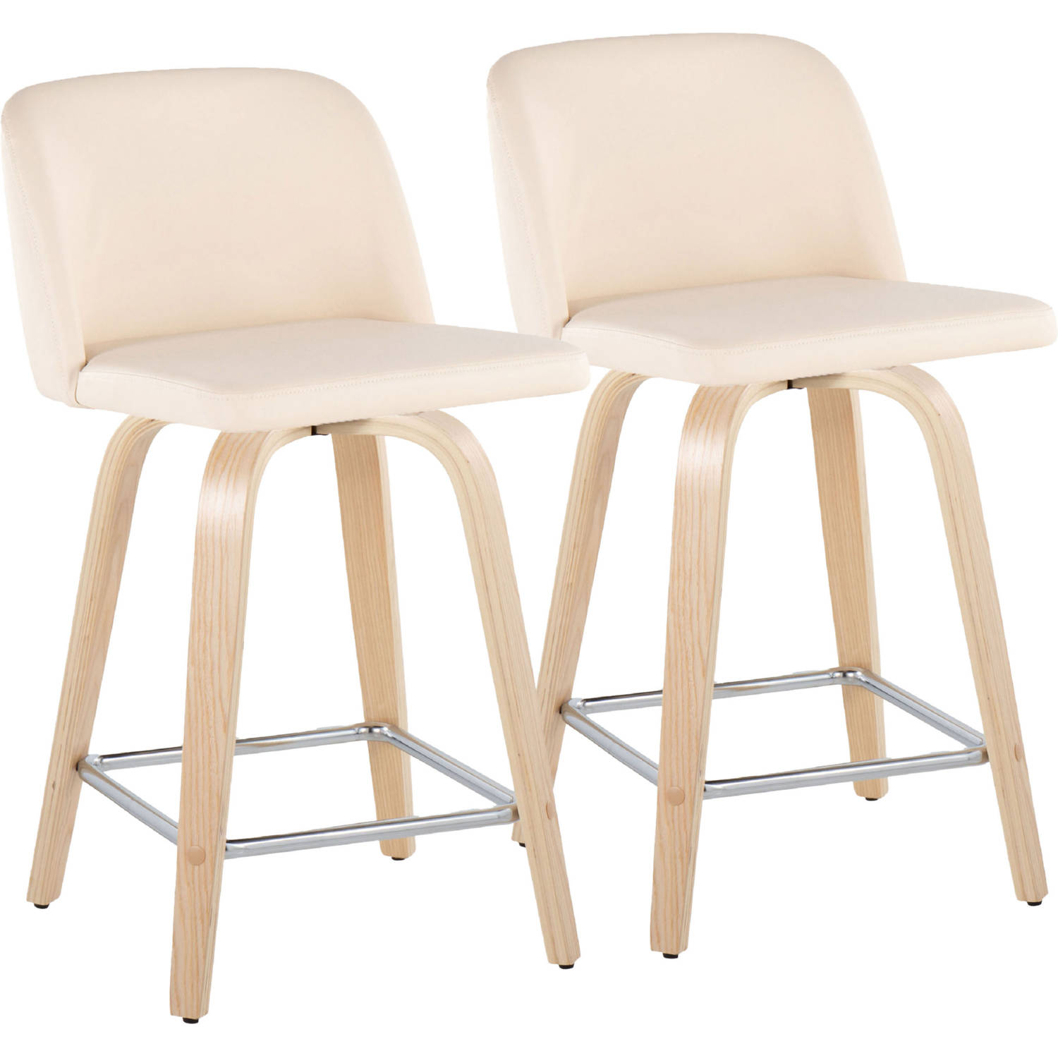 Lumisource B24-TRNOPU-GRTZS2 NACR2 Toriano 24" Swivel Counter Stool Natural Wood Cream Leatherette Chrome Footrest (Set of 2)