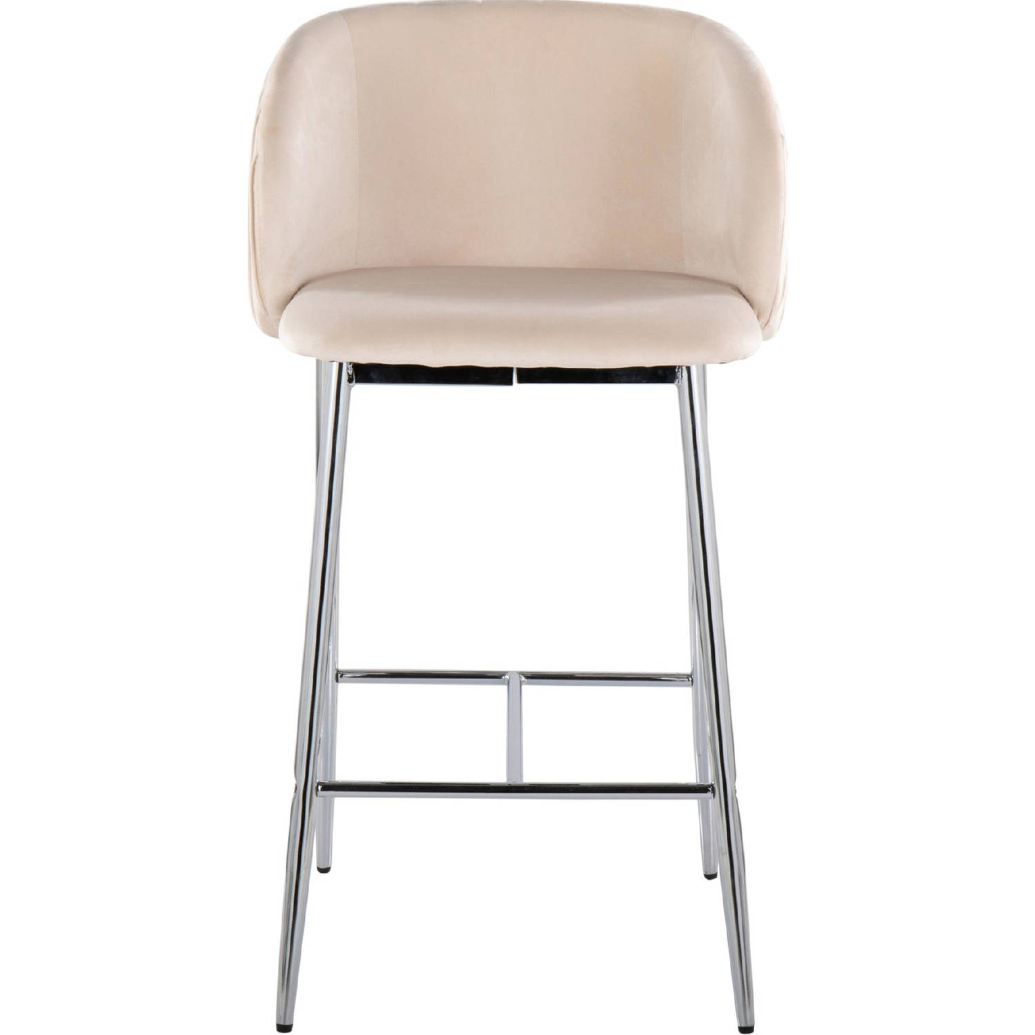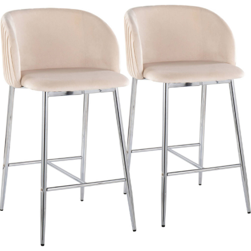 Lumisource B26-FRANPLTV CHRW2 Fran Pleated Counter Stool Chrome White Velvet (Set of 2)