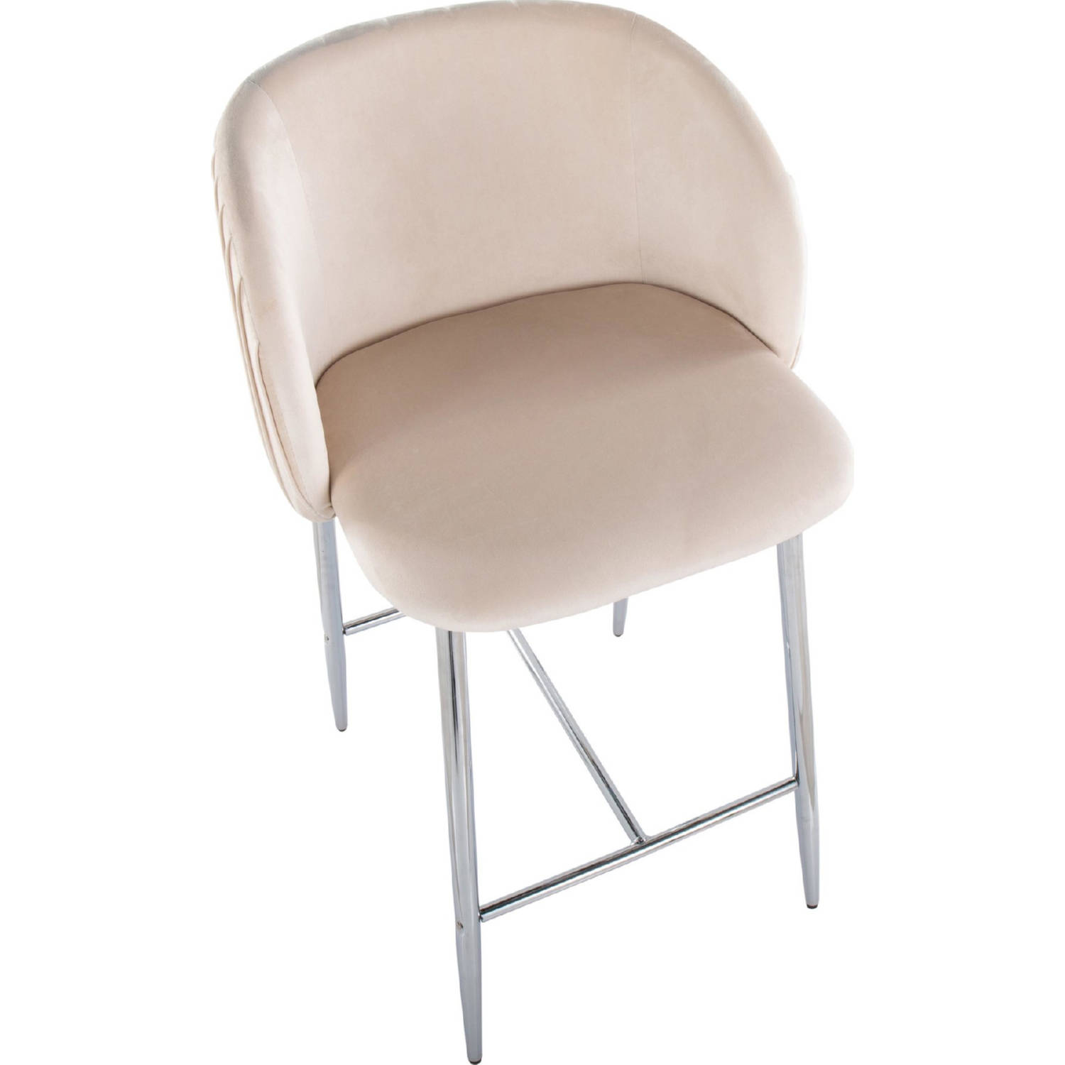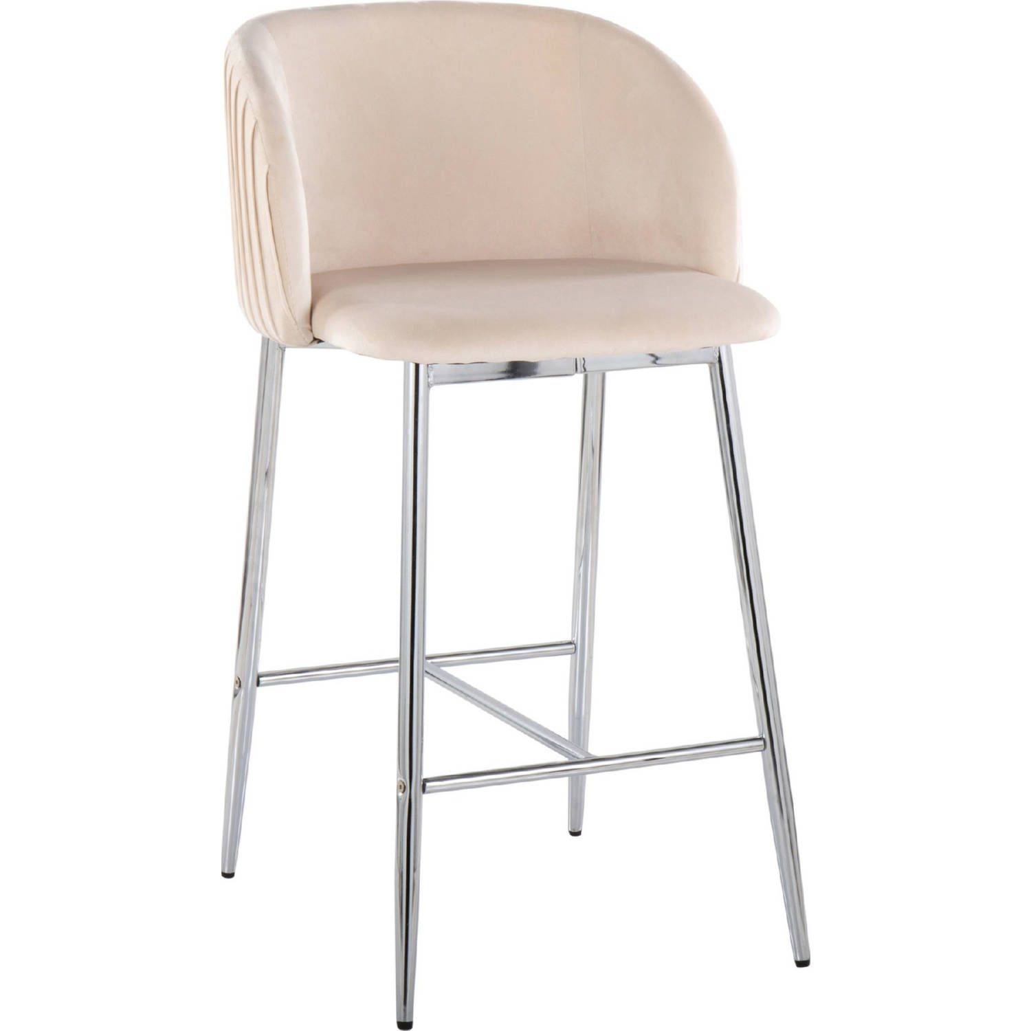 Lumisource Fran Pleated Counter Stool in Chrome & White Velvet (Set of 2)