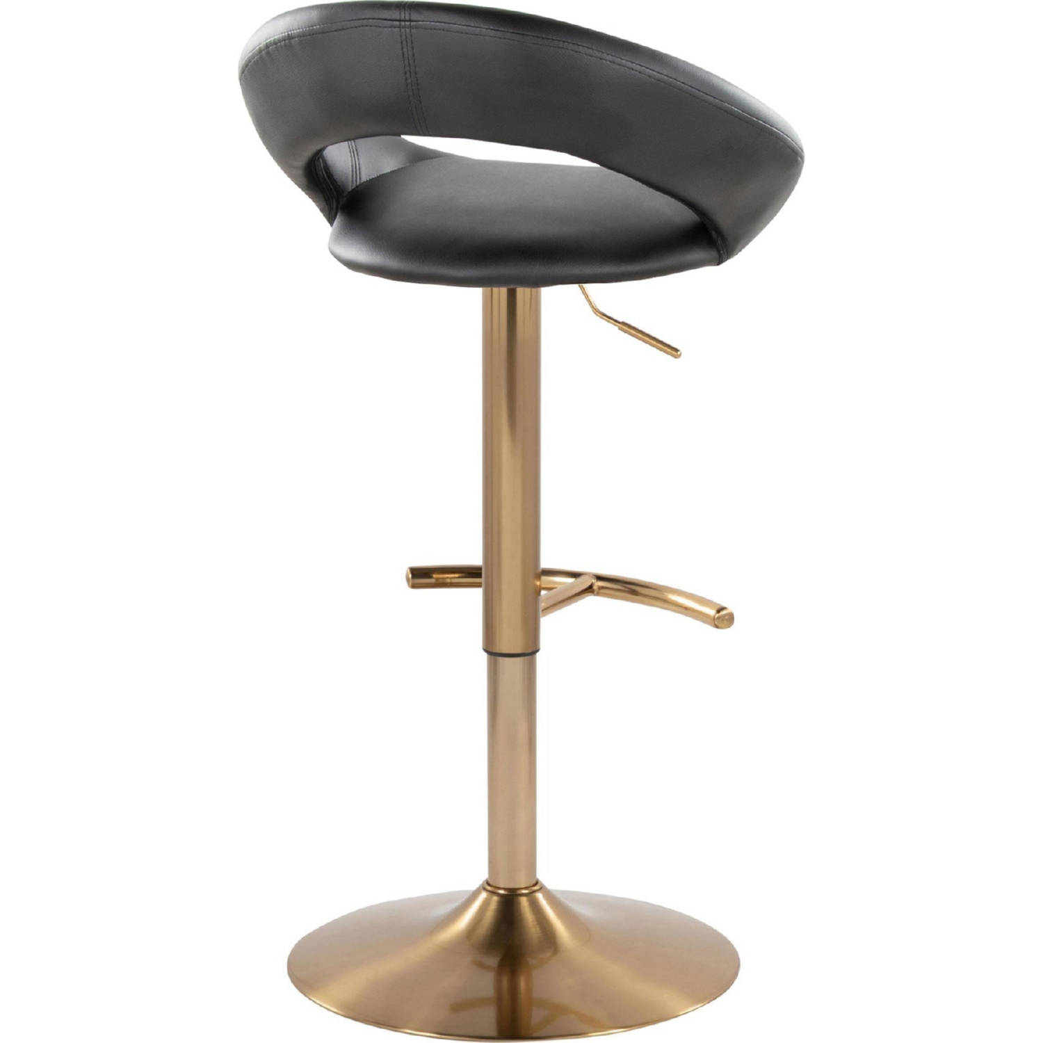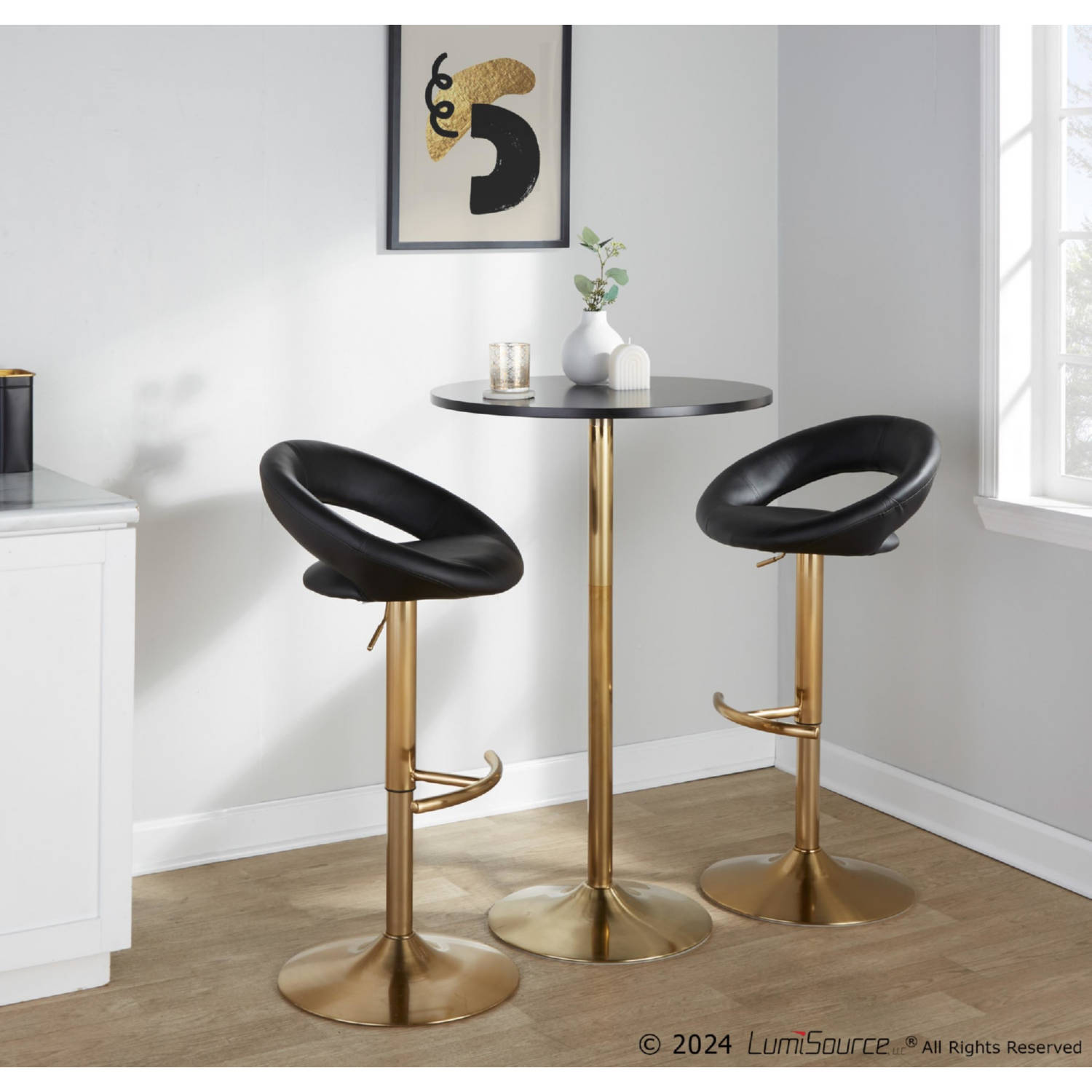 Lumisource BS-POSHPU-RT2 AUBK2 Posh Adjustable Swivel Bar Stool Gold Black Leatherette (Set of 2)