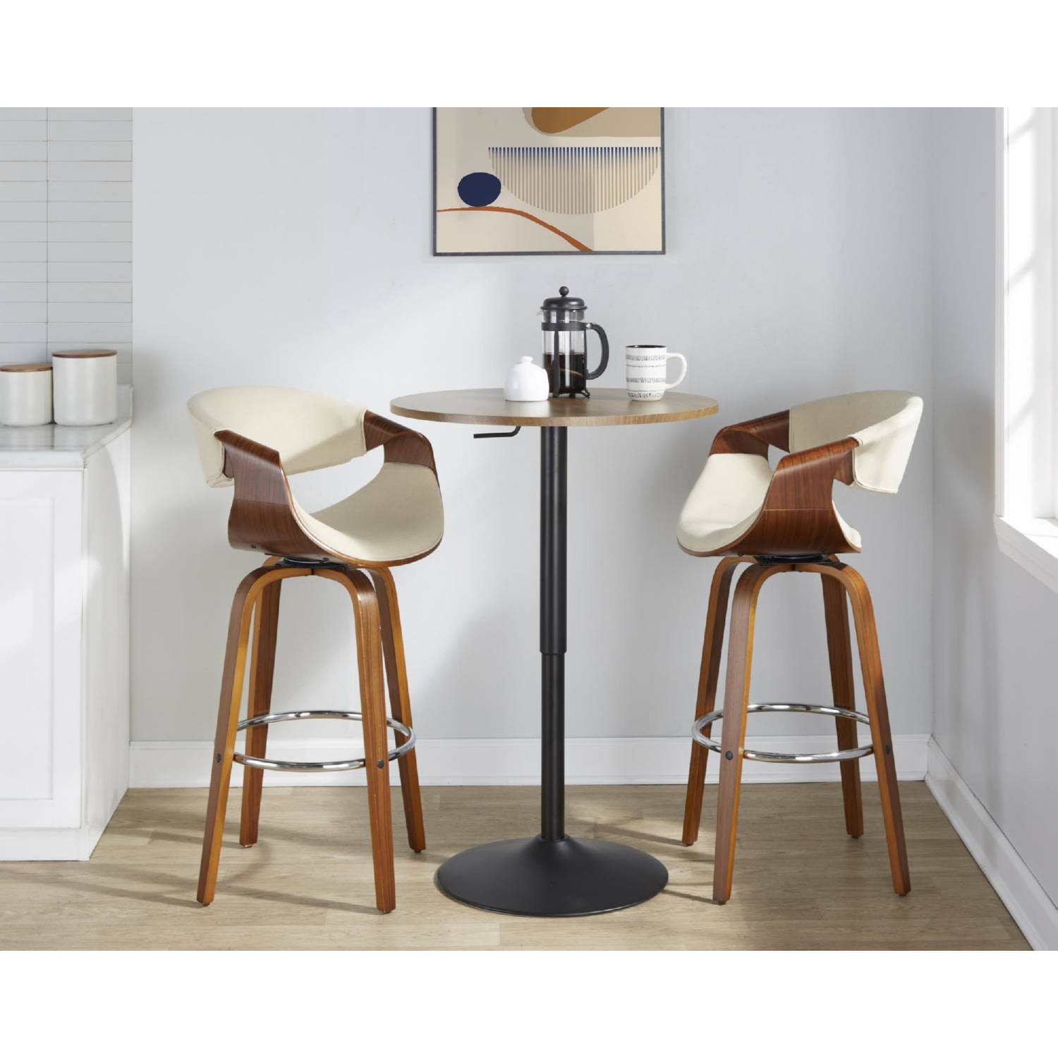 Lumisource Elia Adjustable Bar Table in Black Metal & Walnut Wood Top