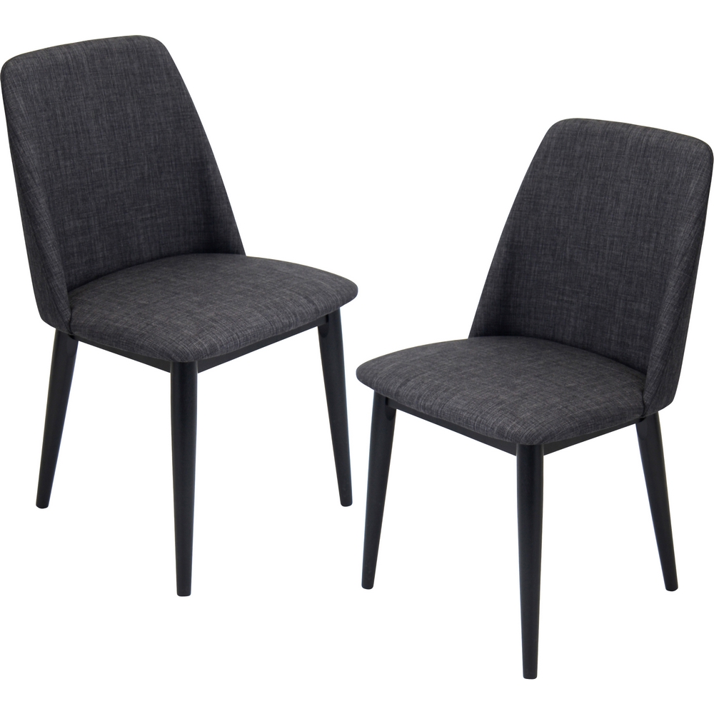 Lumisource Tintori Dining Chair in Charcoal Fabric & Black Wood Legs (Set of 2)