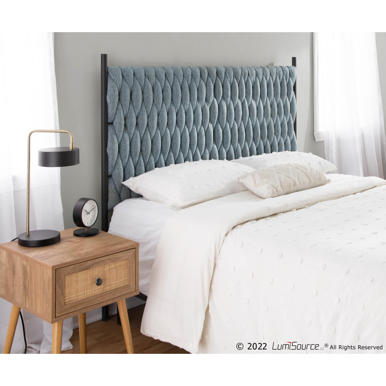 Lumisource HBQ-BRAIDMAT BKBU Braided Matisse Queen Headboard Blue Fabric Black Metal