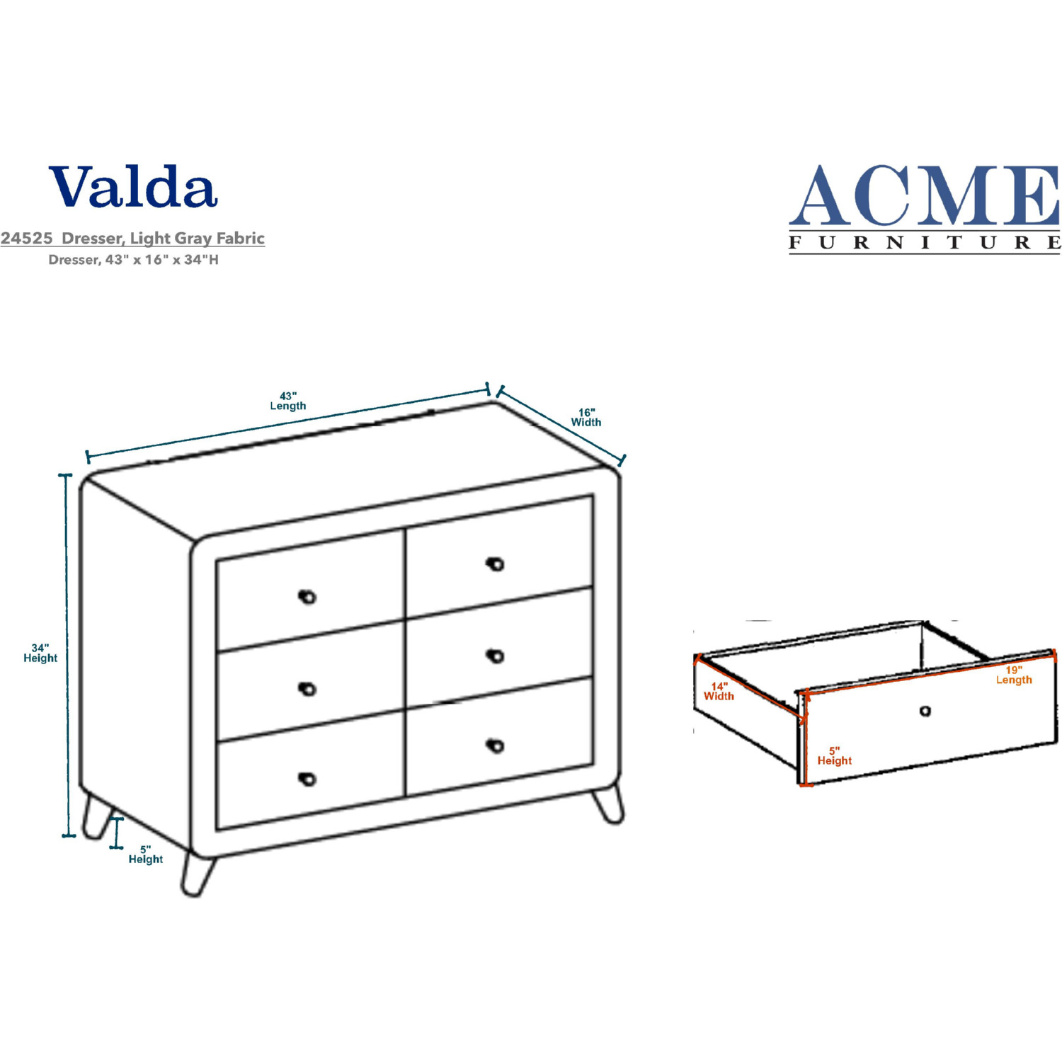 Acme Furniture 24525 Valda Dresser Light Gray Fabric