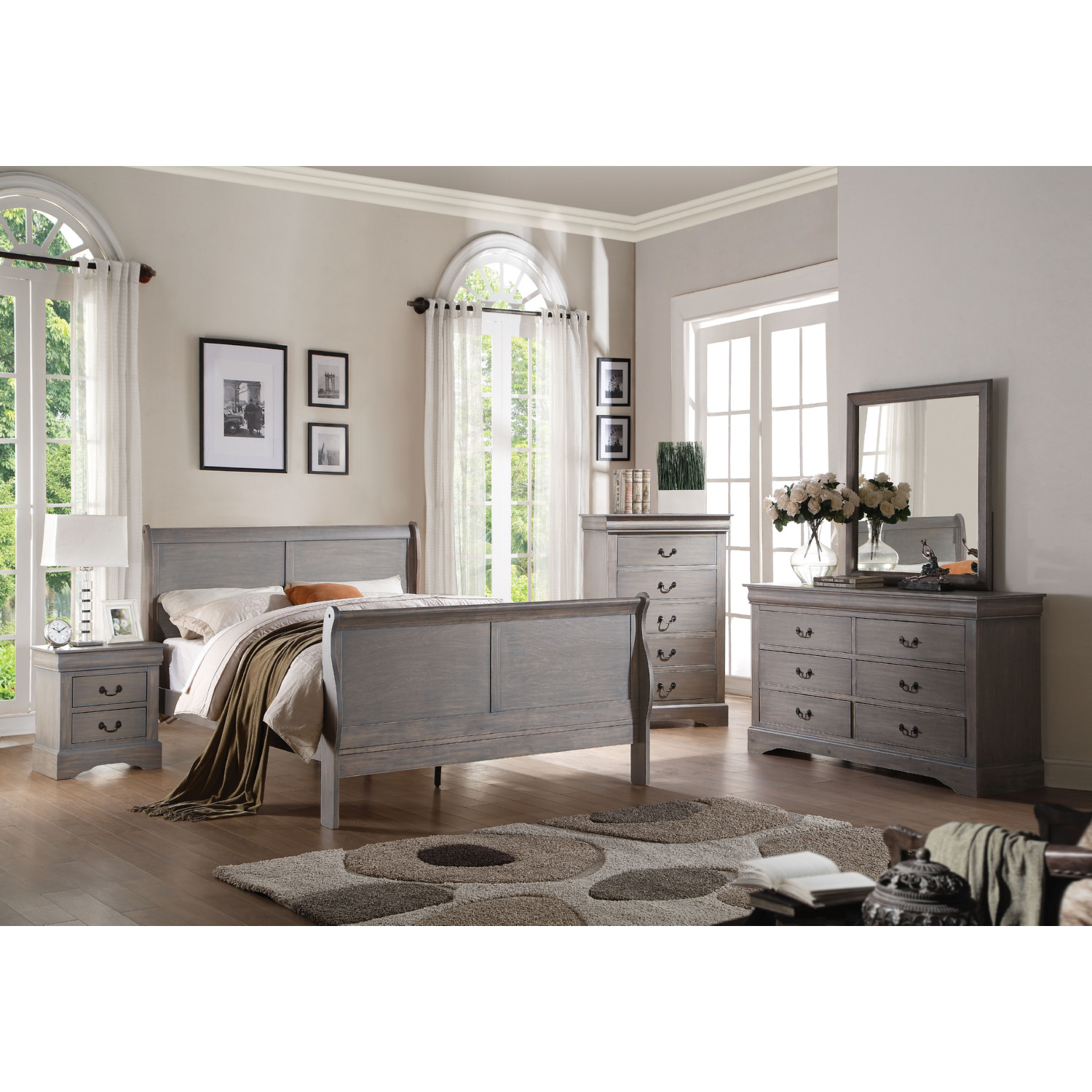 Acme Furniture Louis Philippe III Queen Bed in Antique Gray