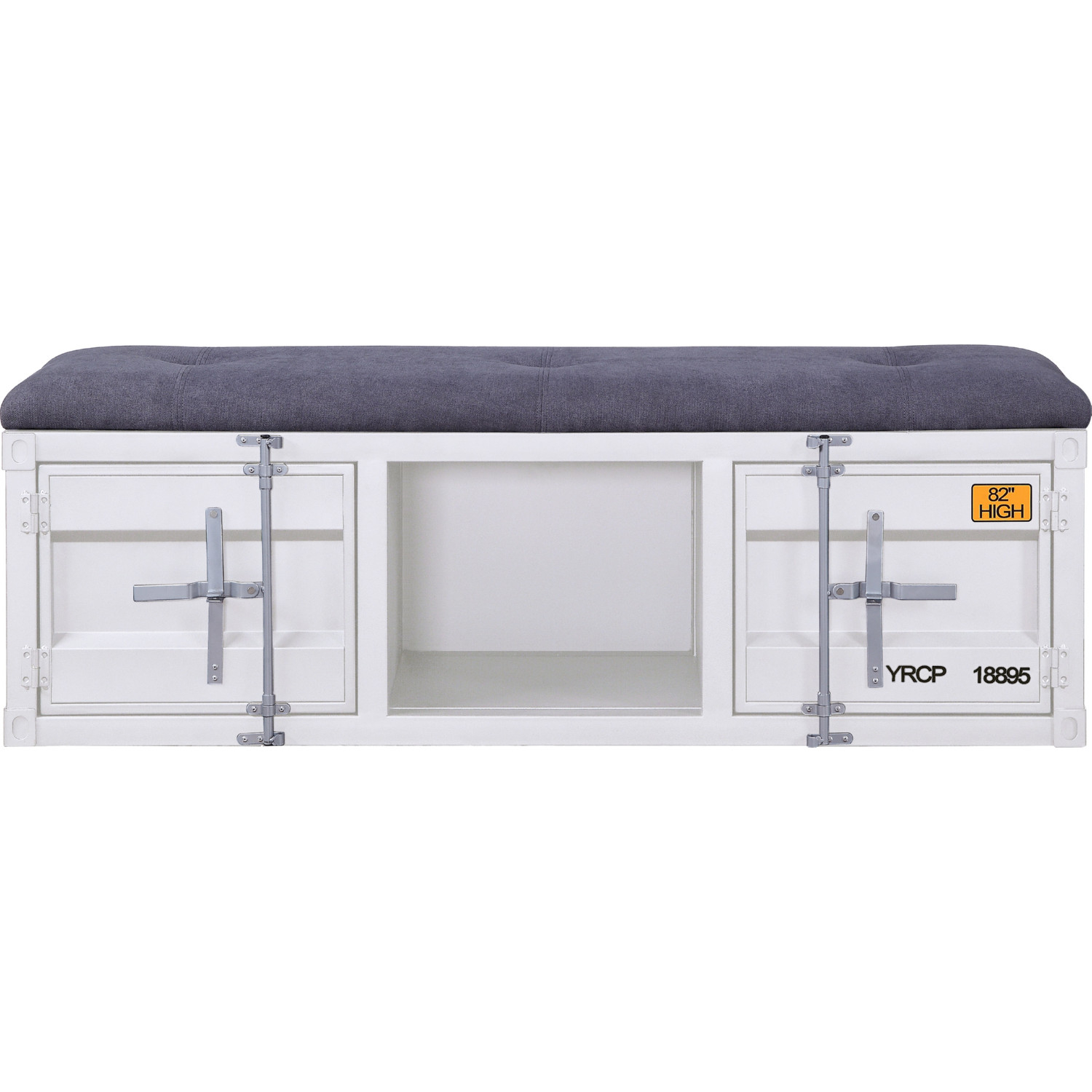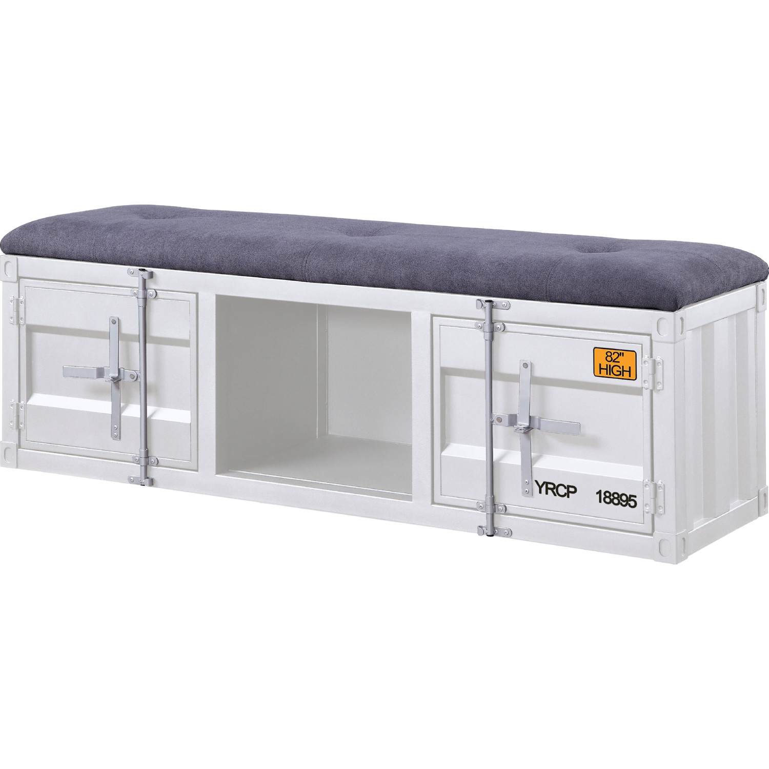 Acme Furniture Cargo Storage Bench in Gray Fabric & White Metal