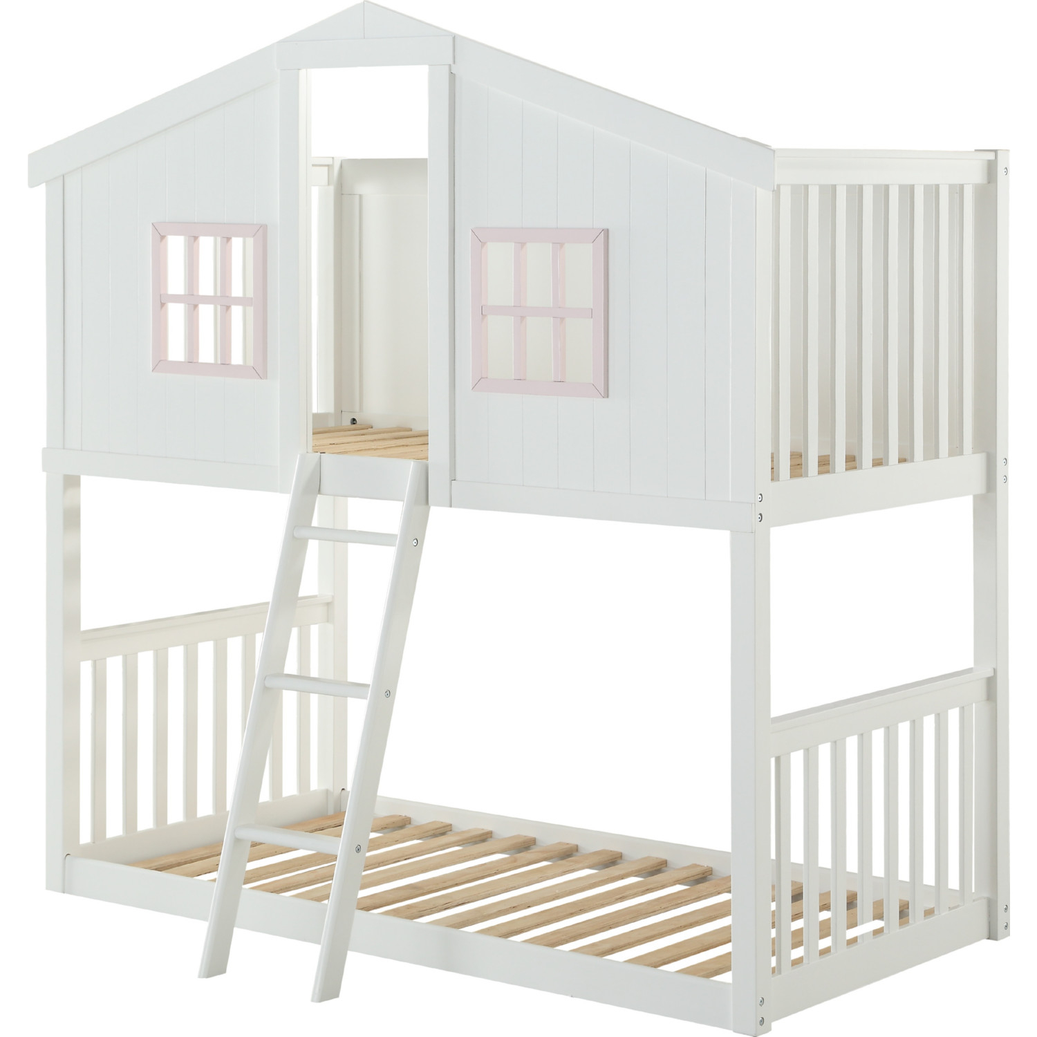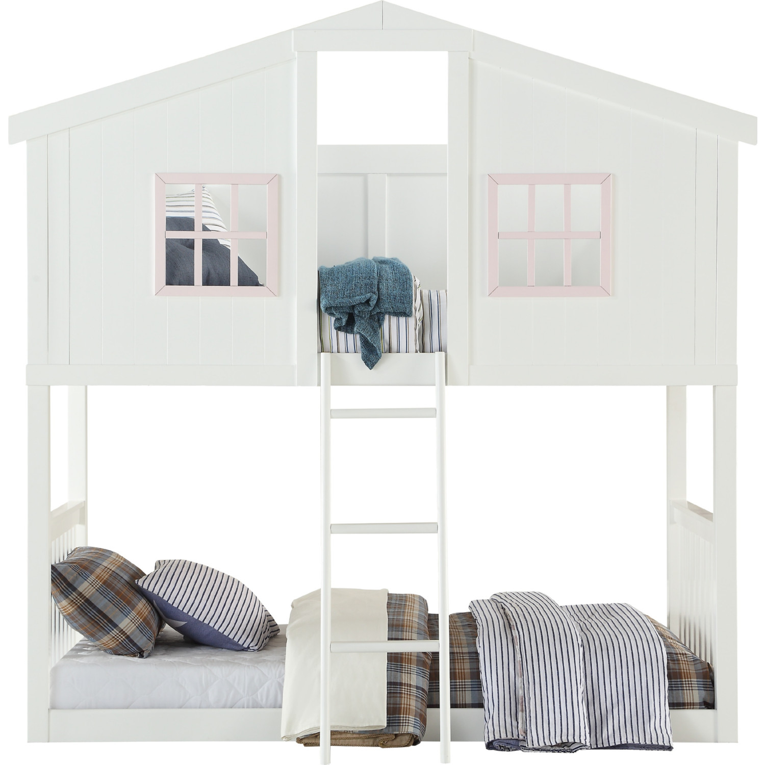 Acme Furniture 37410 Rohan Cottage Twin over Twin Bunk Bed White & Pink