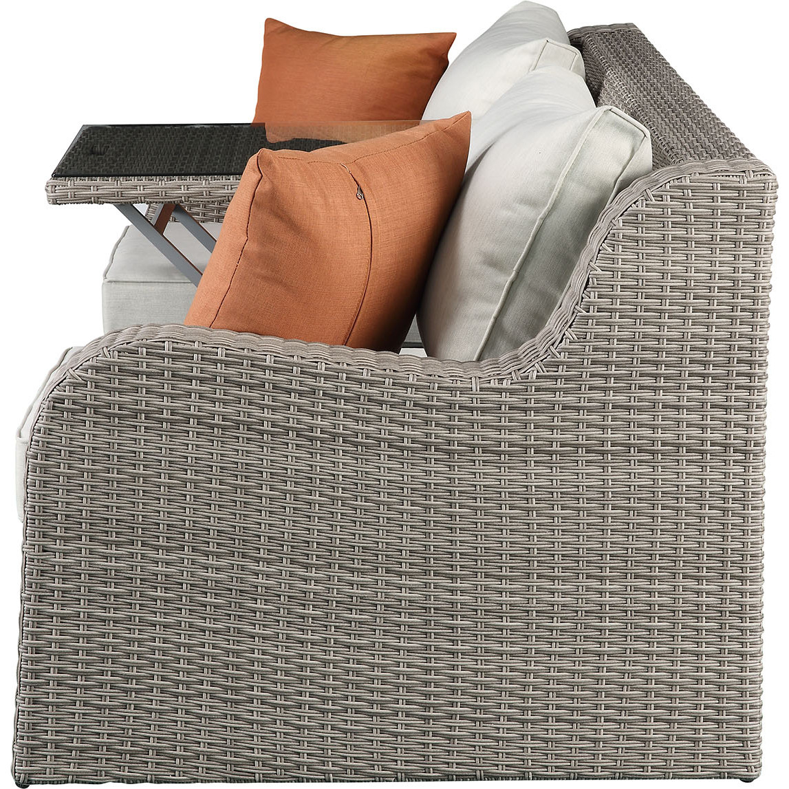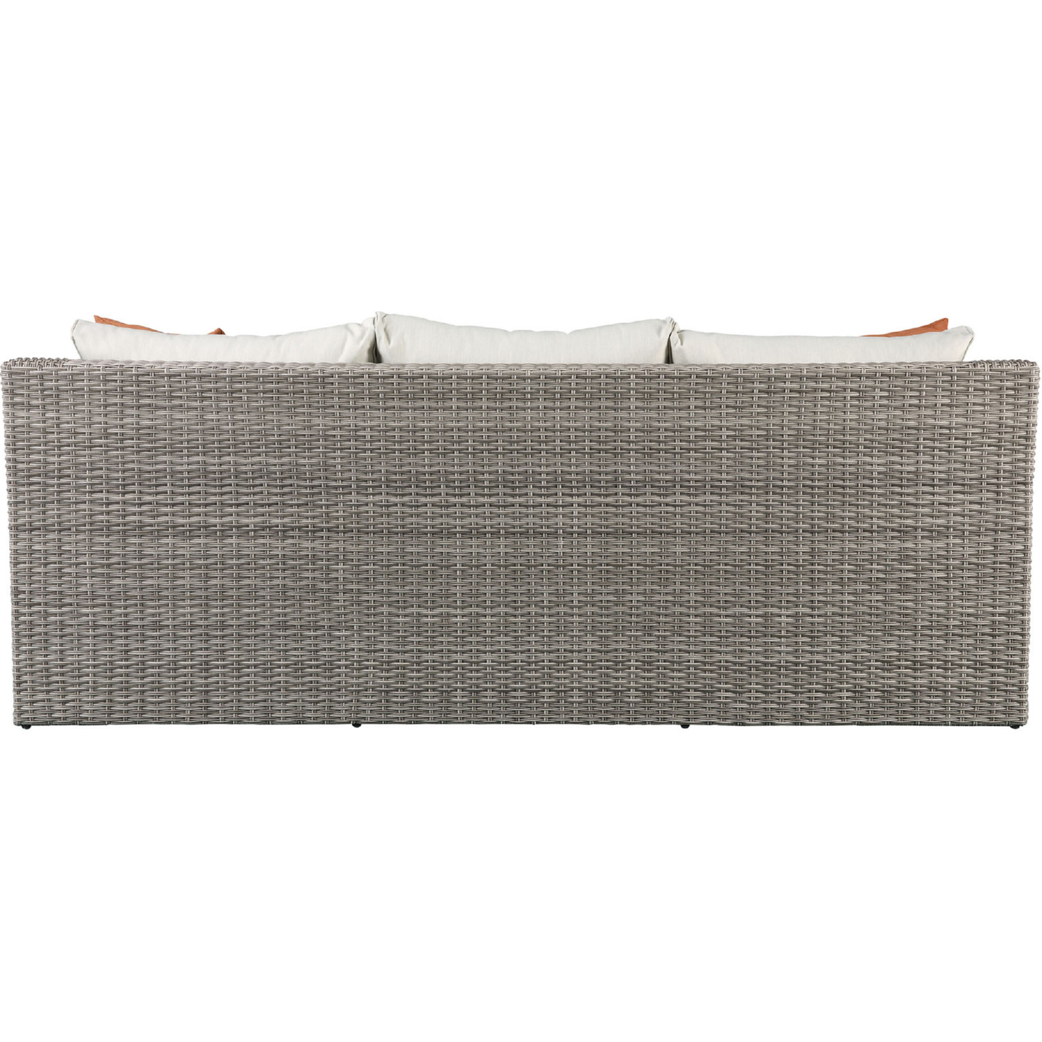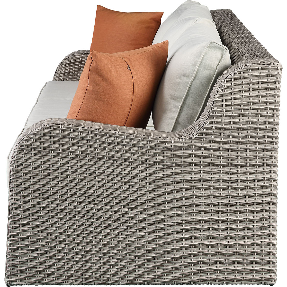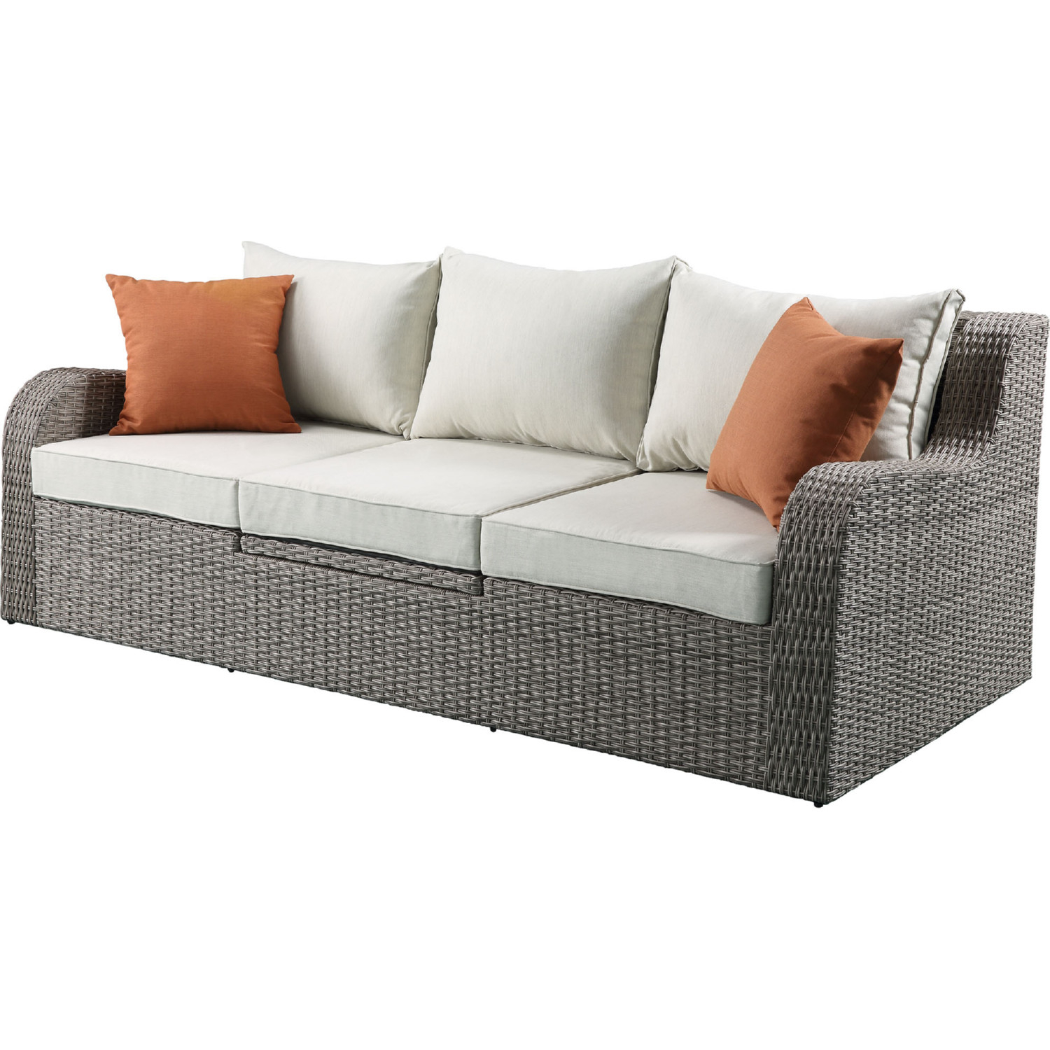 Acme Furniture Salena 3 Piece Patio Sectional Sofa & Ottoman in Beige Fabric & Gray Wicker