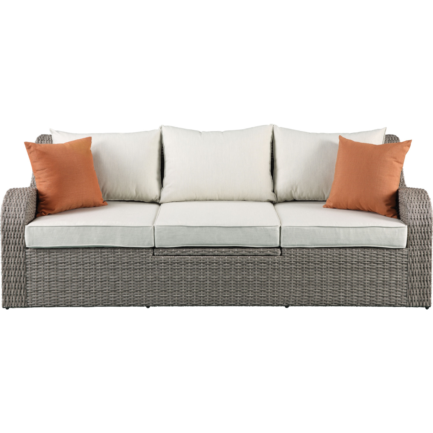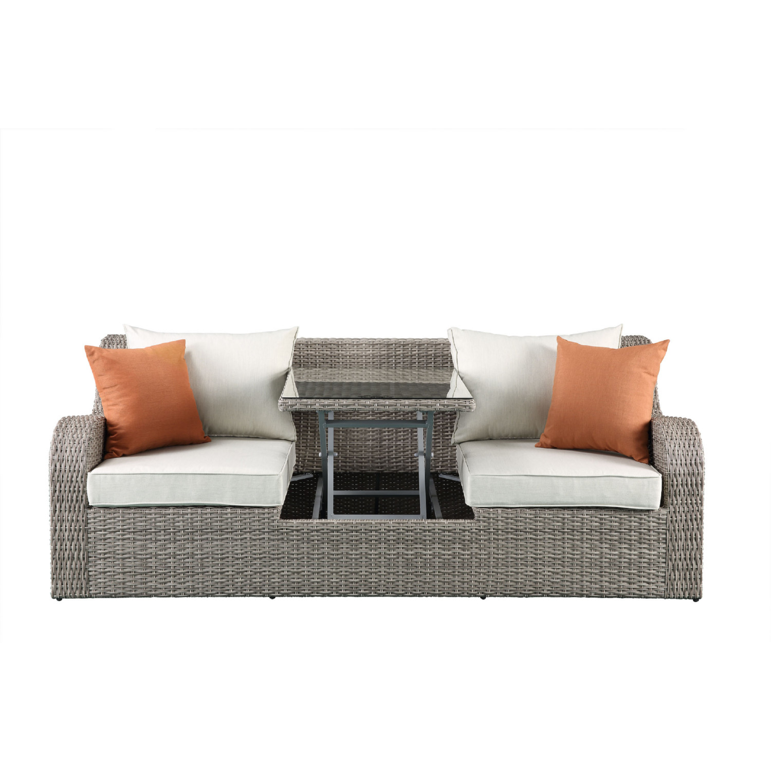 Acme Furniture 45010 Salena 3 Piece Patio Sectional Sofa & Ottoman Beige Fabric & Gray Wicker