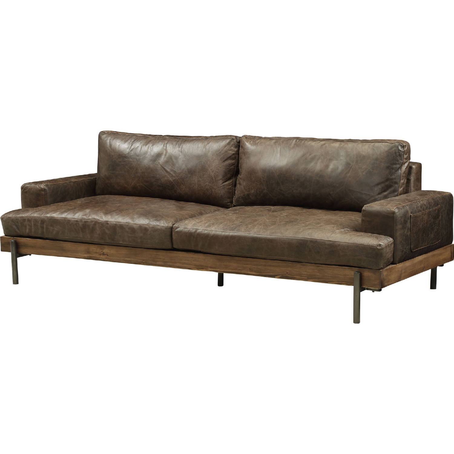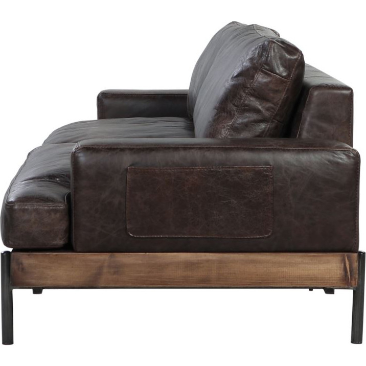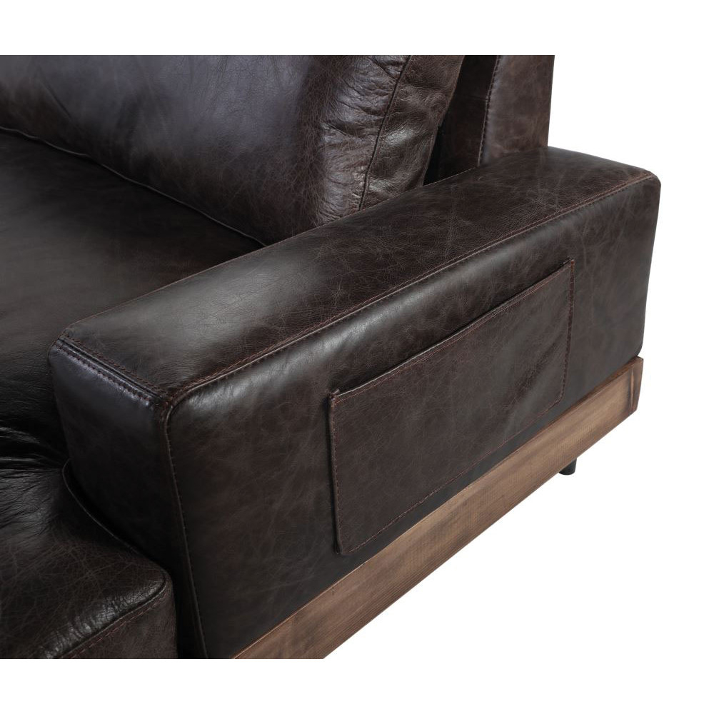 Acme Furniture Silchester Sofa in Distressed Brown Top Grain Leather & Oak