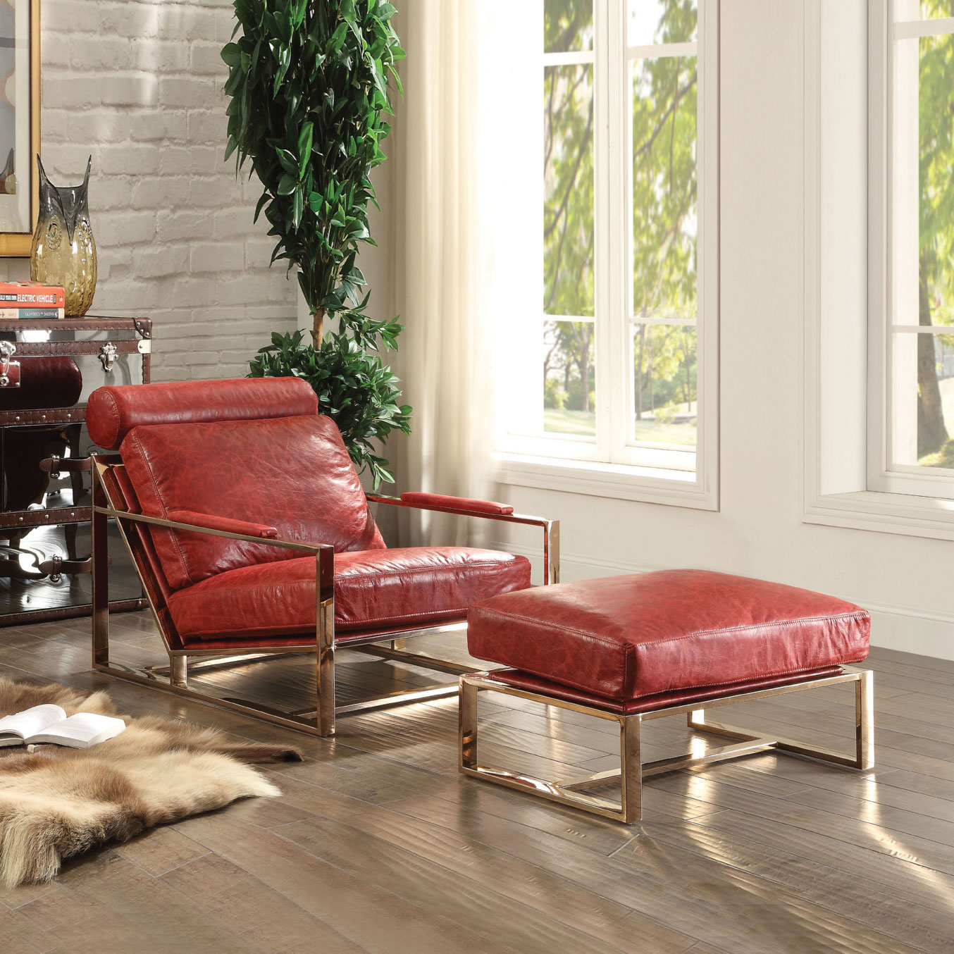 Acme Furniture 96672 Quinto Accent Chair Antique Red Top Grain Leather & Stainless