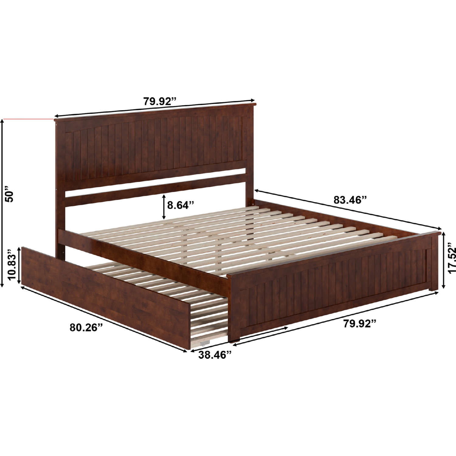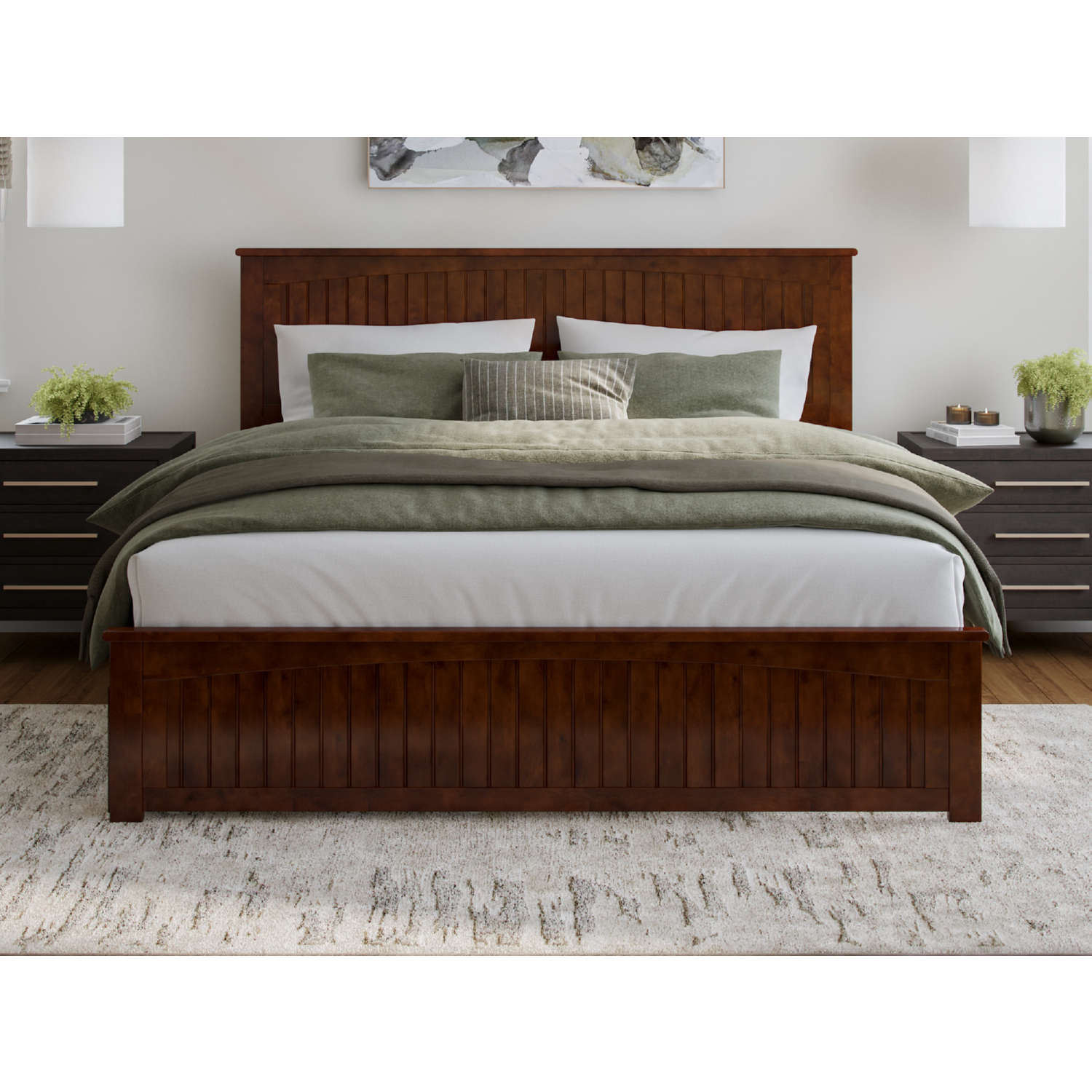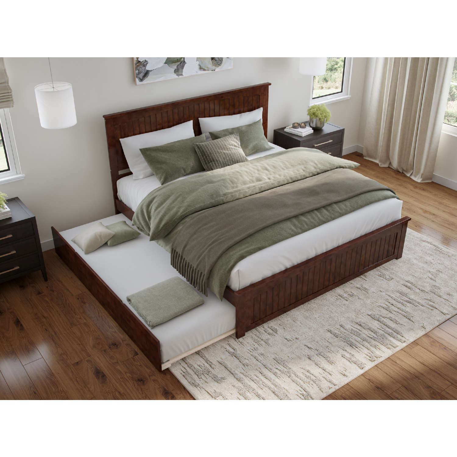 AFI Furnishings Nantucket King Platform Bed with Footboard, Twin XL Trundle & Charging in Walnut