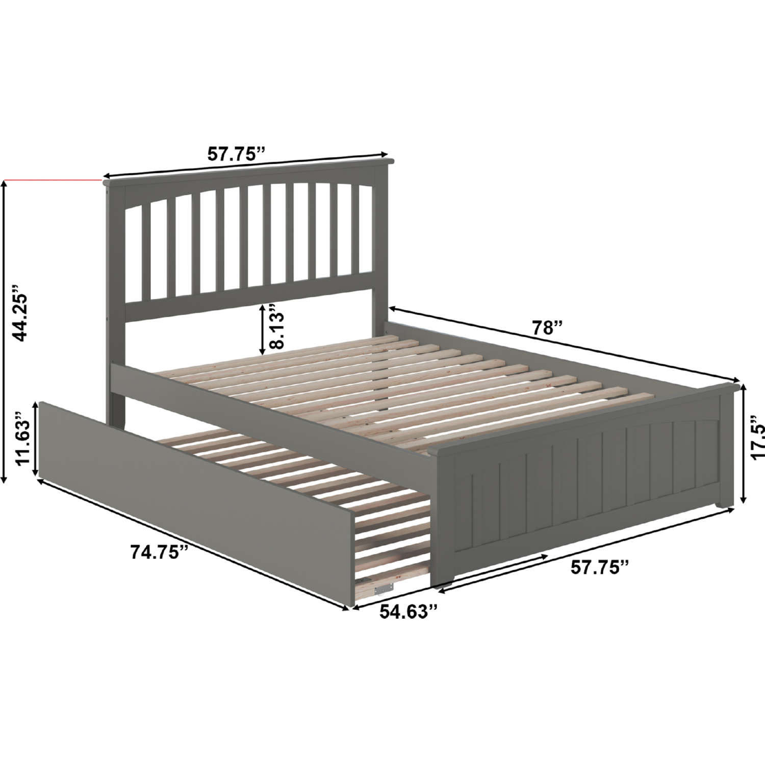 AFI Furnishings AR8736059 Mission Full Platform Bed with Matching Foot Board & Full Urban Trundle Grey