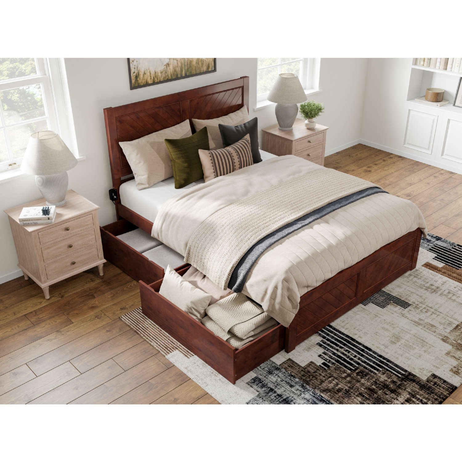 AFI Furnishings Canyon Queen Platform Bed w/ Footboard & Storage Drawers in Walnut Wood