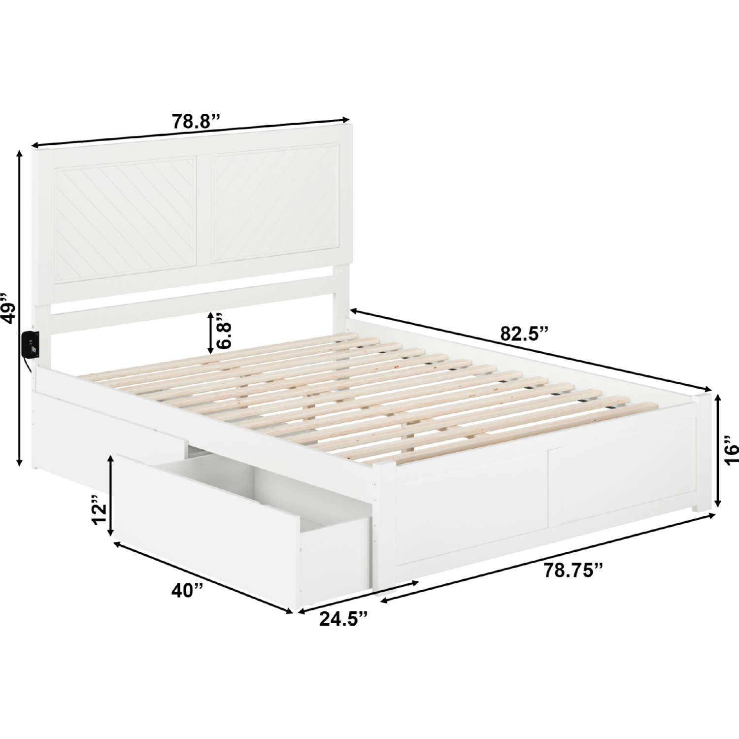 AFI Furnishings Canyon King Platform Bed with 2 Drawers in White Finish Wood