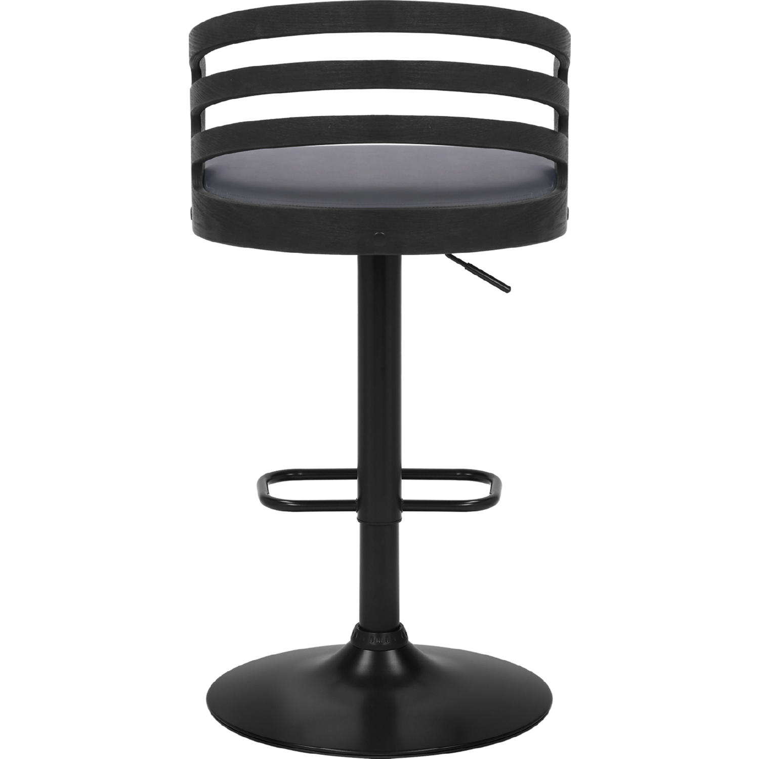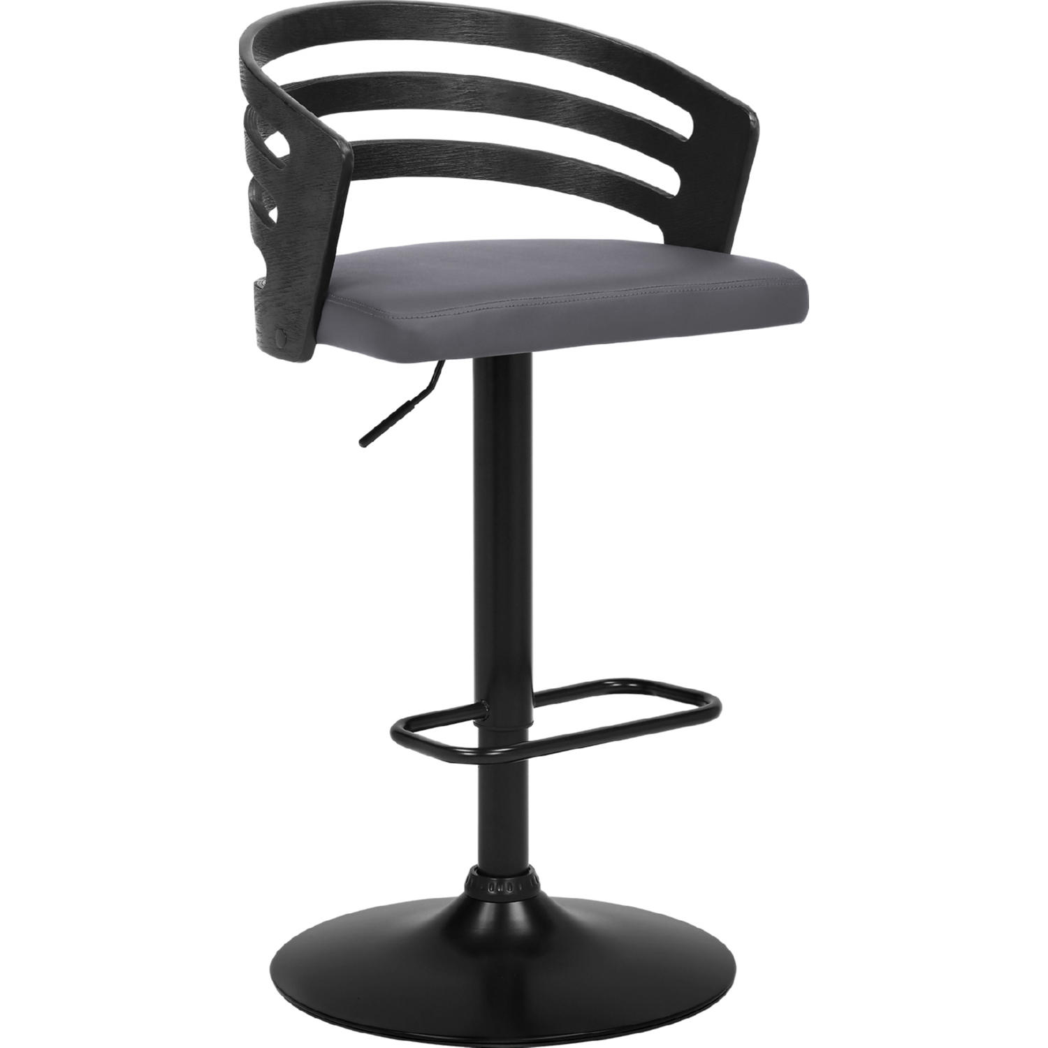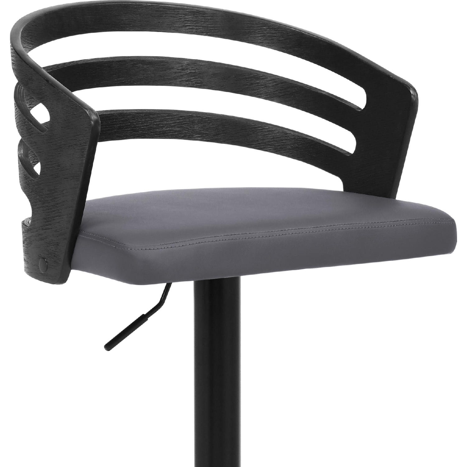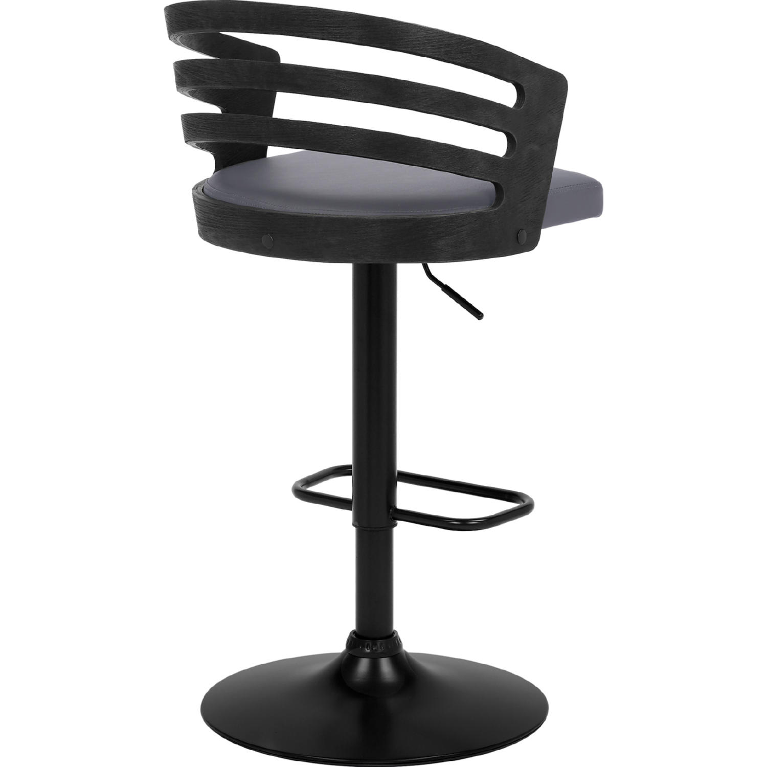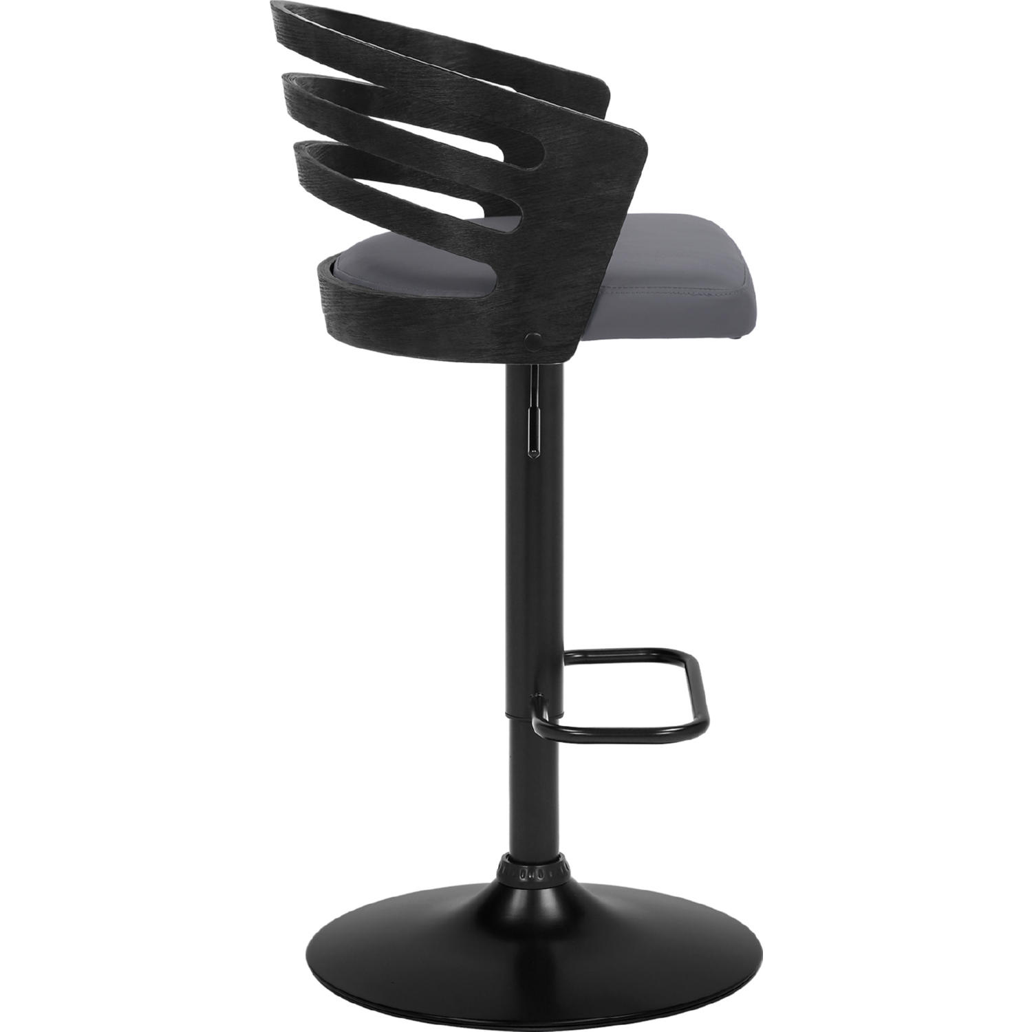 Armen Living Adele Adjustable Height Swivel Bar Stool in Grey Leatherette, Black Wood & Black