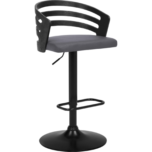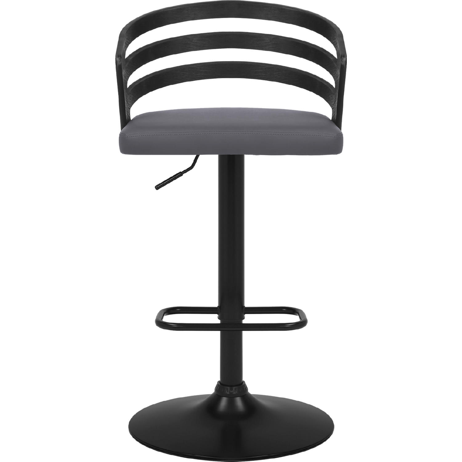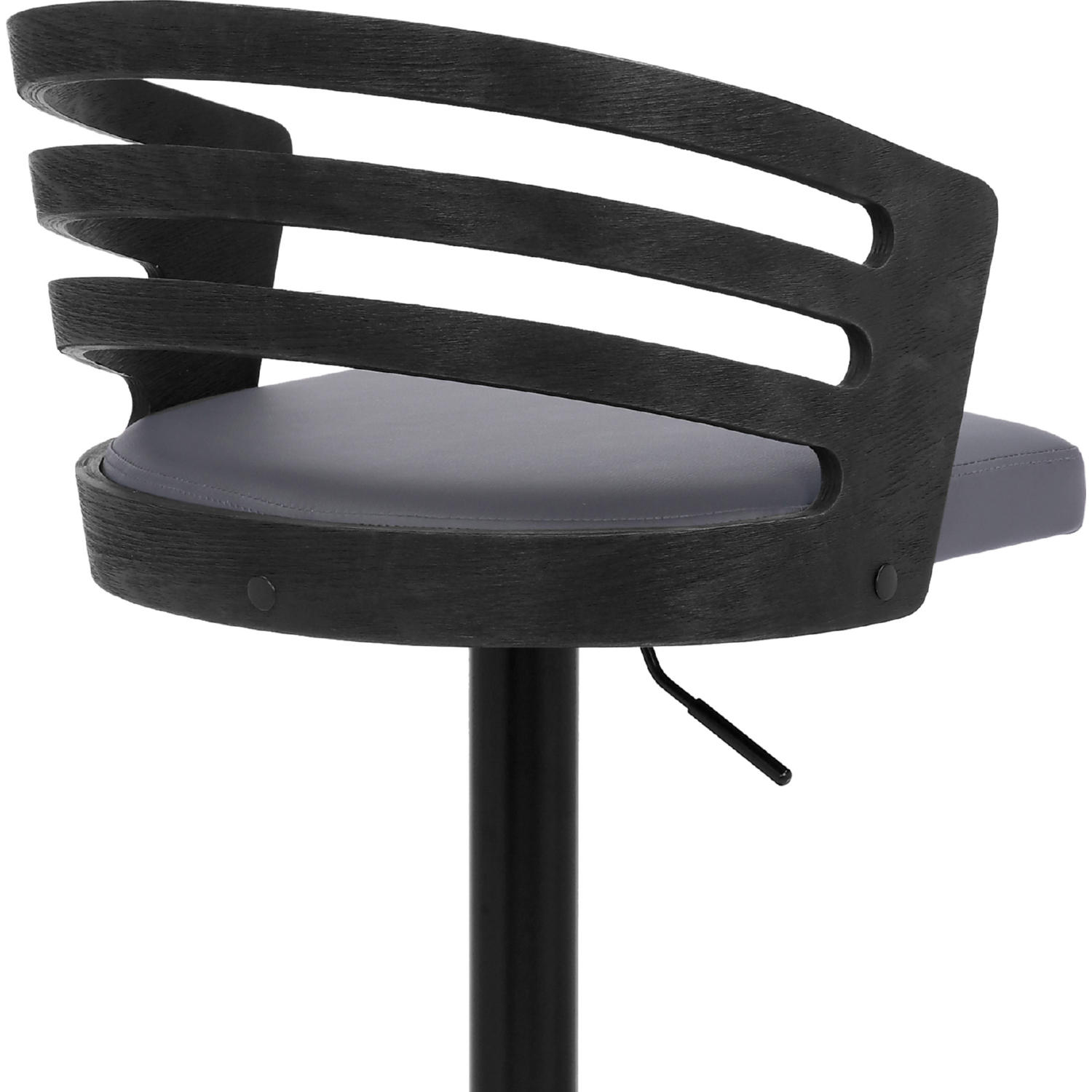 Armen Living LCADBAGRBL Adele Adjustable Height Swivel Bar Stool Grey Leatherette, Black Wood & Black