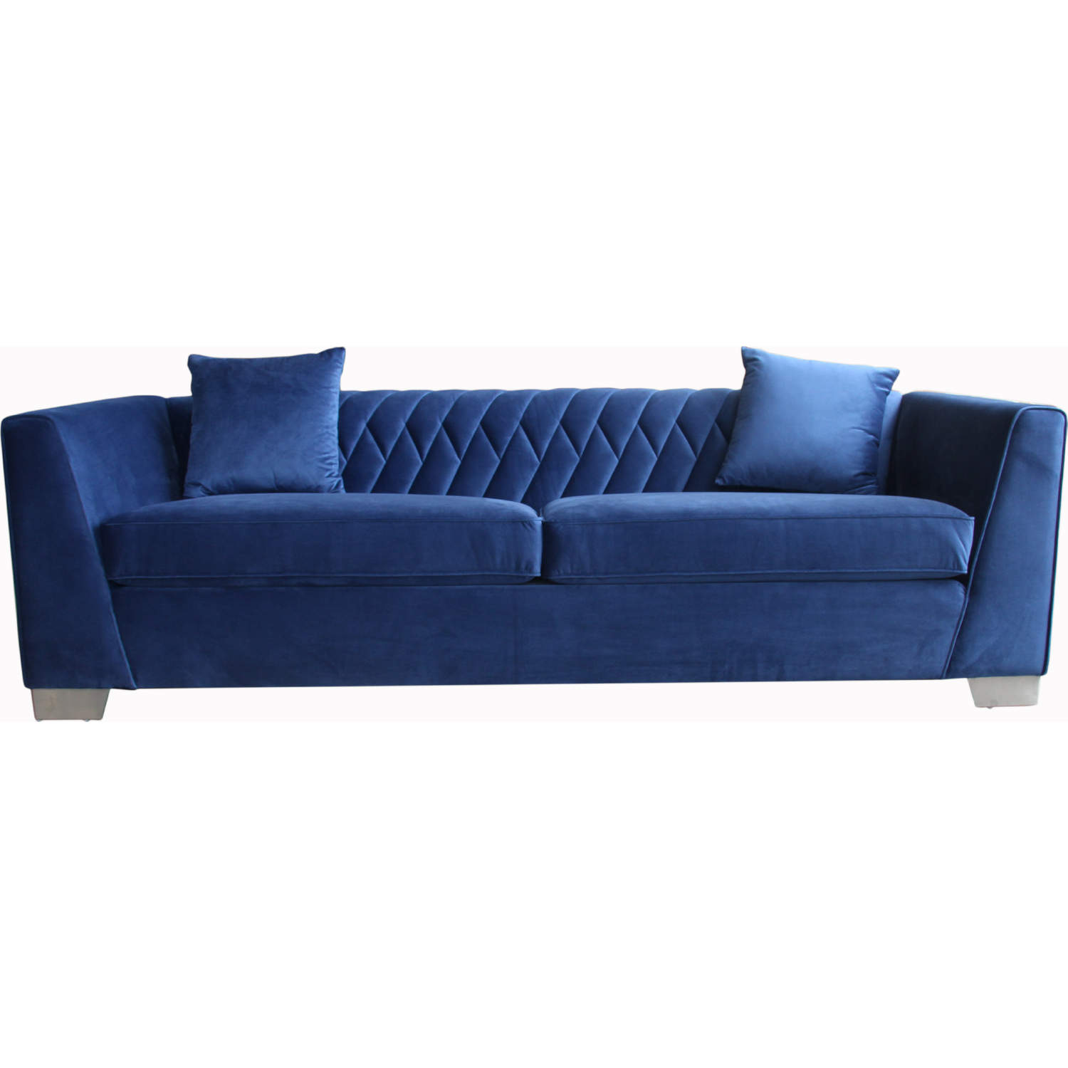 Armen Living Cambridge Sofa in Blue Velvet & Brushed Stainless Steel
