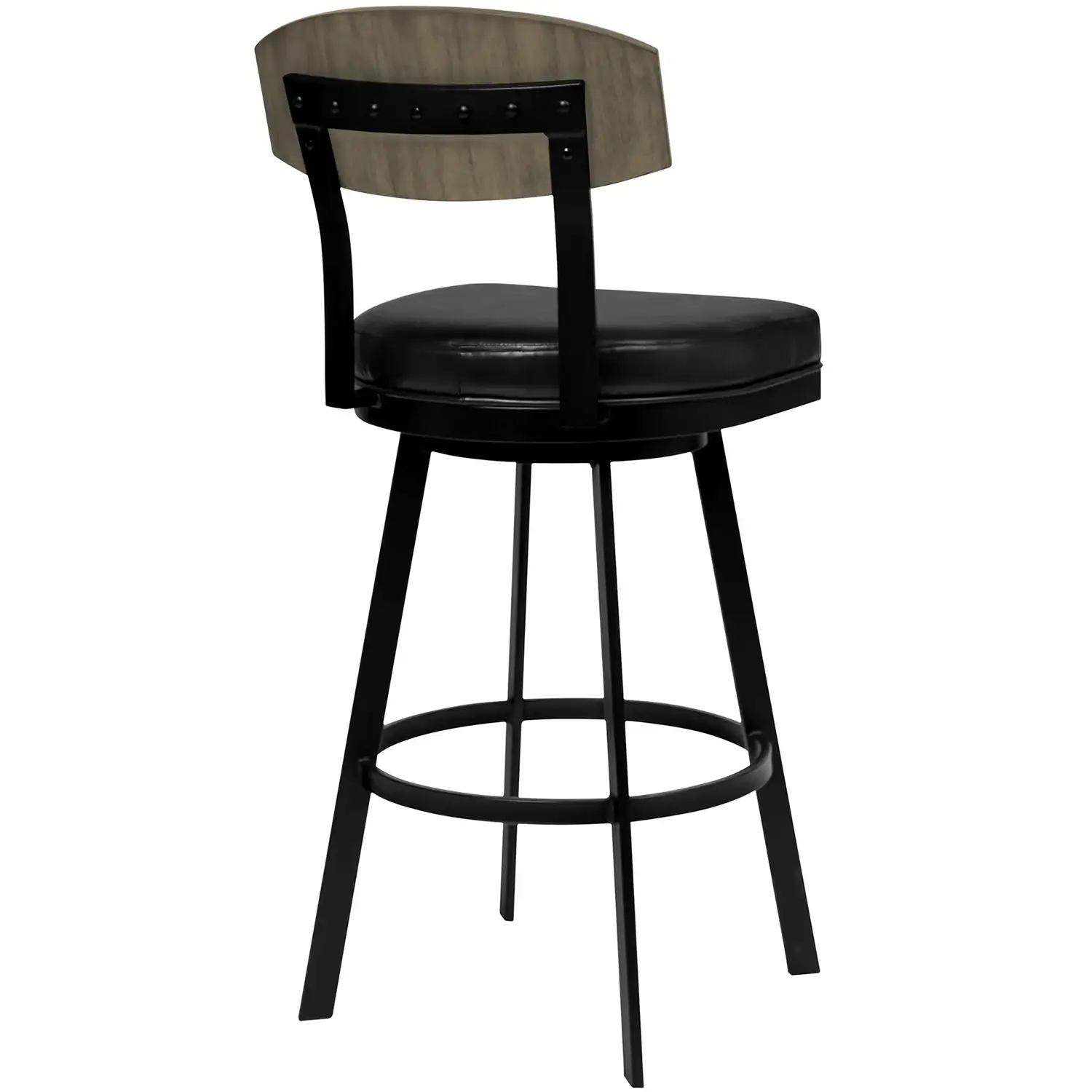 Frisco 26" Counter Stool in Black Metal, Black Leatherette & Grey Walnut