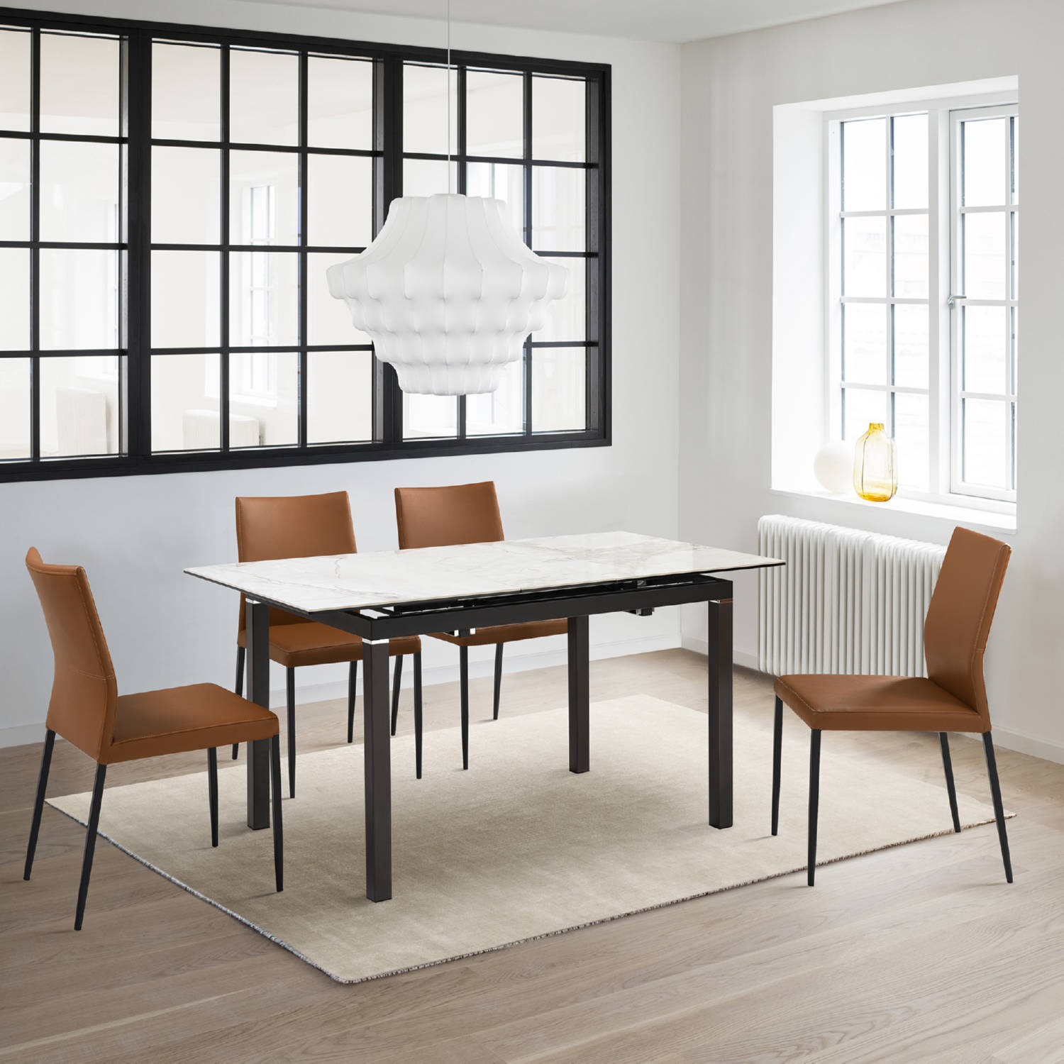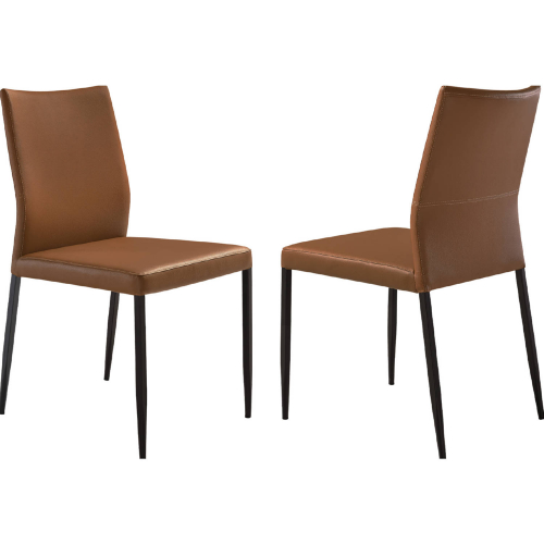 Armen Living Kash Dining Chair in Brown Leatherette & Black Metal (Set of 2)
