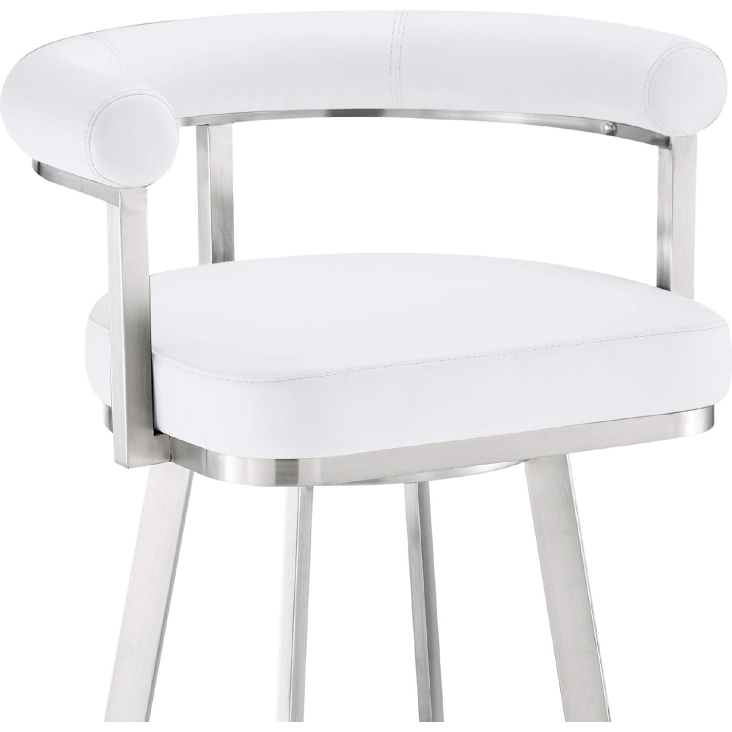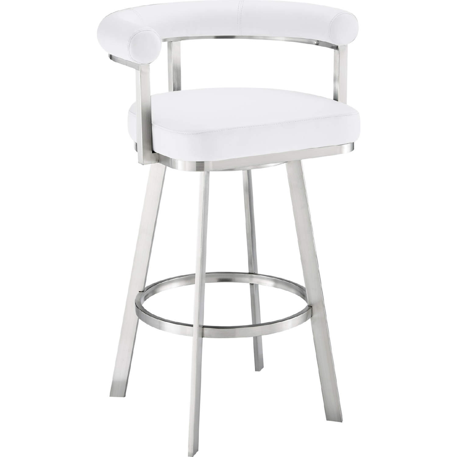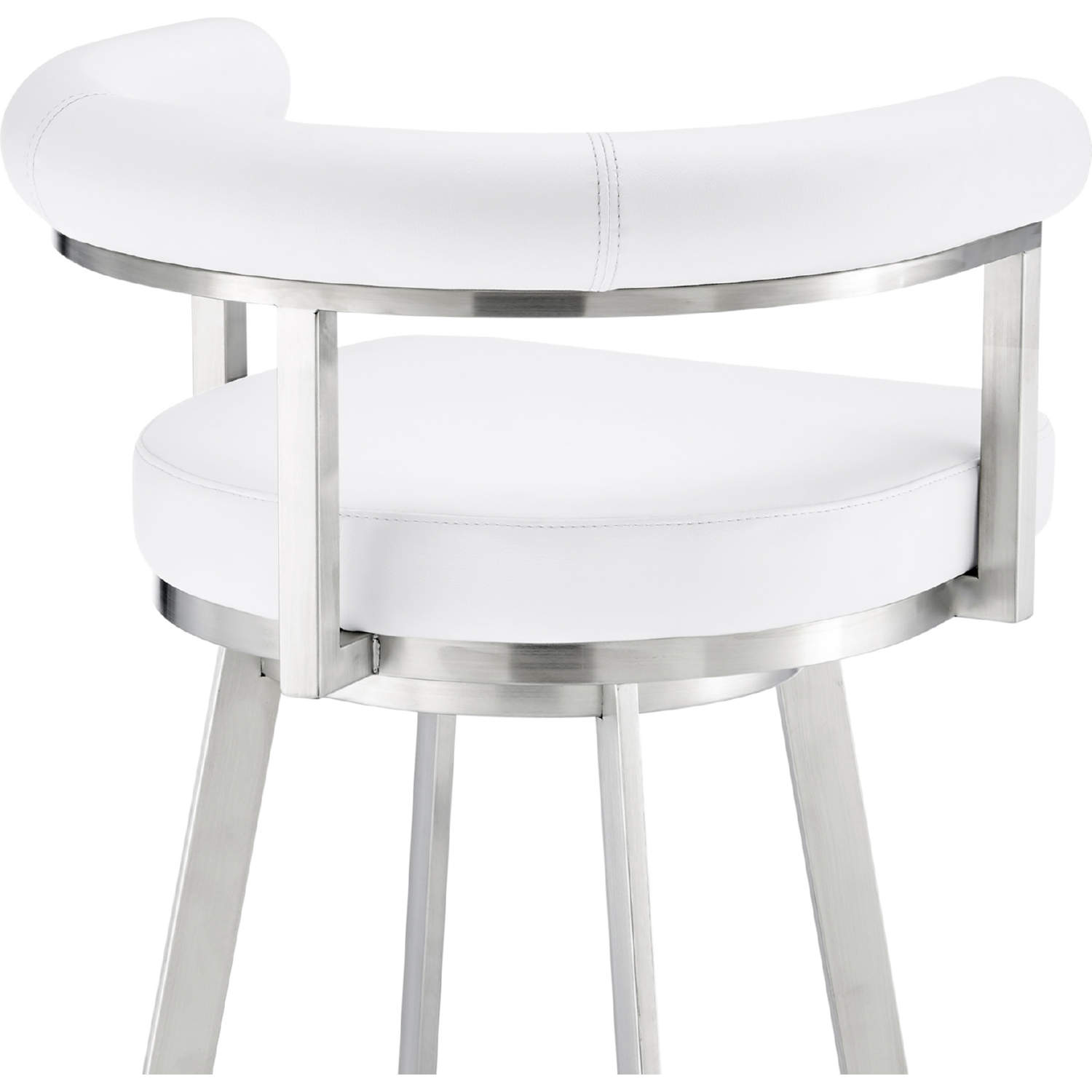 Armen Living LCMGBABSWHI26 Magnolia 26" Swivel Counter Stool Brushed Stainless Steel & White Leatherette