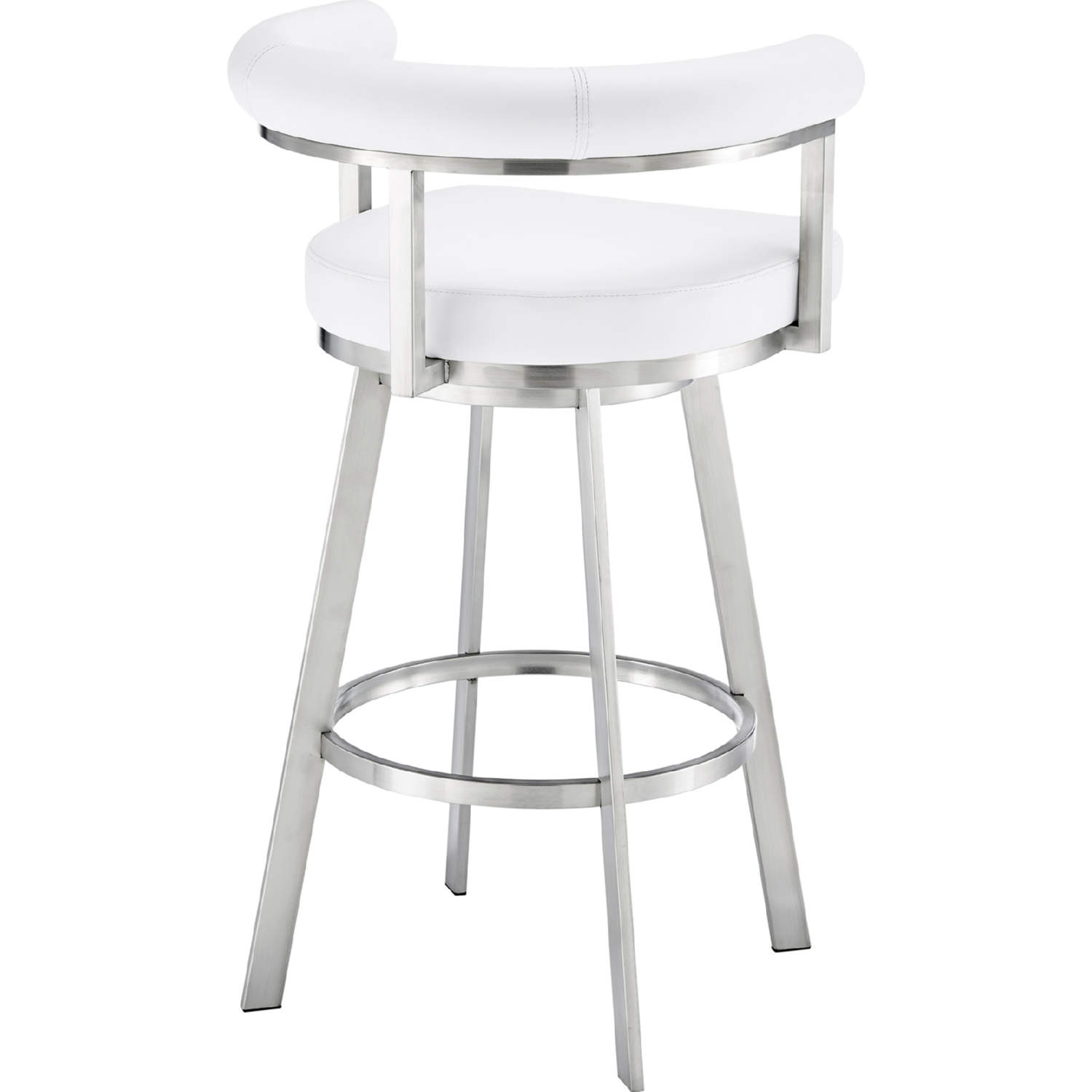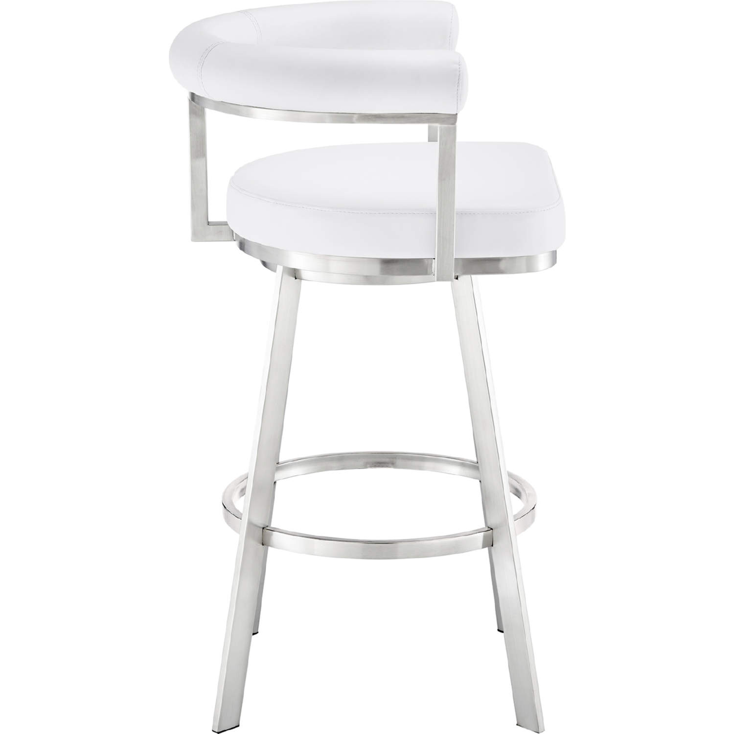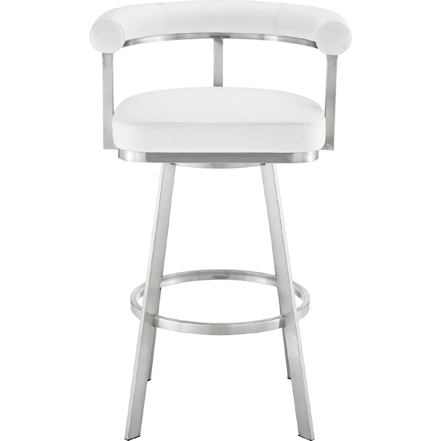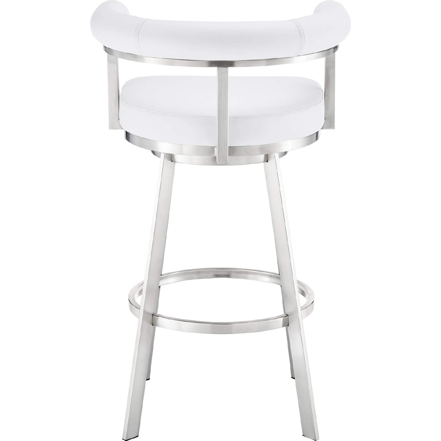 Armen Living LCMGBABSWHI26 Magnolia 26" Swivel Counter Stool Brushed Stainless Steel & White Leatherette