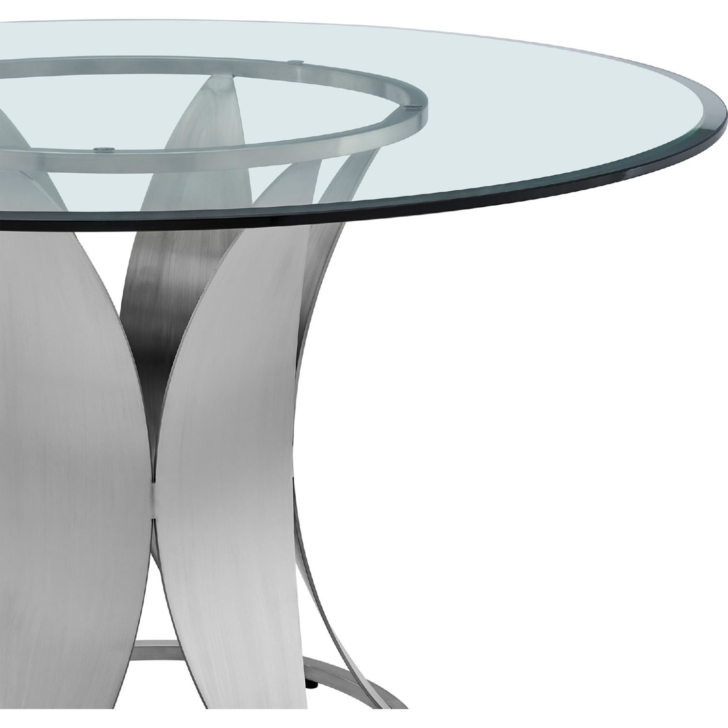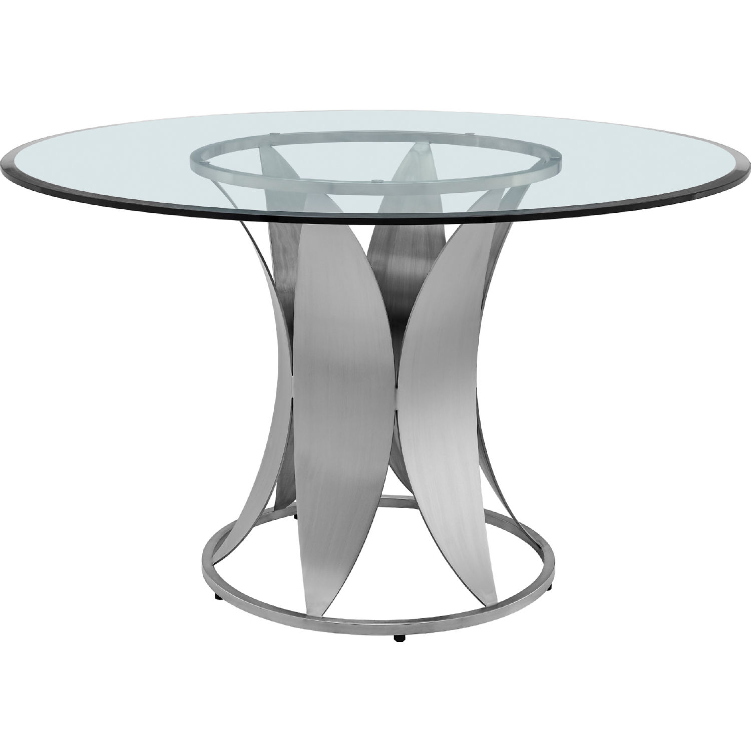 Armen Living LCPTDIGLBS Petal 48" Round Pedestal Dining Table Glass & Stainless Steel