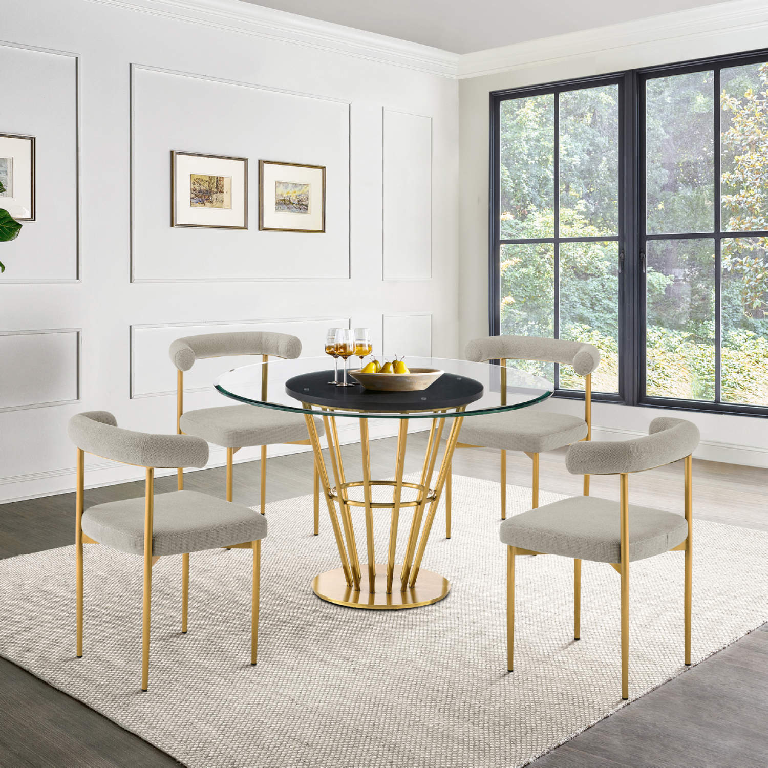 Armen Living Shannon Dining Chair in Brushed Gold Stainless Steal & Taupe Fabric (Set of 2)