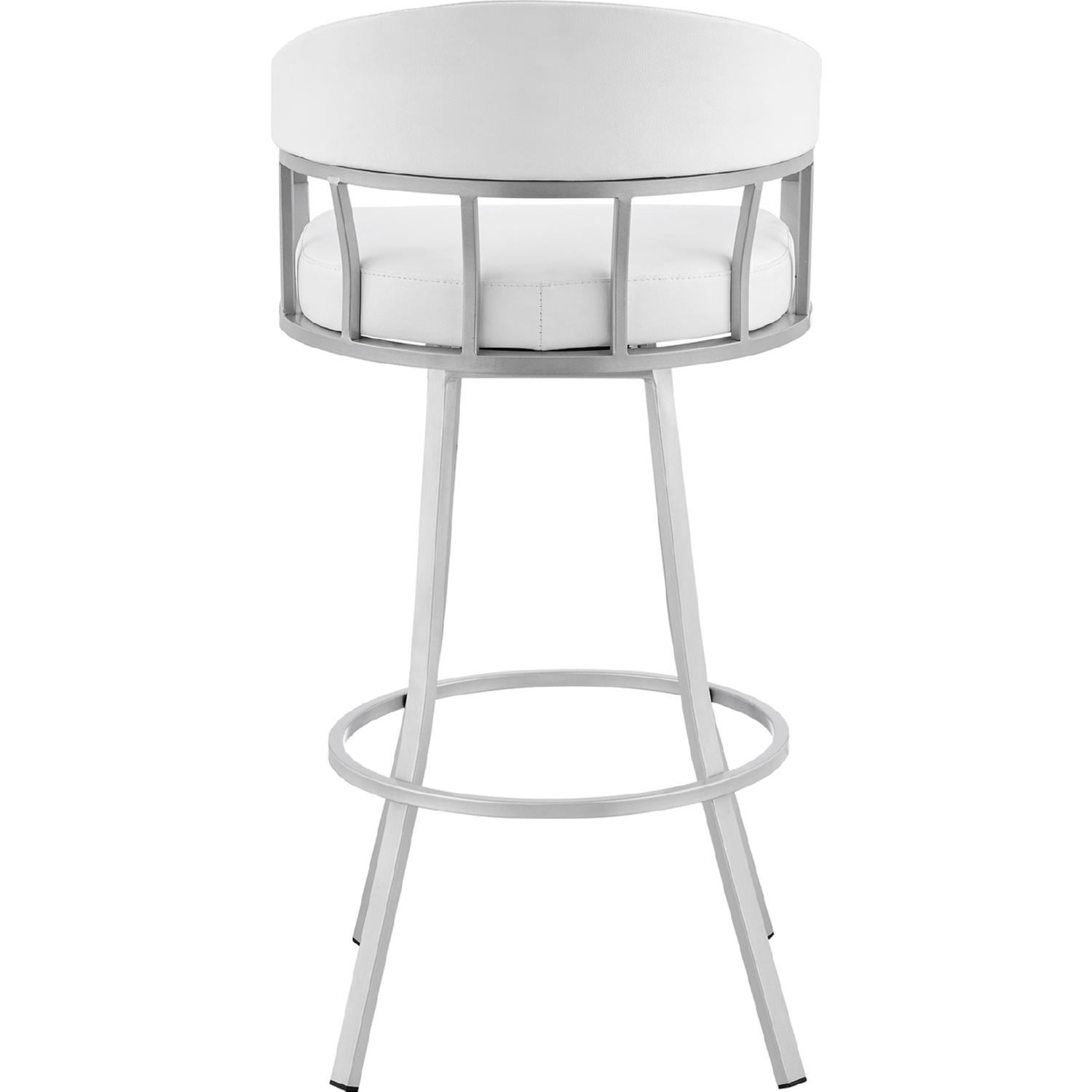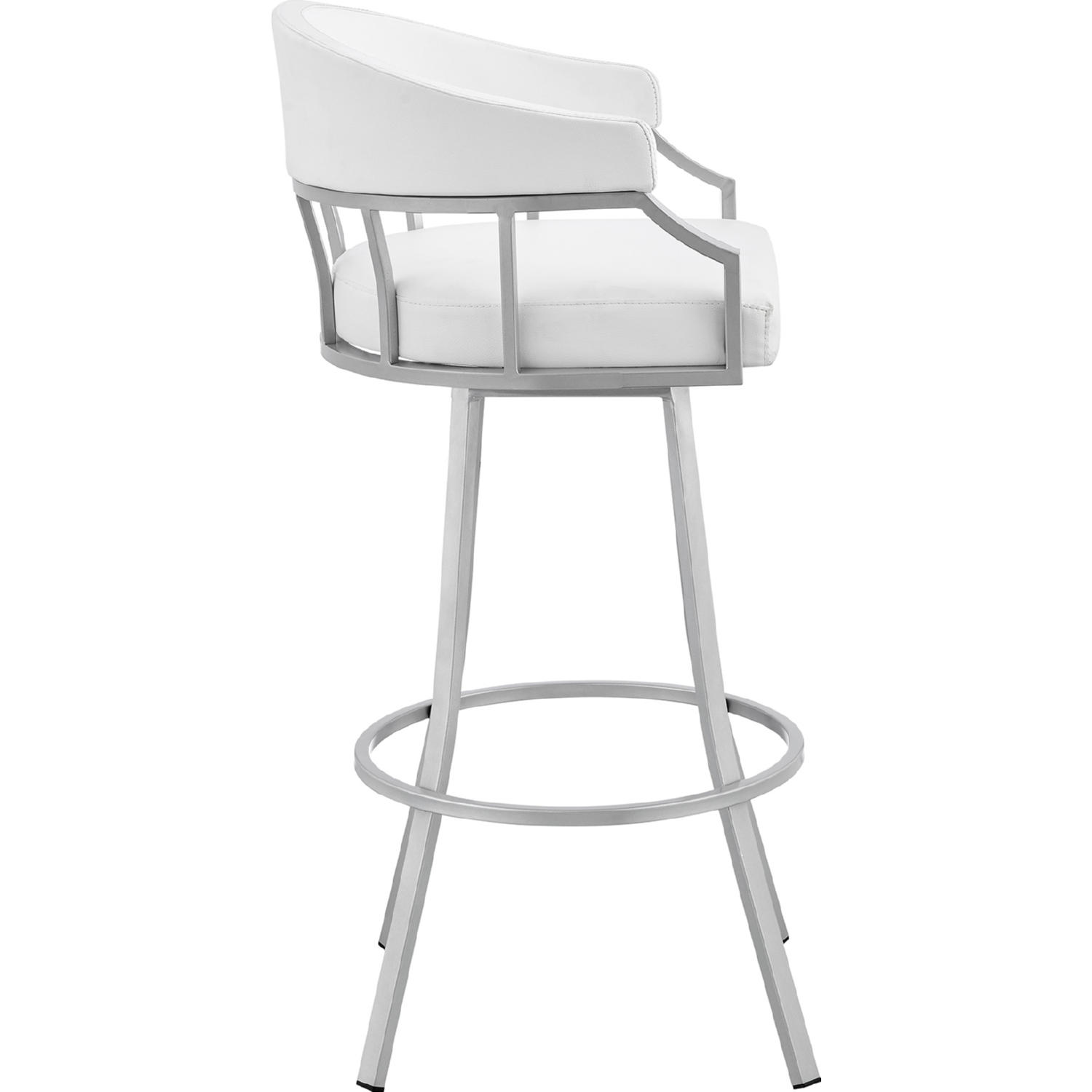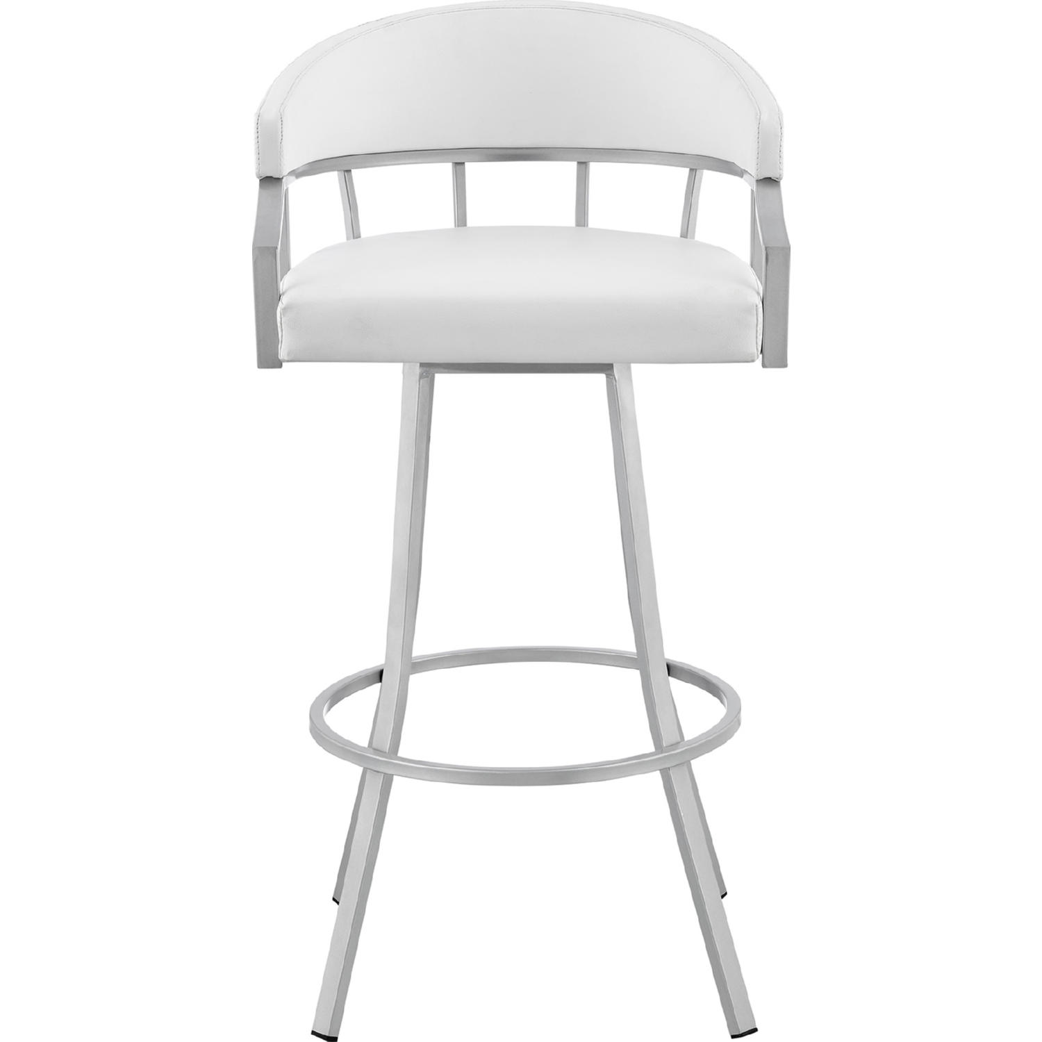 Armen Living Valerie 30" Swivel Bar Stool in White Leatherette & Silver Metal