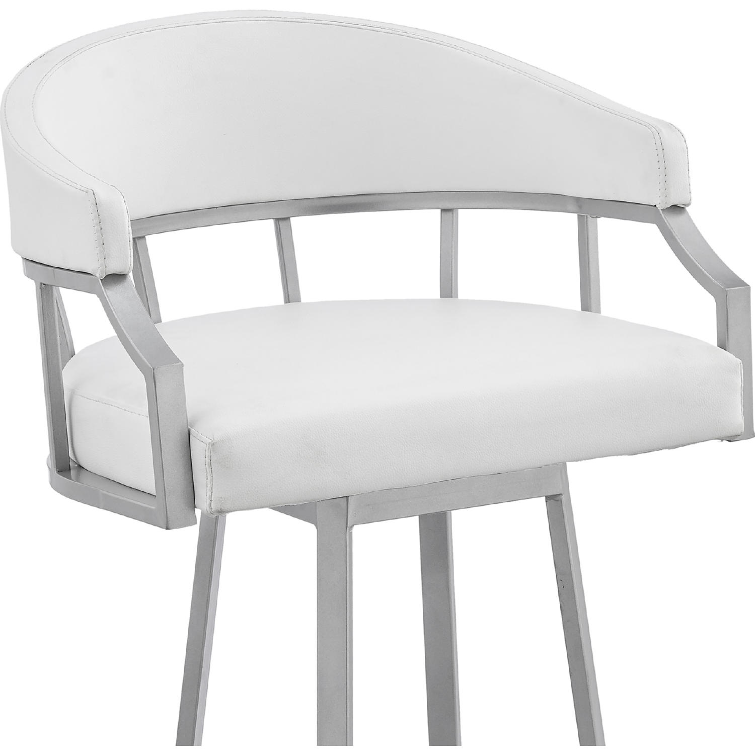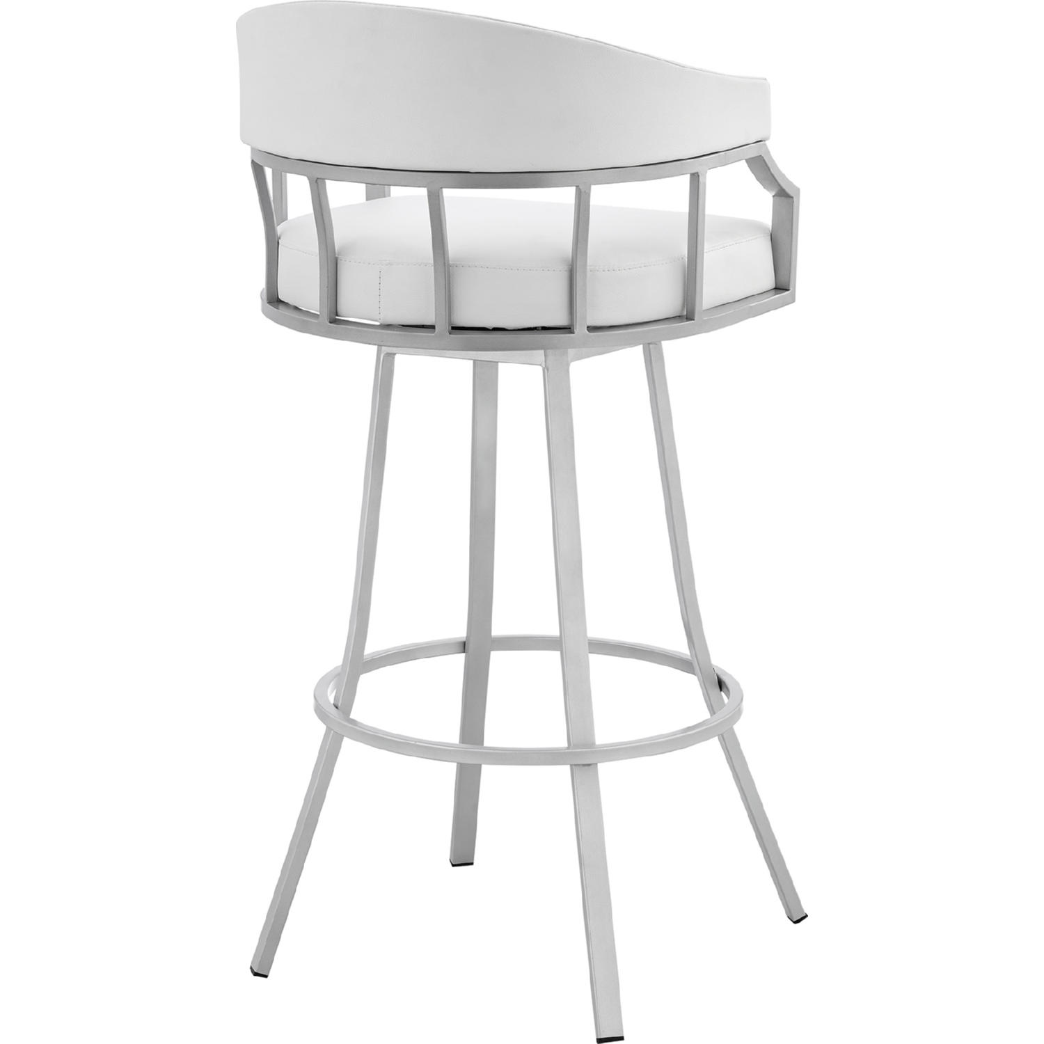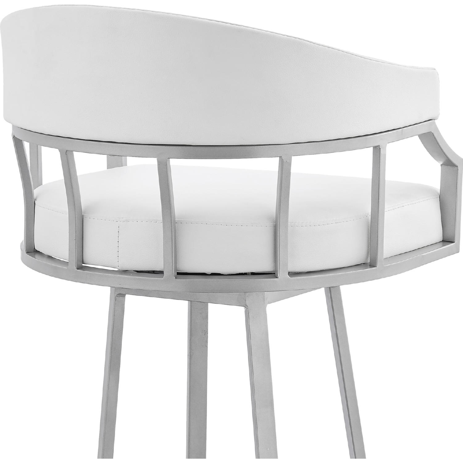 Armen Living Valerie 30" Swivel Bar Stool in White Leatherette & Silver Metal