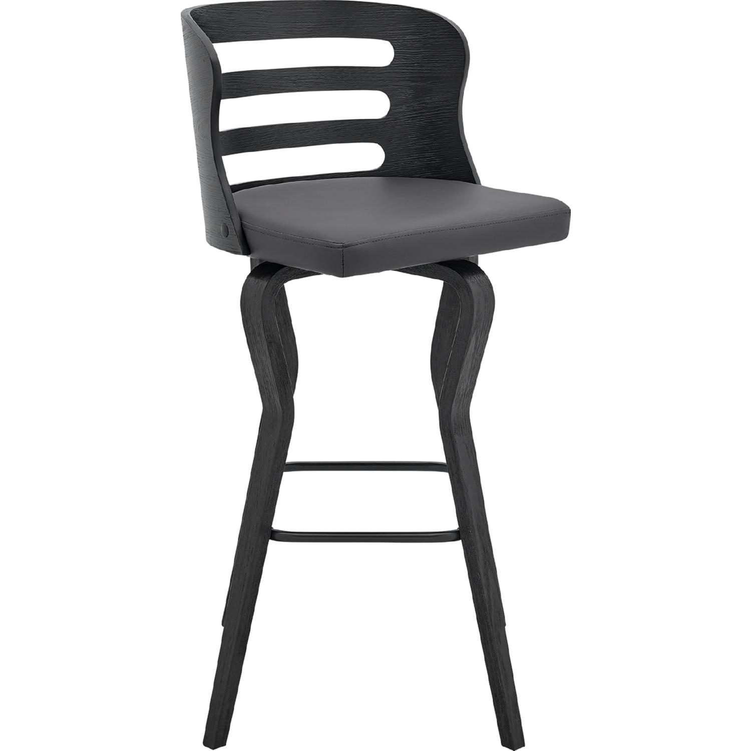 Armen Living Verne 30" Swivel Bar Stool in Gray Leatherette & Black Wood