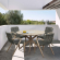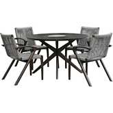 • Outdoor dining set includes: 1 Oasis dining table & 4 charcoal dark gray chairs w/ light wood legs
