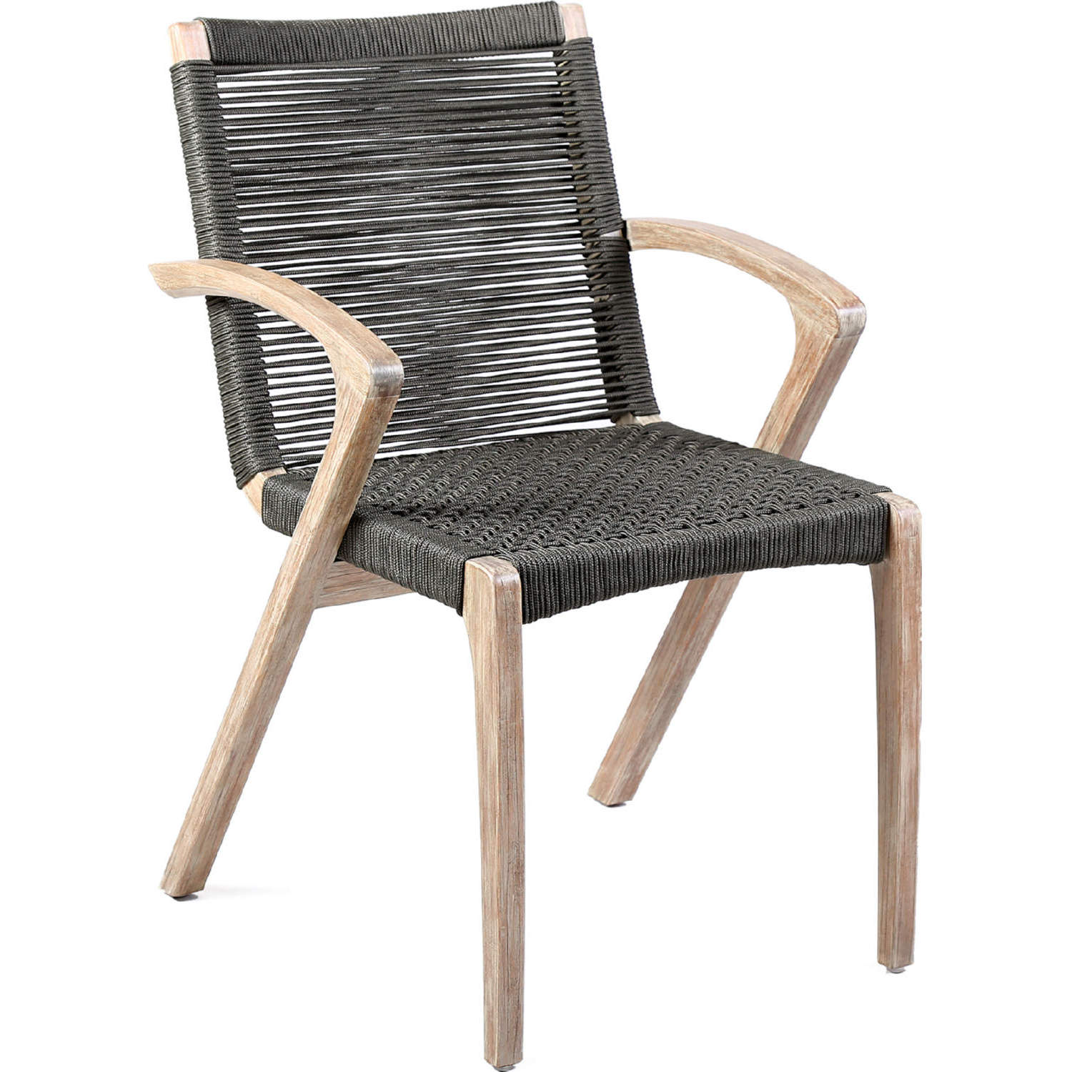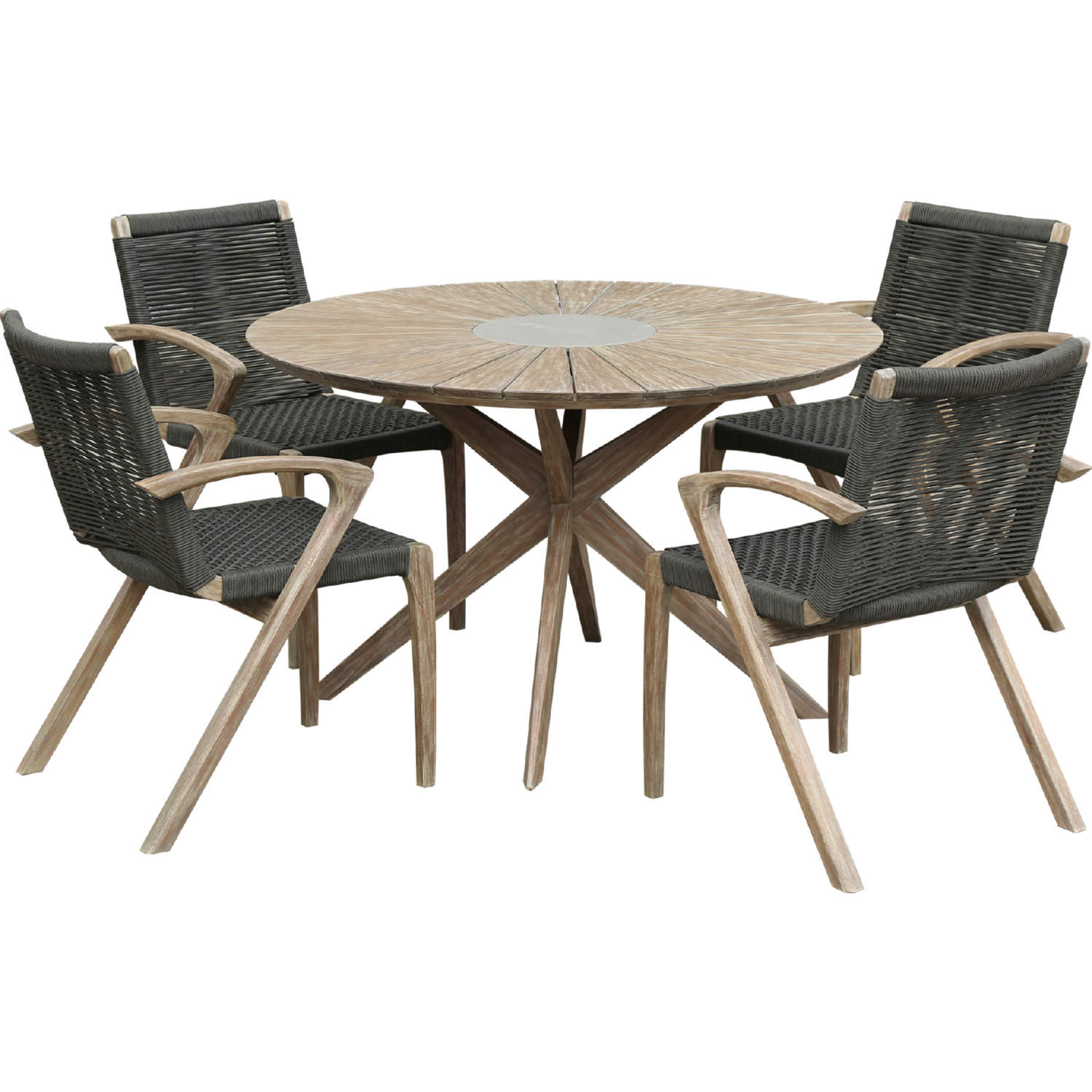 Armen Living SETOADILT5A Oasis & Island Outdoor 5 Piece Dining Set Light Wood, Gray Stone & Dark Gray Rope