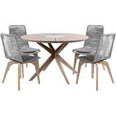 Armen Living Oasis & Island Outdoor 5 Piece Dining Set in Light Wood, Gray Stone & Dark Gray Rope