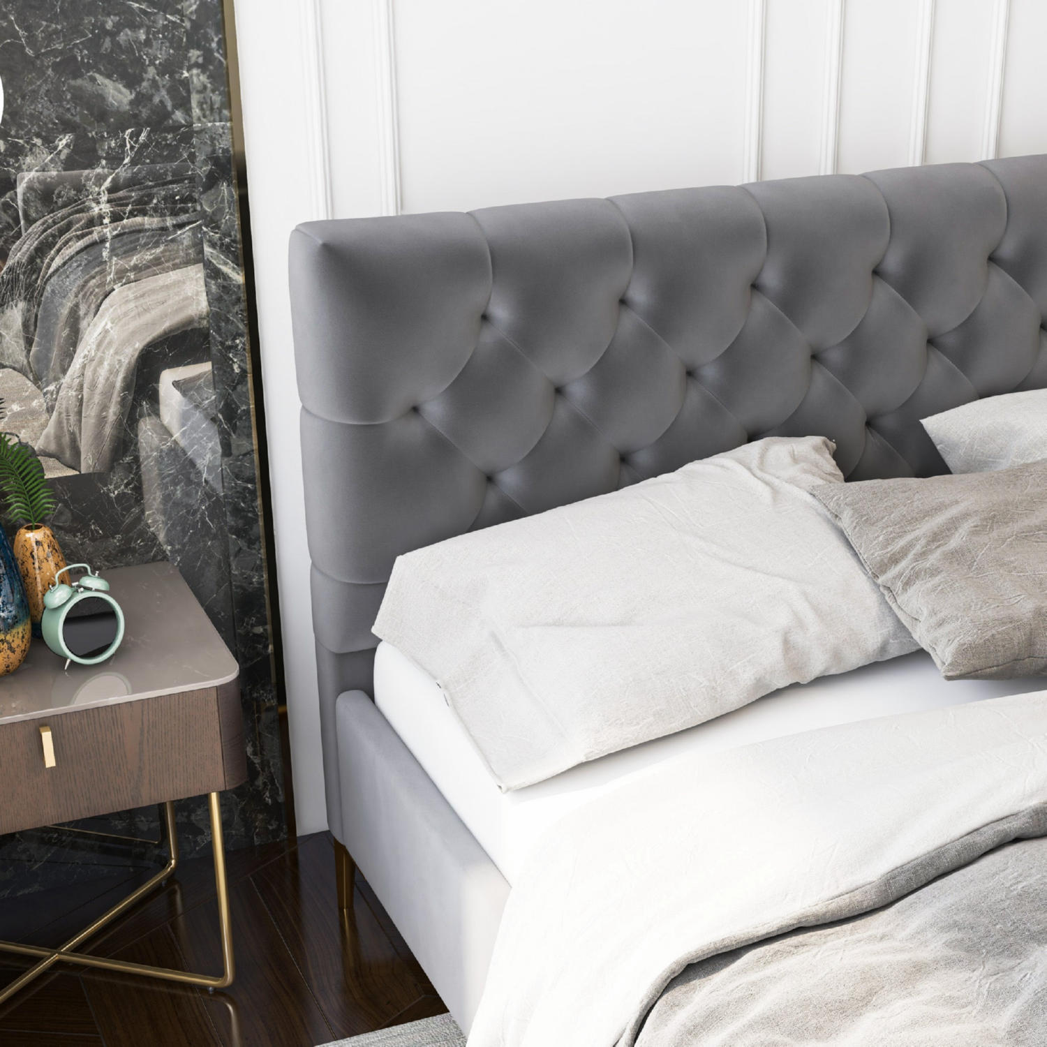 Ashcroft Furniture BED00300406 Bailey King Platform Bed Tufted Dark Grey Velvet