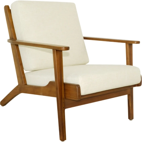 Ashcroft Furniture Connor Accent Lounge Chair in Cream Linen & Walnut Finish Wood