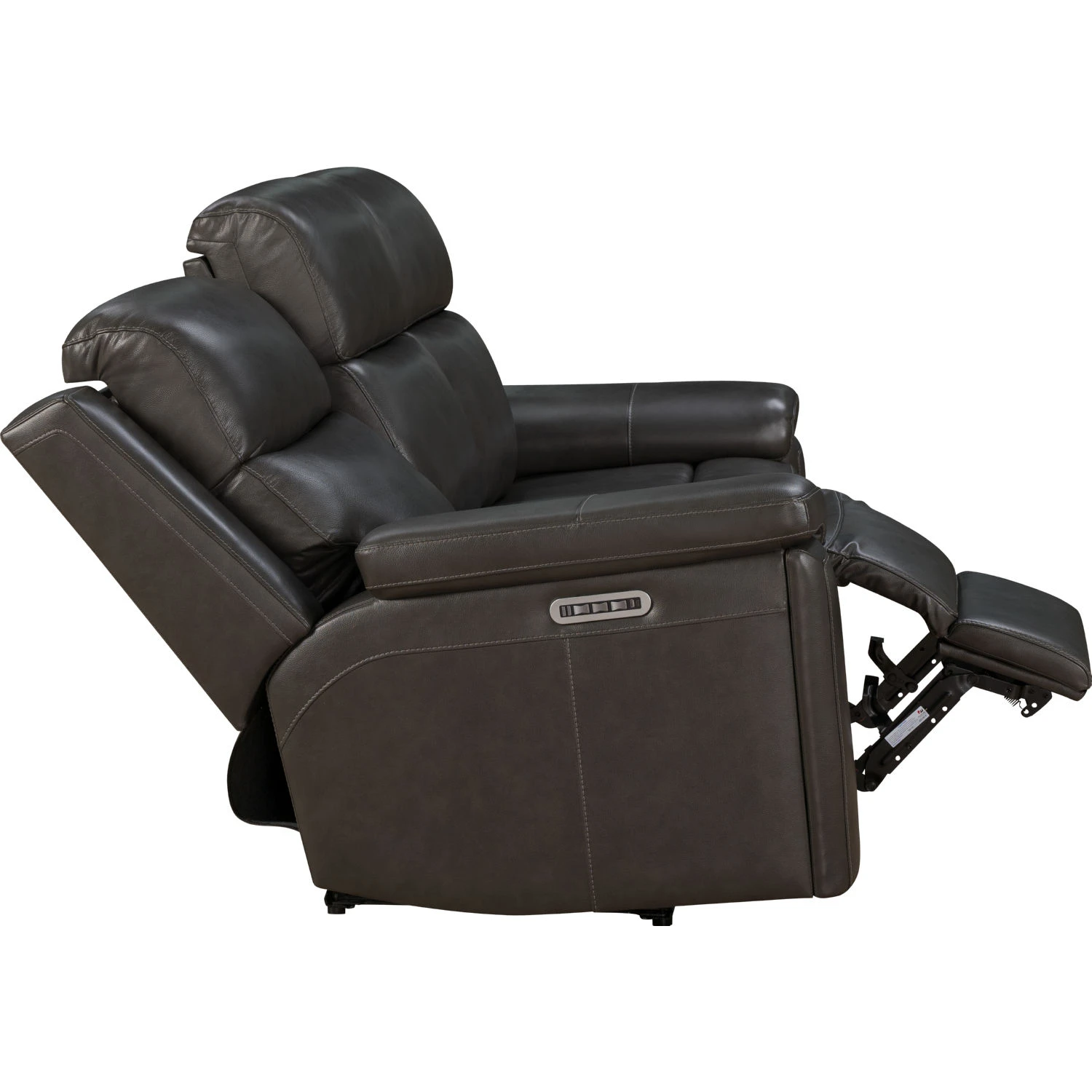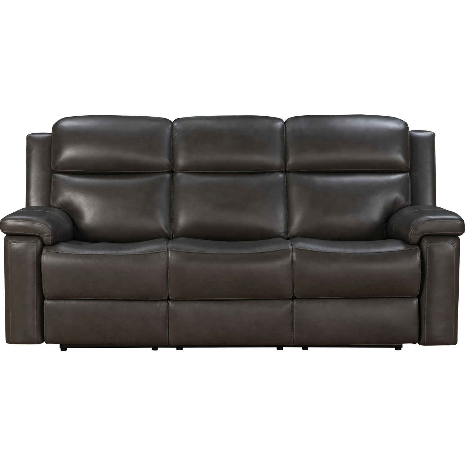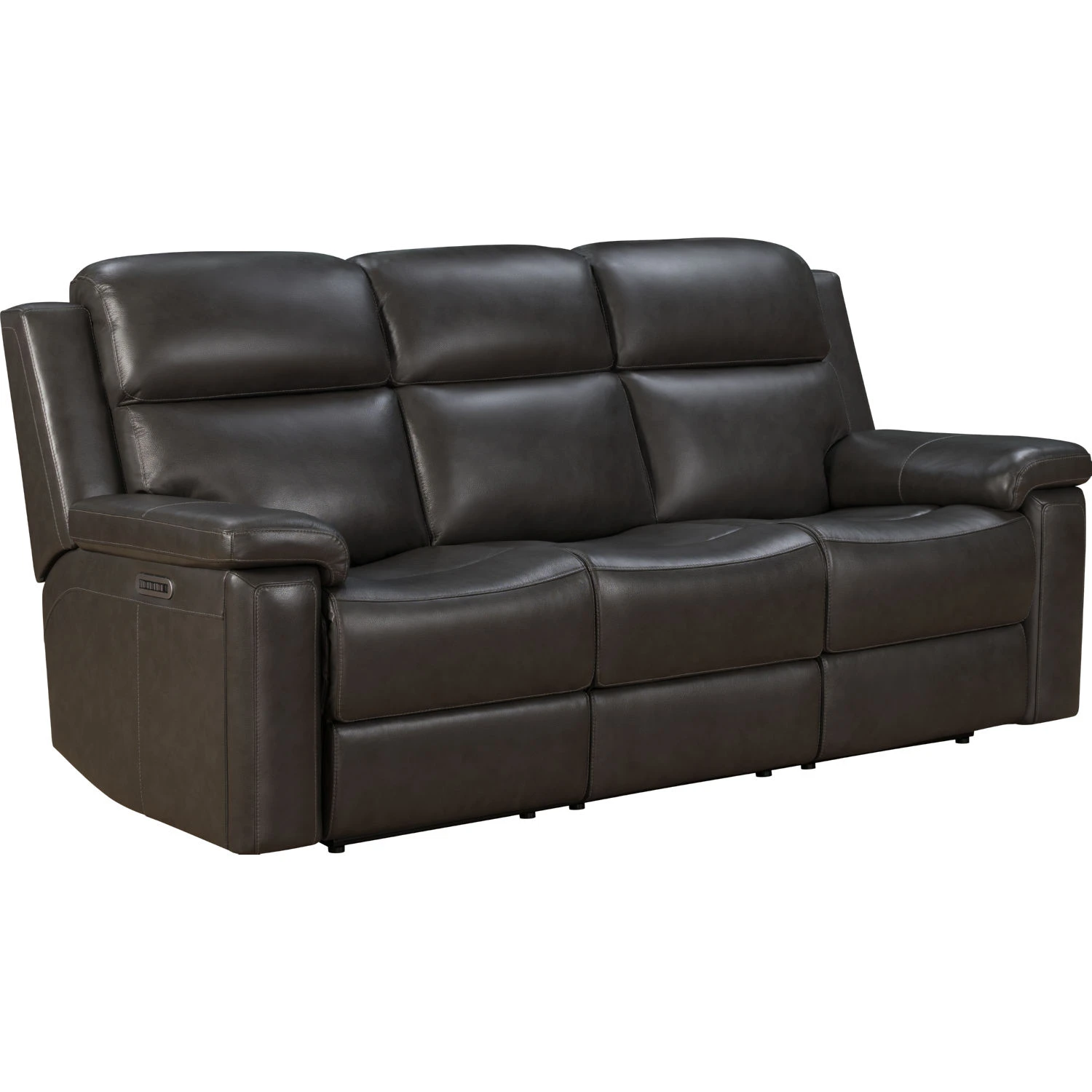 BarcaLounger 39PHLHM-1343-3730-96 Leon Power Reclining Sofa Power Head Rests Lumbar Heat Massage Gray Top Grain Leather
