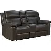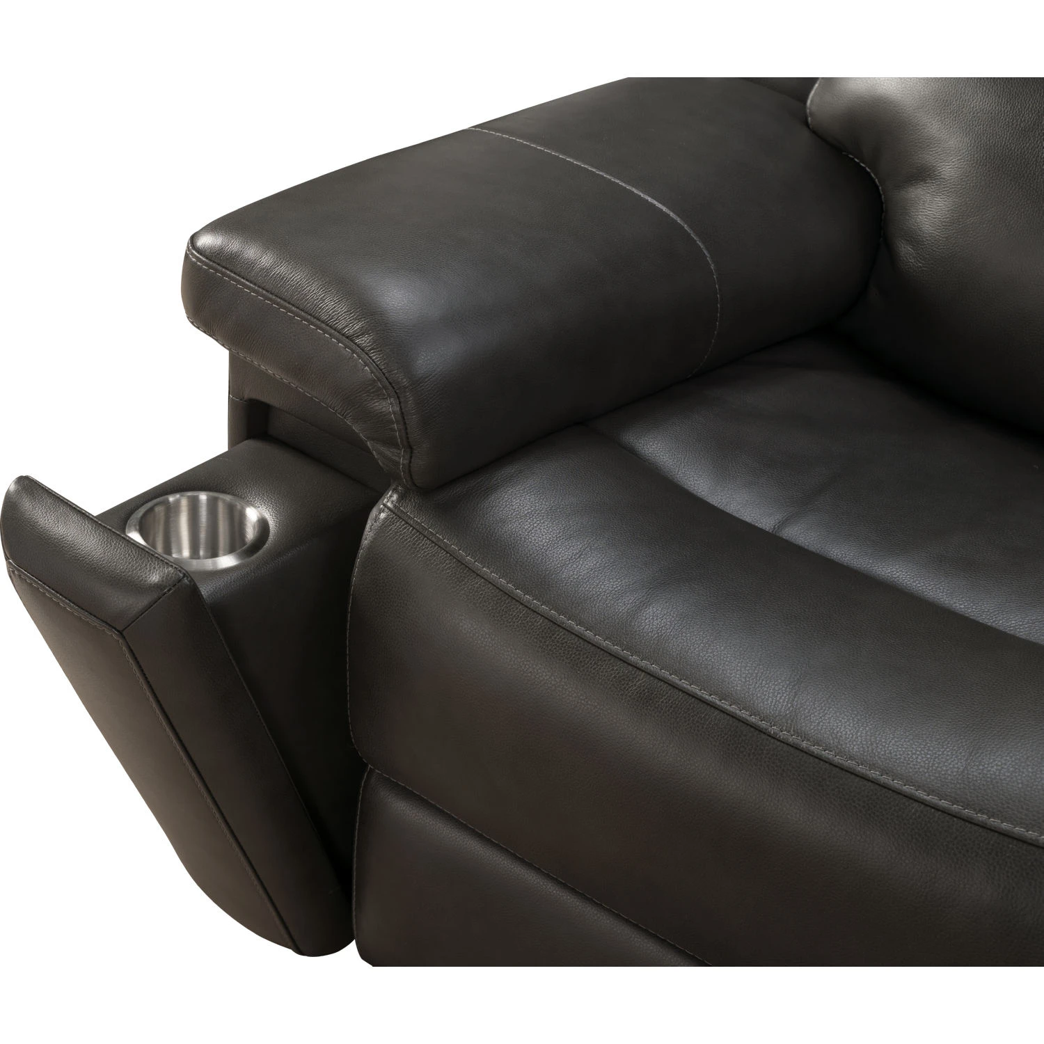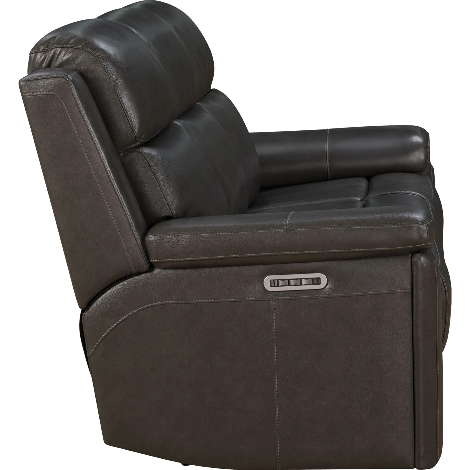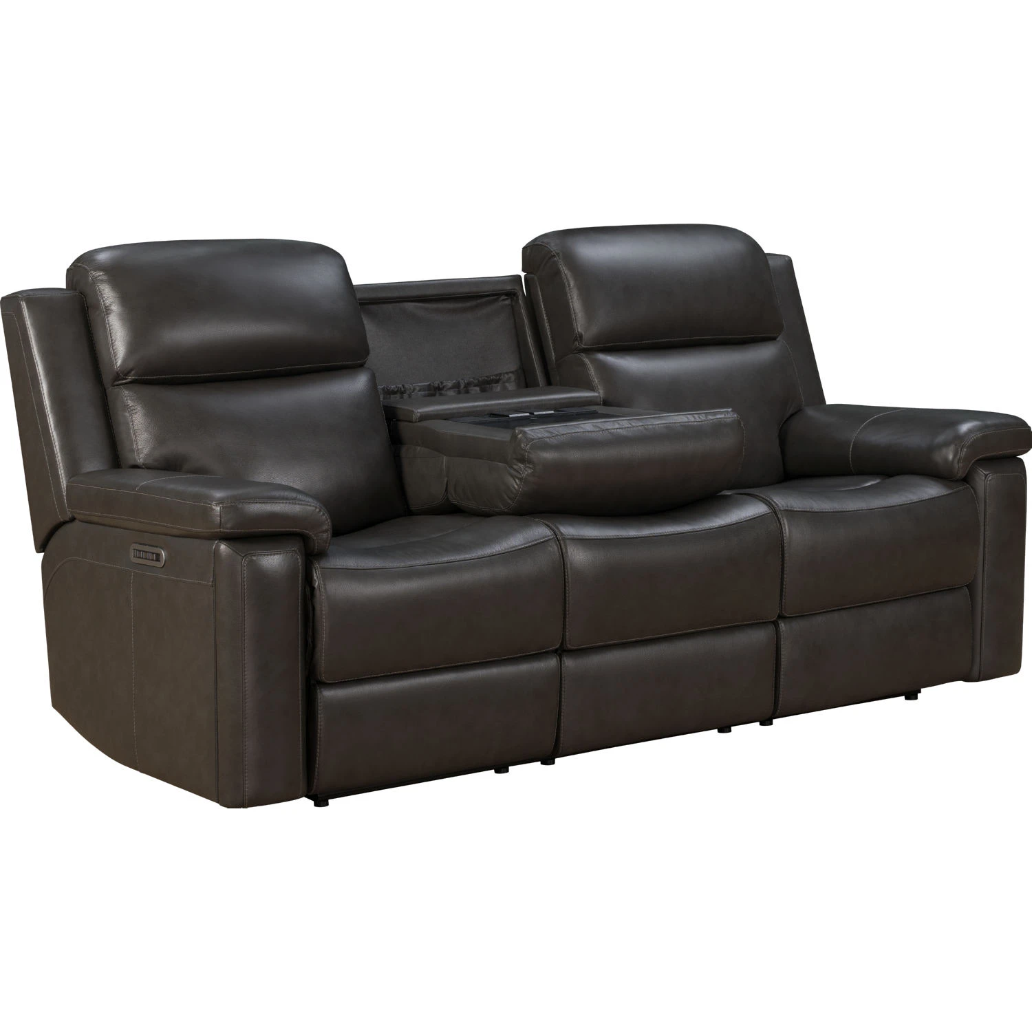 BarcaLounger 39PHLHM-1343-3730-96 Leon Power Reclining Sofa Power Head Rests Lumbar Heat Massage Gray Top Grain Leather