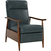 • Push thru the arm 3 way recliner with exposed wood frame in rustic brown finish