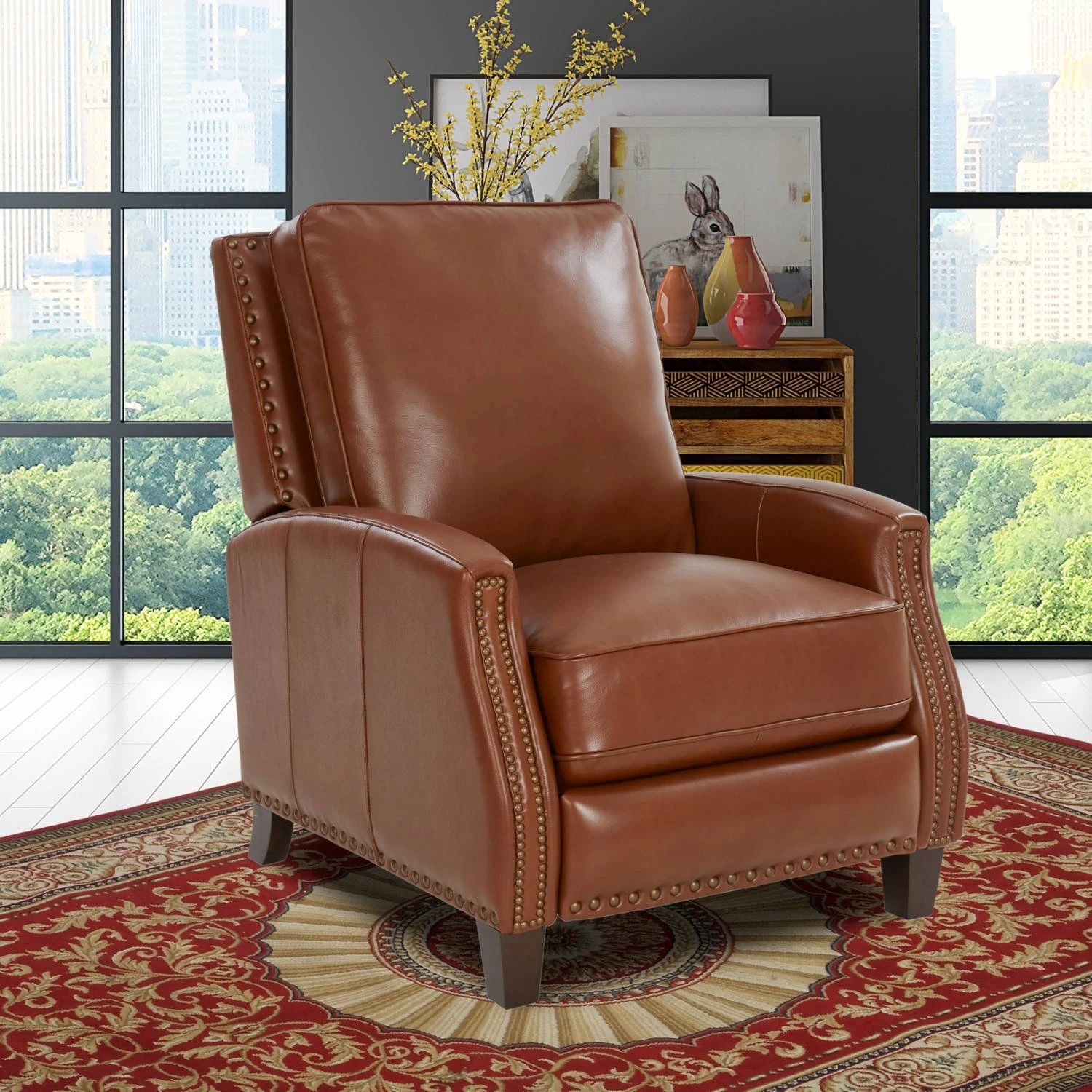 BarcaLounger Melrose Manual Recliner in Colchester Bitters Brown Top Grain Leather with Nailhead Trim