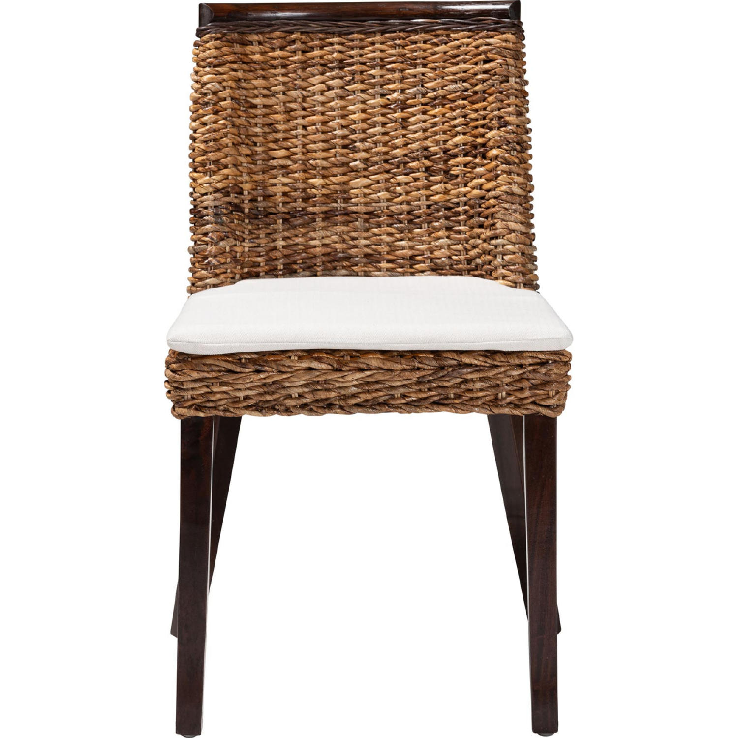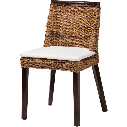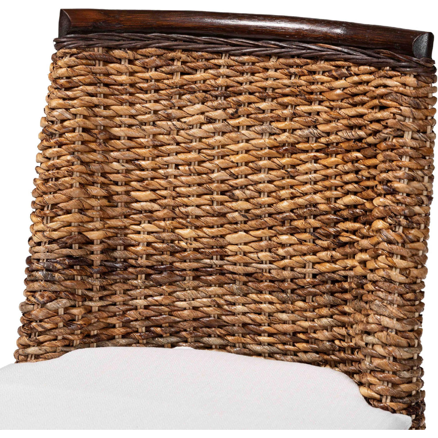 bali & pari MD-39696 Magic-Dark Brown/Abaca Natural-DC Abbas Dining Chair Dark Wood Seagrass White Fabric