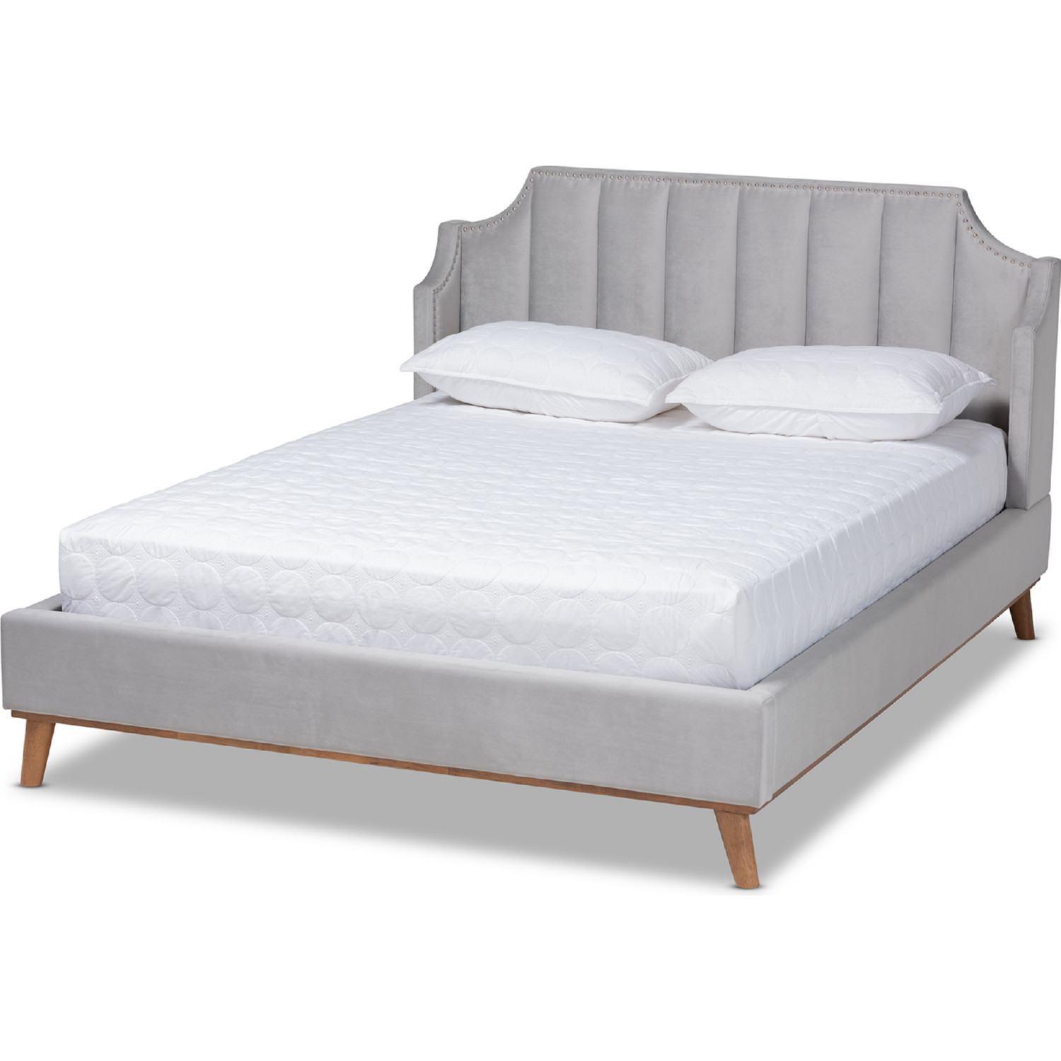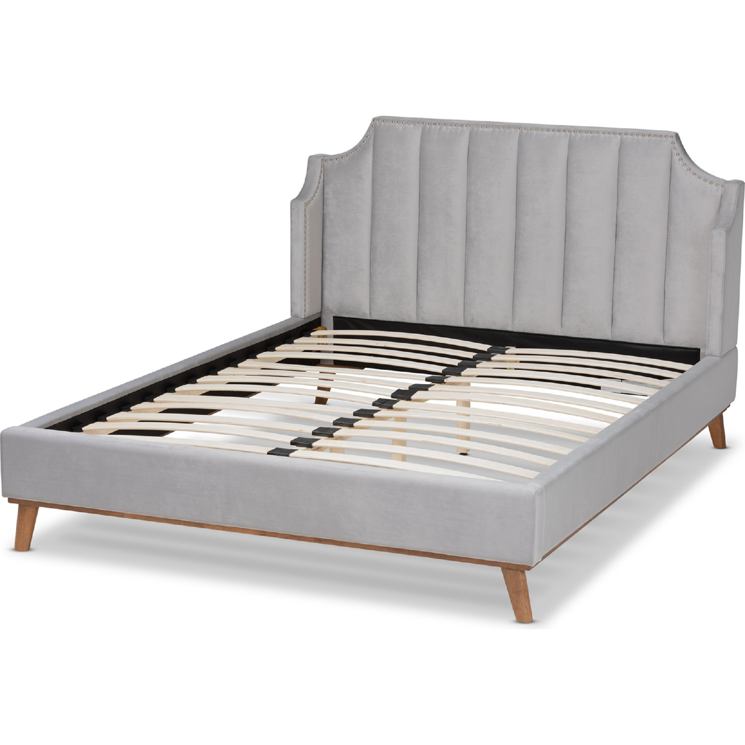 - Baxton-BBT6928LightGreyVelvetWalnutKing