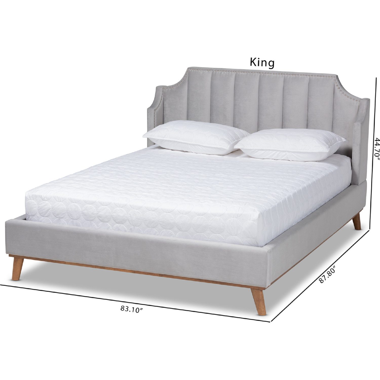 Baxton Studio Adelie King Wingback Platform Bed in Light Gray Velvet & Walnut Finish